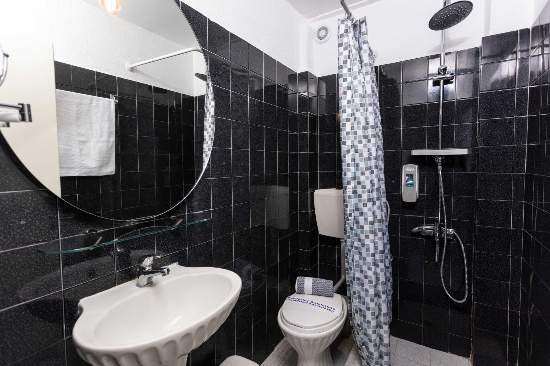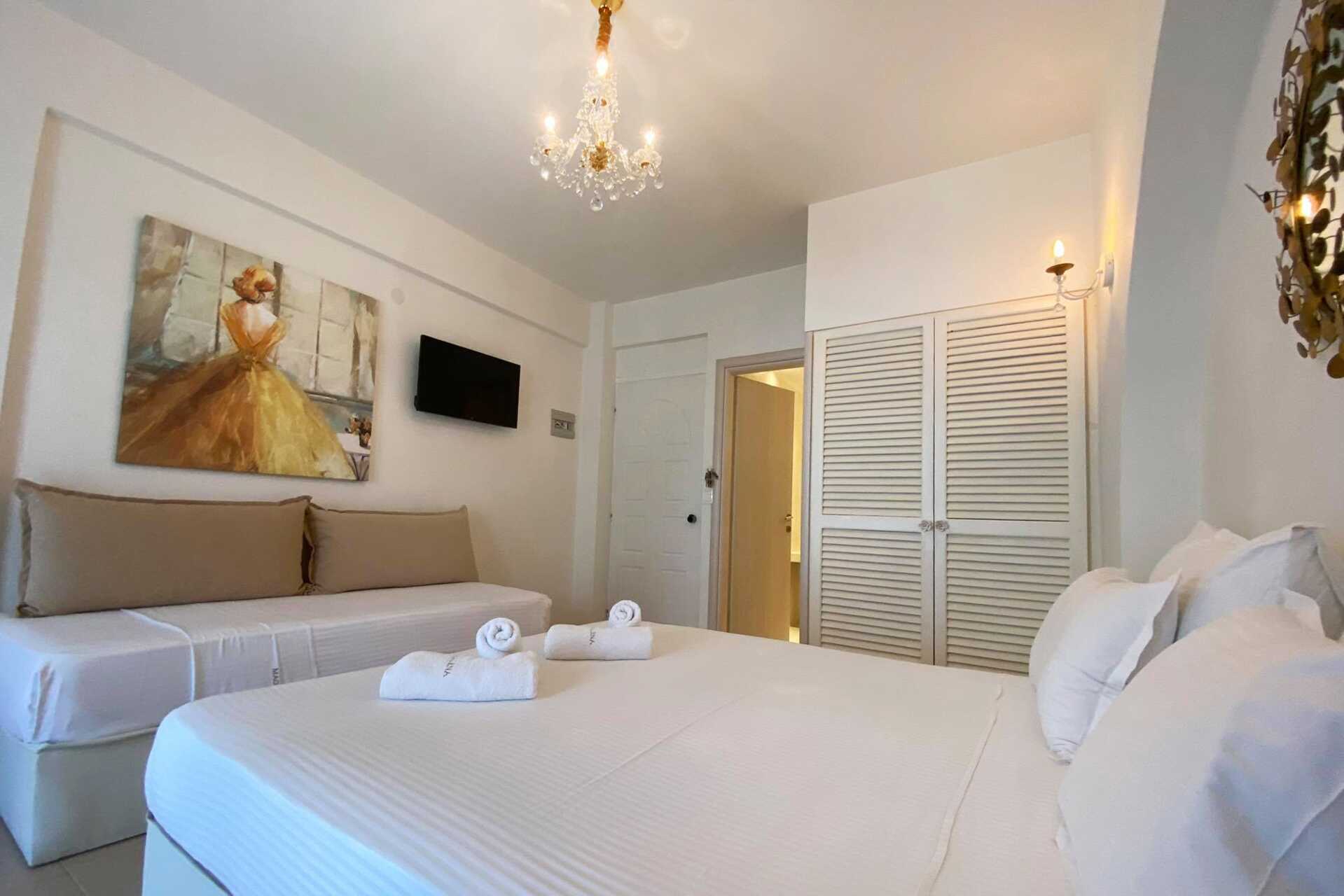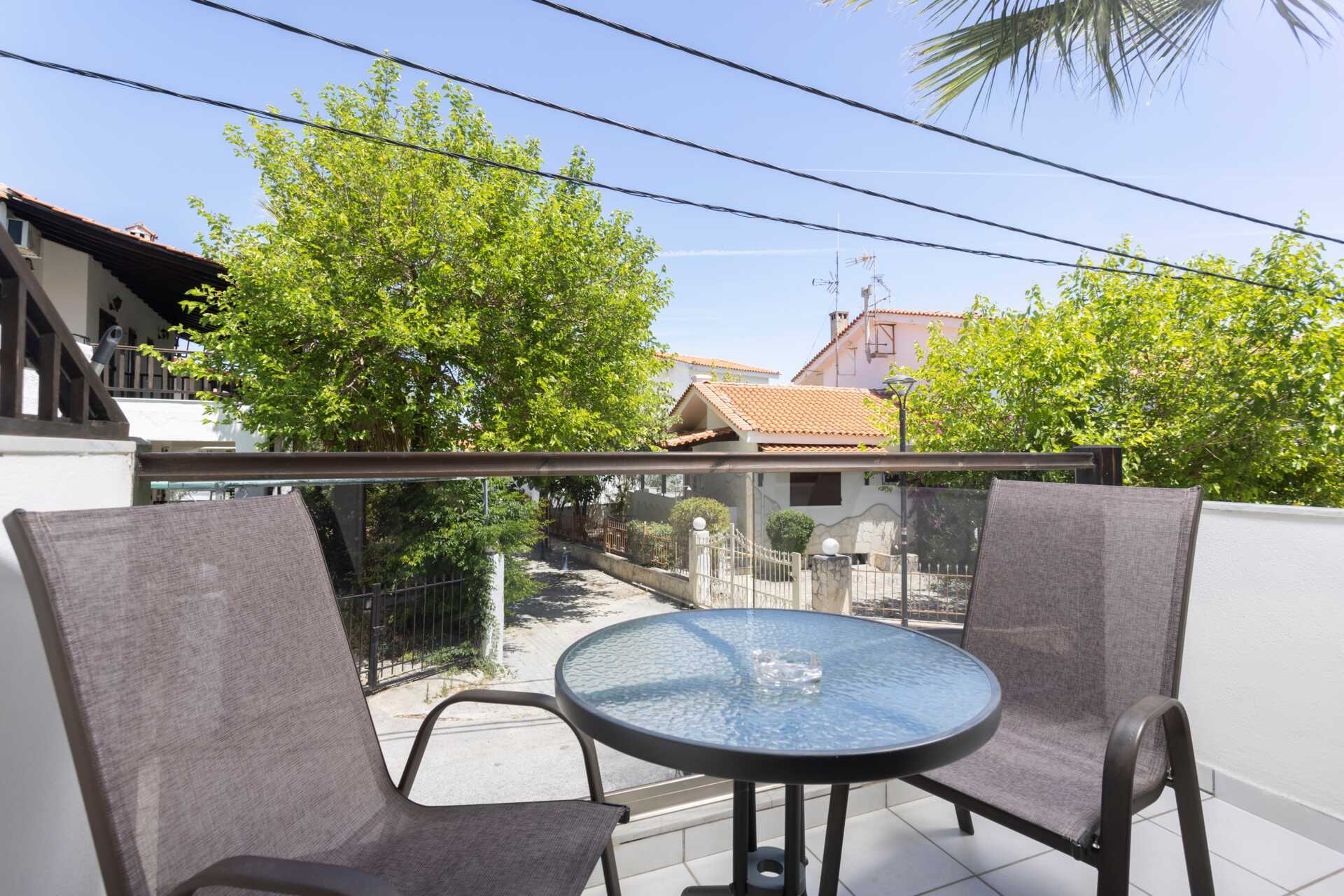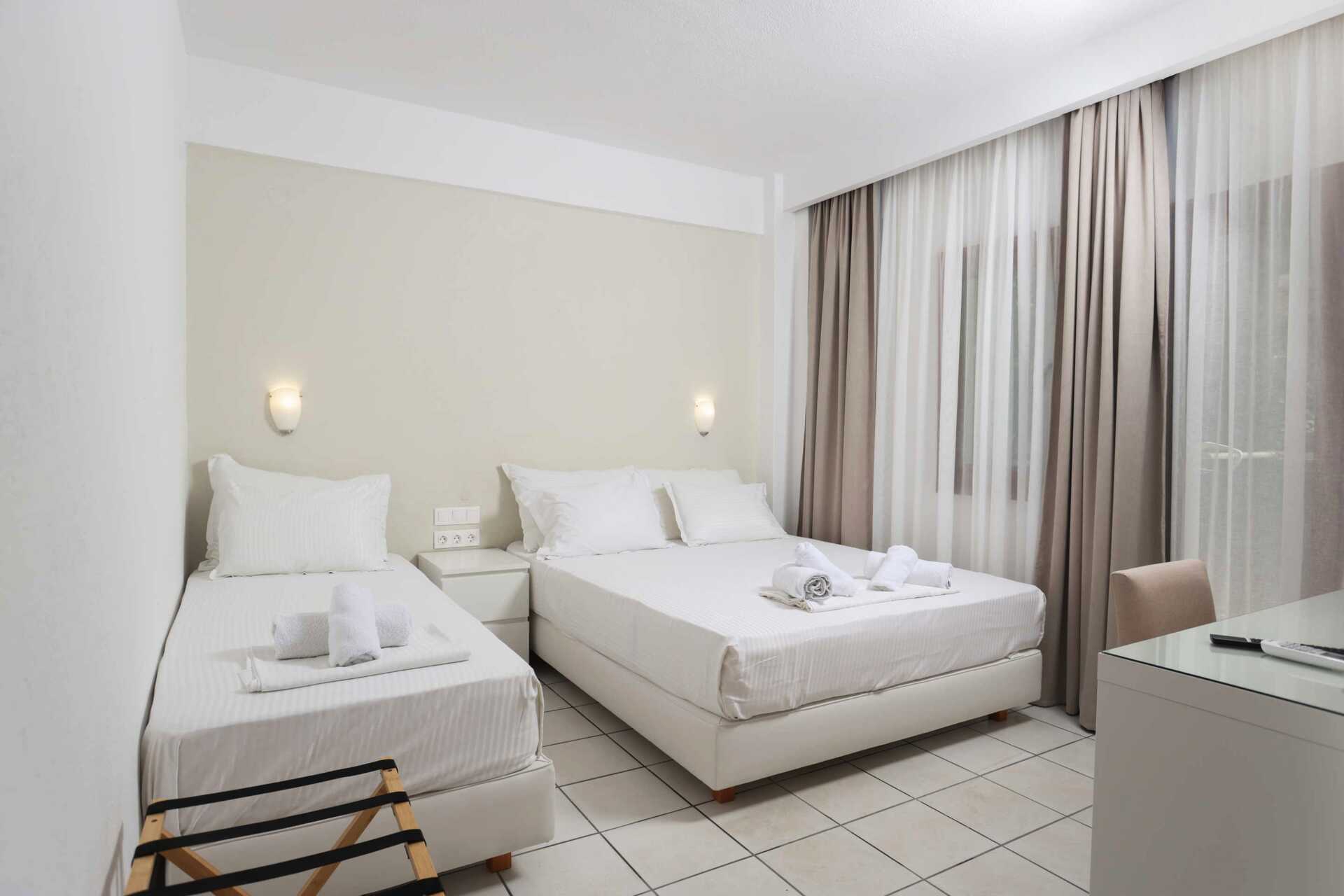 Kolmen hengen huone parvekkeella. Parivuode ja yhden hengen vuode. Maksuton wifi, ilmastointi ja tallelokero. Jääkaappi. Tv paikallisilla kanavilla. Hiustenkuivain. Suihku ja wc. Siivous 6 krt/viikko.