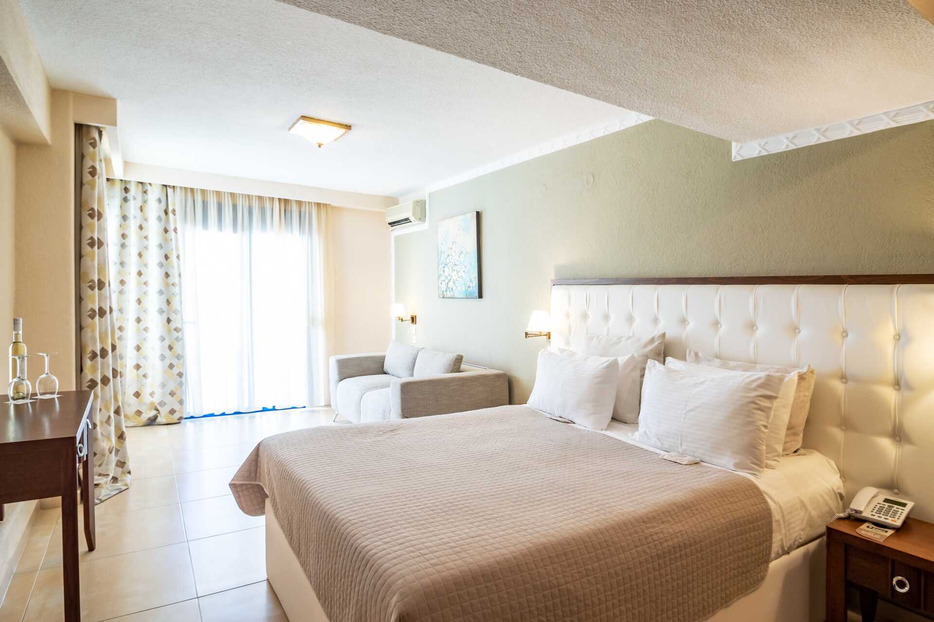 Executive-huone parvekkeella ja merinäköalalla. Parivuode tai kaksi yhden hengen sänkyä. Maksuton wifi, ilmastointi ja tallelokero. Minibaari. Vedenkeitin, kahvia ja teetä. Espresso kahvinkeitin. Tv kansainvälisillä kanavilla. Kylpytakit ja tossut. Hiustenkuivain. Kylpyhuoneessa suihku ja wc. Siivous 6 krt/viikko.