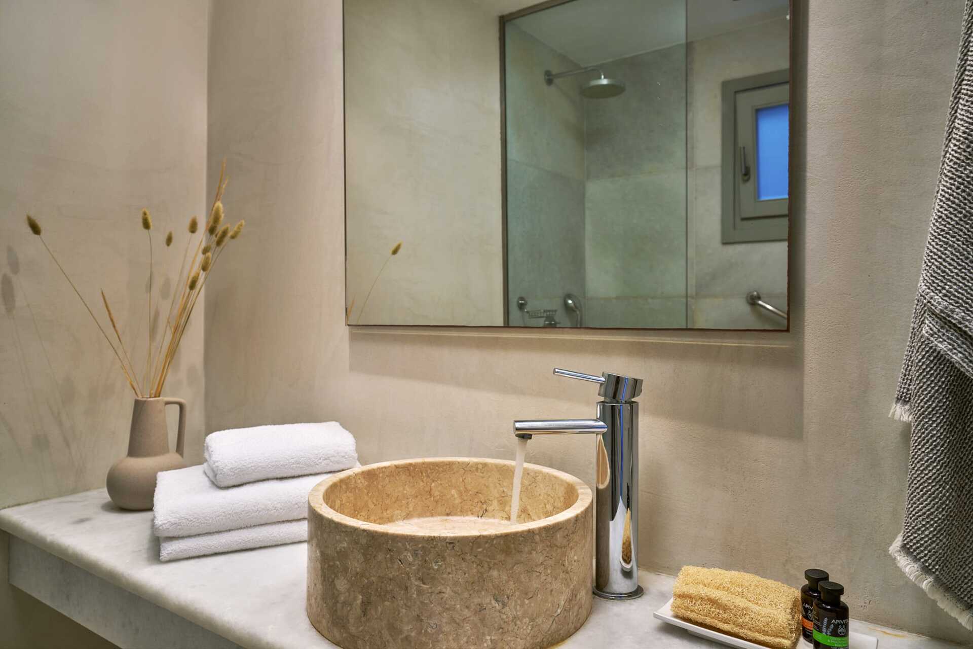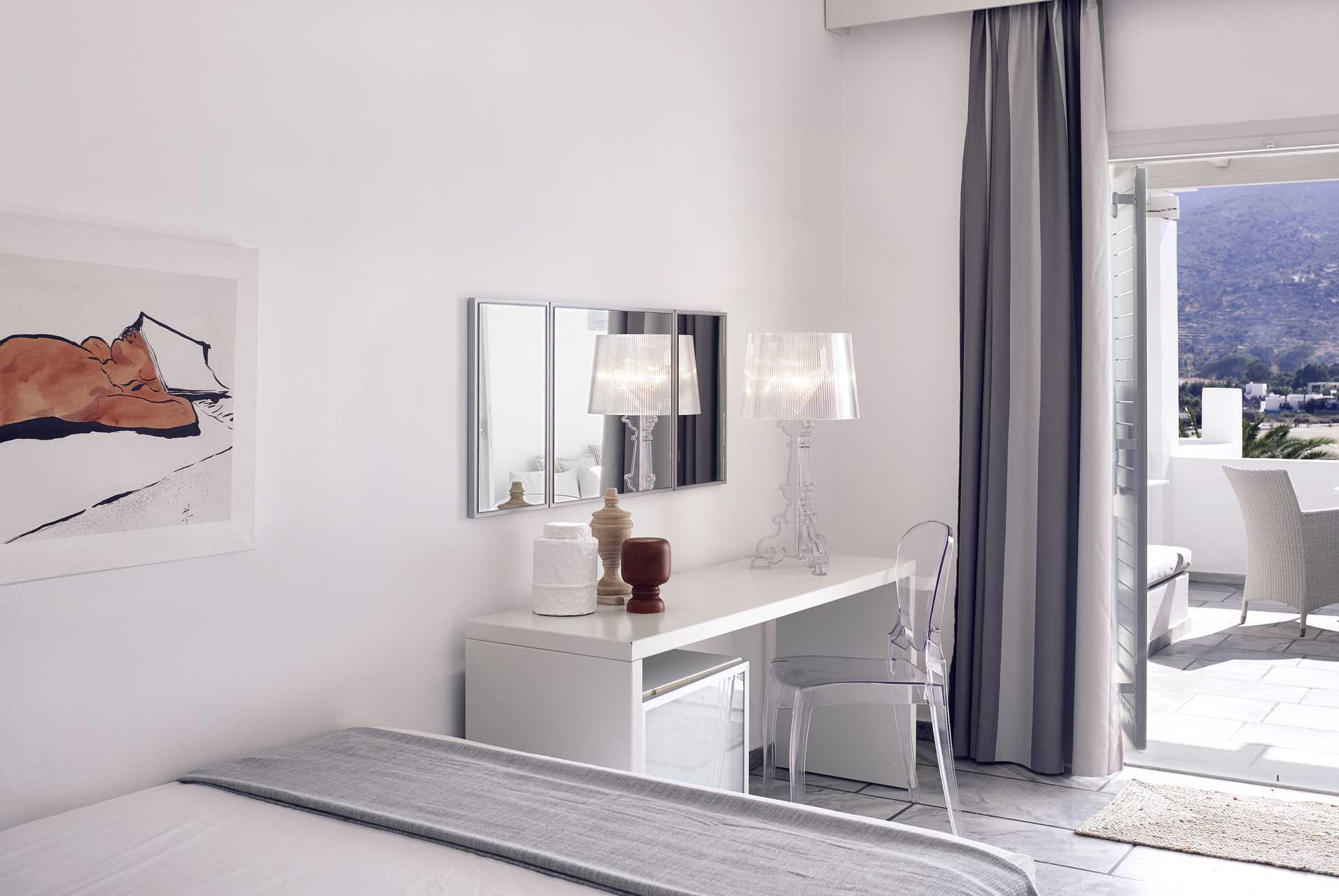 Kahden hengen huone, jossa parveke tai terassi ja merinäköala. Huoneet sijaitsevat päärakennuksen alemmissa kerroksissa. Parisänky tai kaksi erillistä sänkyä, lisävuodemahdollisuus kolmannelle henkilölle. Maksuton wifi, ilmastointi ja tallelokero. Jääkaappi. Tv kansainvälisillä kanavilla. Hiustenkuivain. Kylpyamme tai suihku ja wc. Siivous 7 krt/viikko.