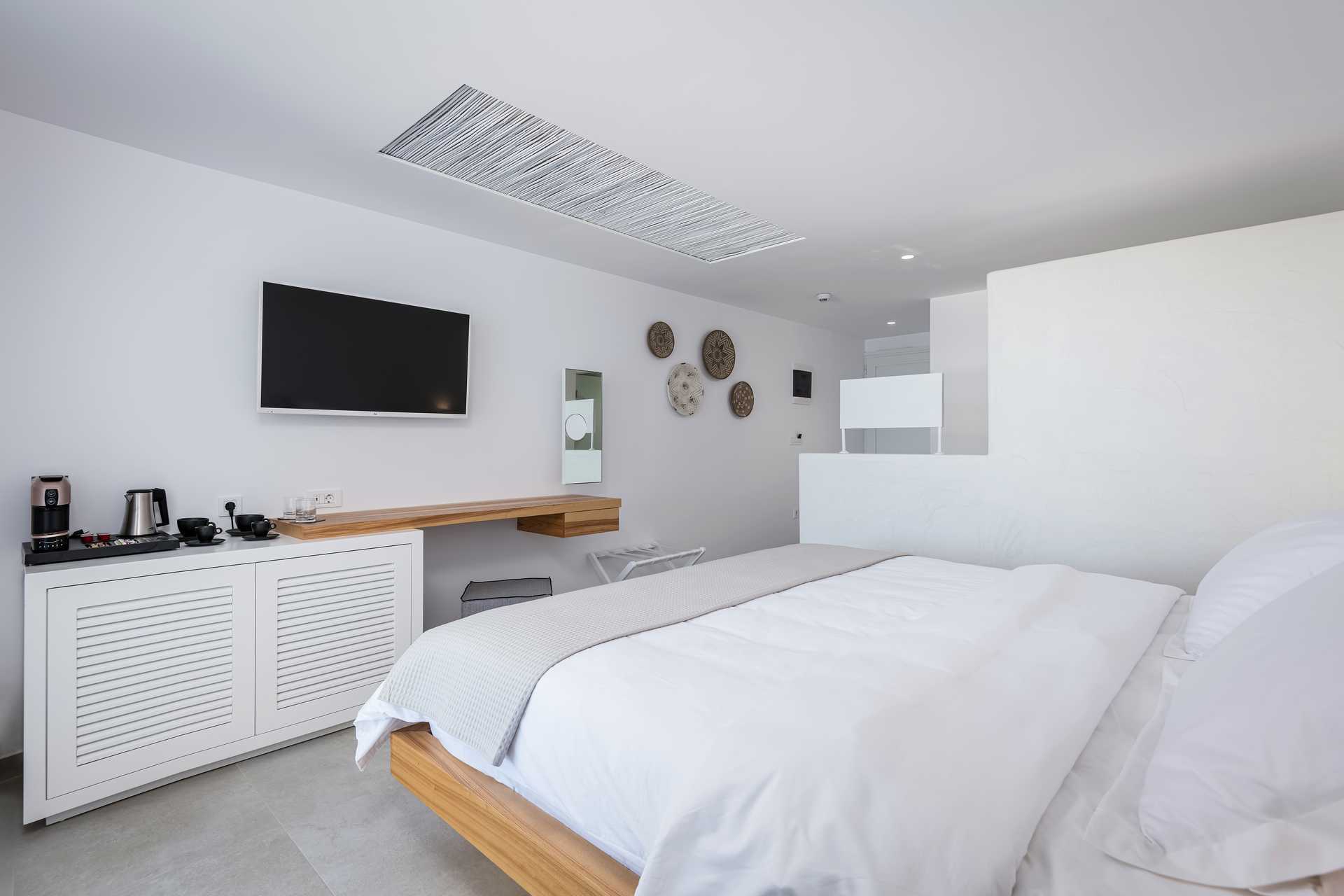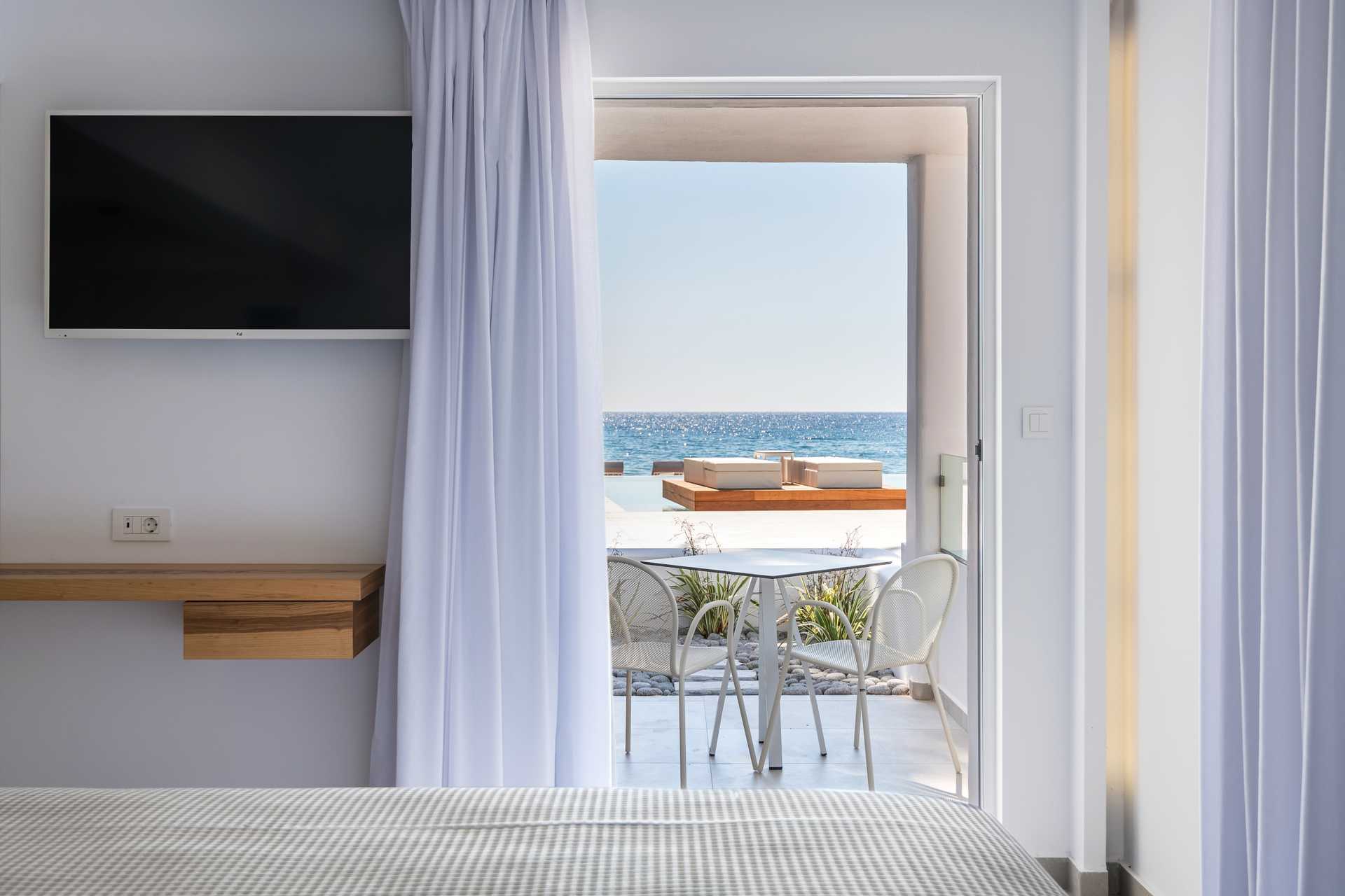 Kahden hengen huoneita parvekkeella tai terassilla ja merinäköalalla. Parivuode. Maksuton wifi, ilmastointi ja tallelokero. Jääkaappi. Vedenkeitin, kahvia ja teetä. Espressokone. Tv kansainvälisillä kanavilla. Rantakassi, allas- ja rantapyyhkeillä sekä rantatossut. Kylpytakki ja tossut. Hiustenkuivain. Suihku ja wc. Siivous 7 krt/viikko. Alle 2-vuotiaat lapset katsotaan majoittuviksi lisävuoteessa.