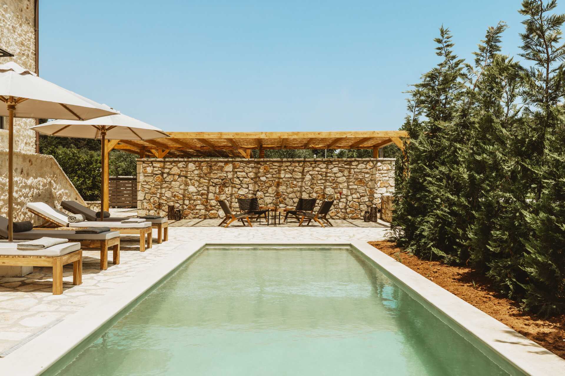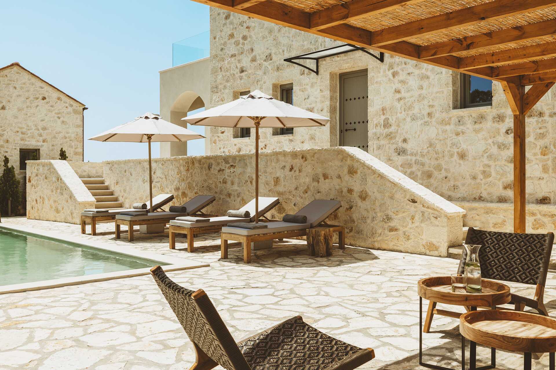 Kolmen huoneen villa omalla altaalla Terassilla on ruokapöytä, oleskelukalusteet sekä aurinkotuolit ja aurinkovarjot altaassa. Villa koostuu kahdesta kerroksesta, joiden välissä on avoin pohjaratkaisu. Sisääntulokerroksessa on olohuone, jossa on takka, minikeittiö ja wc. Yläkerrassa on makuuhuone parvekkeella ja kylpyhuone. Makuuhuoneissa yksi parisänky tai kaksi erillistä sänkyä. Lisävuodemahdollisuus vuodesohvasta. Minikeittiö, jossa liesi, jääkaappi ja pakastin sekä hyvät keittiövälineet. Maksuton wifi, ilmastointi ja tallelokero. Tv kansainvälisillä kanavilla. Silitysrauta ja -lauta. Allaspyyhkeet. Kylpytakit ja tossut. Hiustenkuivain. Kylpyhuoneessa suihku ja wc. Siivous 5 krt/viikko. Portaat huvilan sisällä ja ulkopuolella, mukaan lukien portaat altaille.