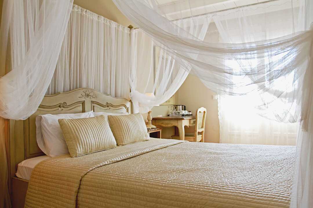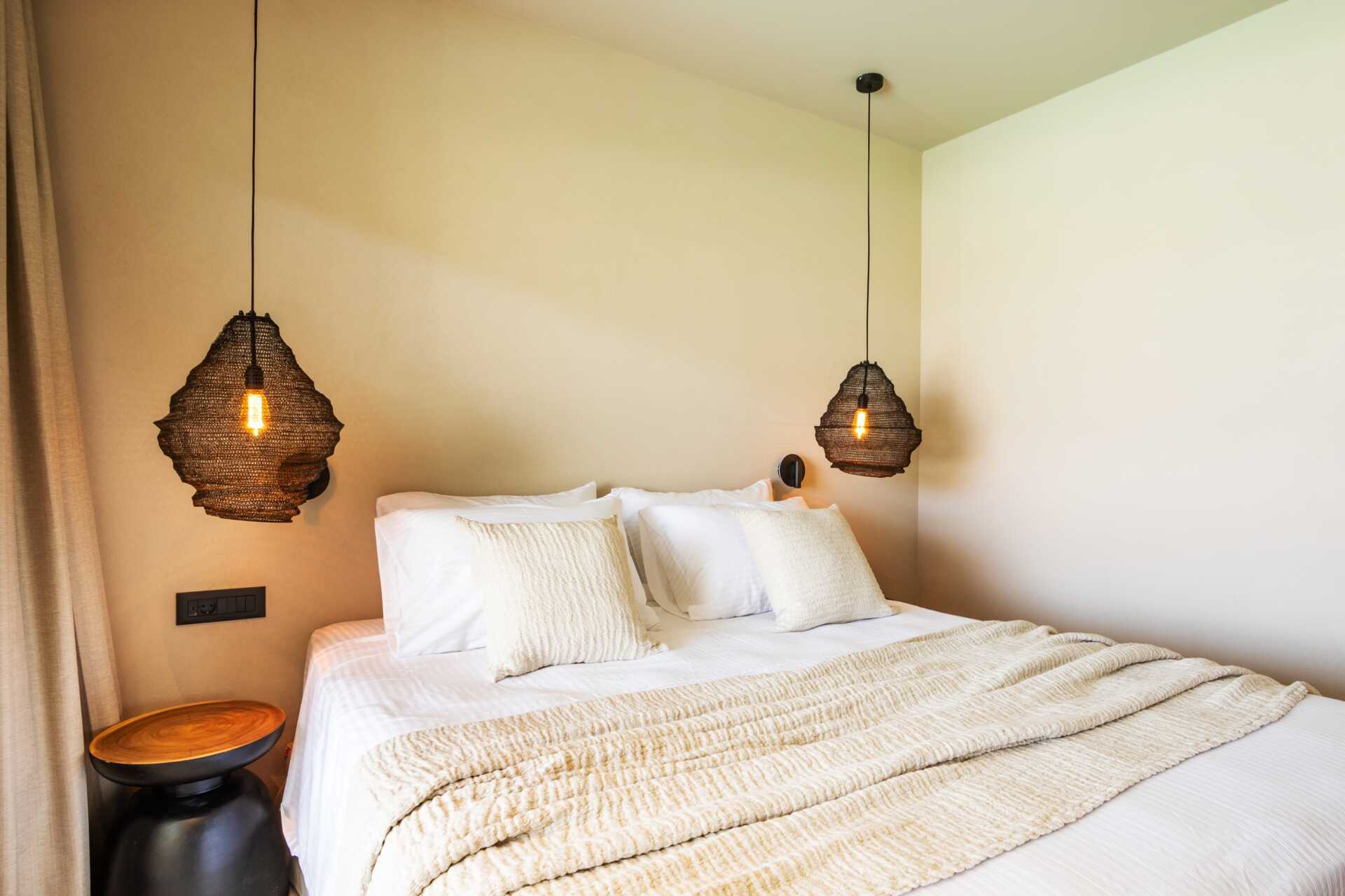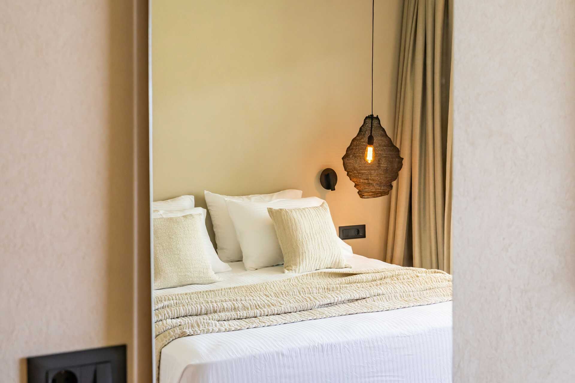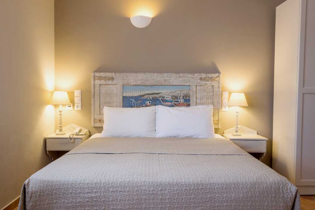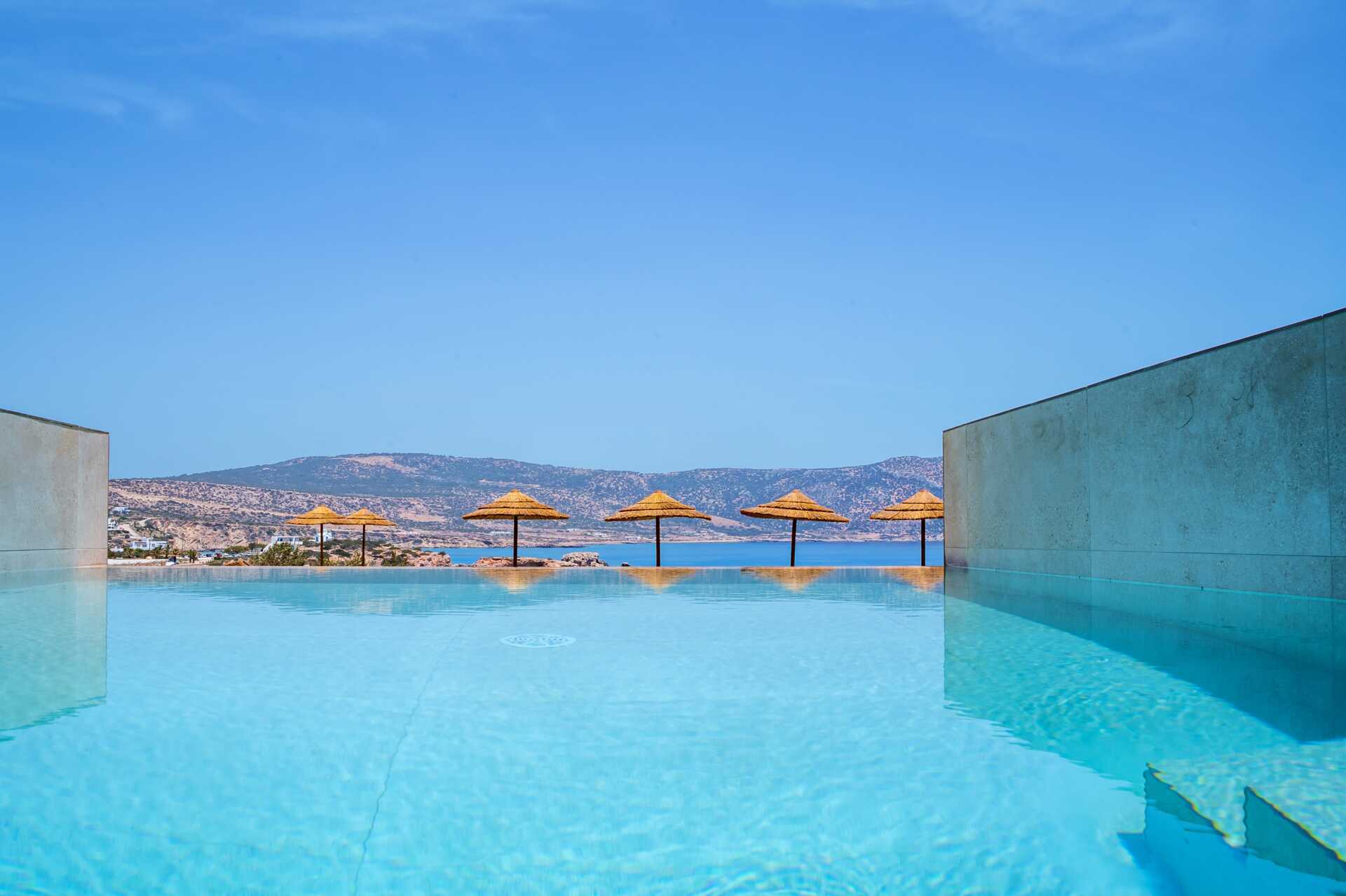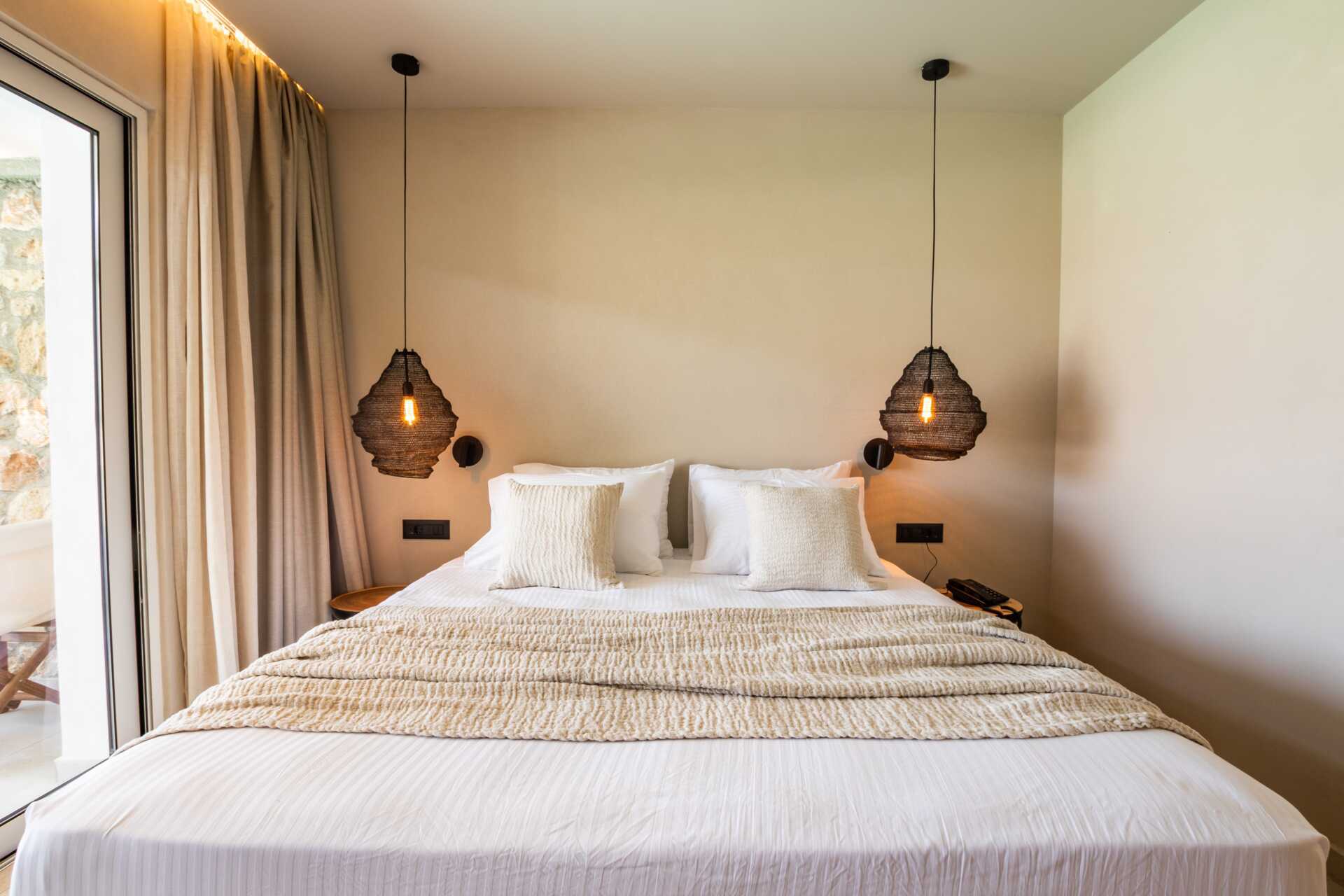 Deluxe-sviitti, jossa on oma uima-allas ja merinäköala maaterassilta. Parivuode. Maksuton wifi, tallelokero ja ilmastointi. Minibaari. Vedenkeitin, kahvia ja teetä. Kahvinkeitin, neljä kahvikapselia mukana, lisää voi ostaa halutessaan hotellin baarista. Tv kansainvälisillä kanavilla. Hiustenkuivain. Kylpyhuoneessa amme/suihku ja wc. Siivous 6 krt/viikko.