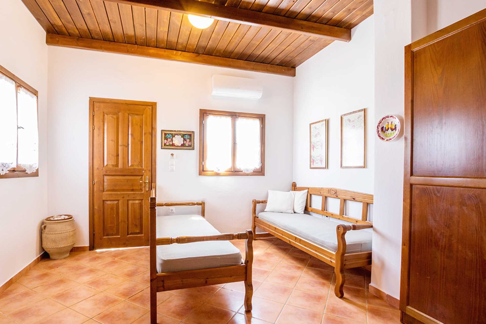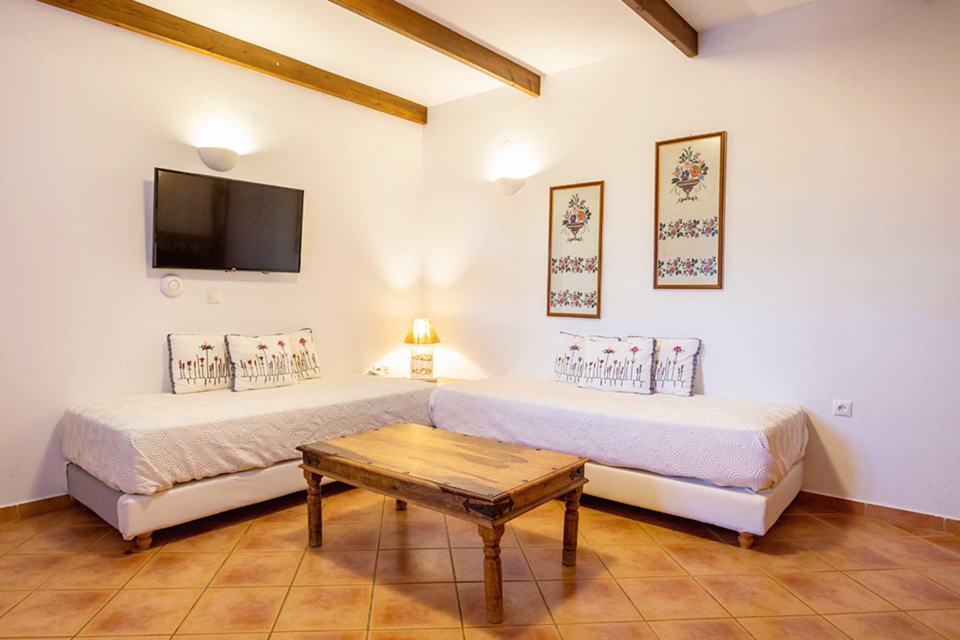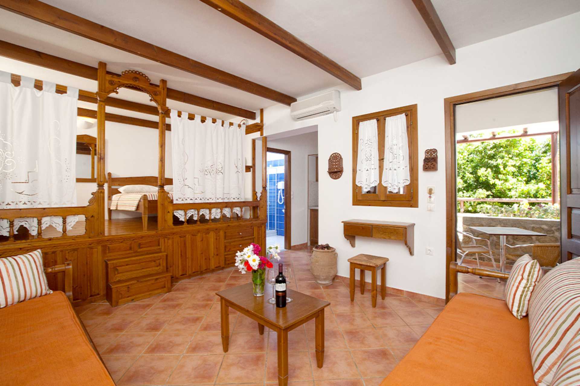 Perhehuoneessa on parveke tai terassi, jolta on rajoitettu merinäköala. Perhehuone koostuu kahdesta rakenteeltaan avoimesta osasta, joista toisessa on olohuone sekä minikeittiö ja toinen on makuuhuoneosa. Parivuode ja kaksi erillistä sänkyä. Lisävuodemahdollisuus huoneen vuoteisiin. Minikeittiössä jääkaappi, keittolevyt, vedenkeitin sekä kahvia ja teetä sekä yksinkertainen keittiövarustus. Kahvinkeitin, neljä kahvikapselia mukana, lisää voi ostaa halutessaan hotellin baarista. Maksuton wifi, tallelokero ja ilmastointi. Tv kansainvälisillä kanavilla. Hiustenkuivain. Kylpyhuoneessa suihku ja wc. Siivous 6 krt/viikko.
