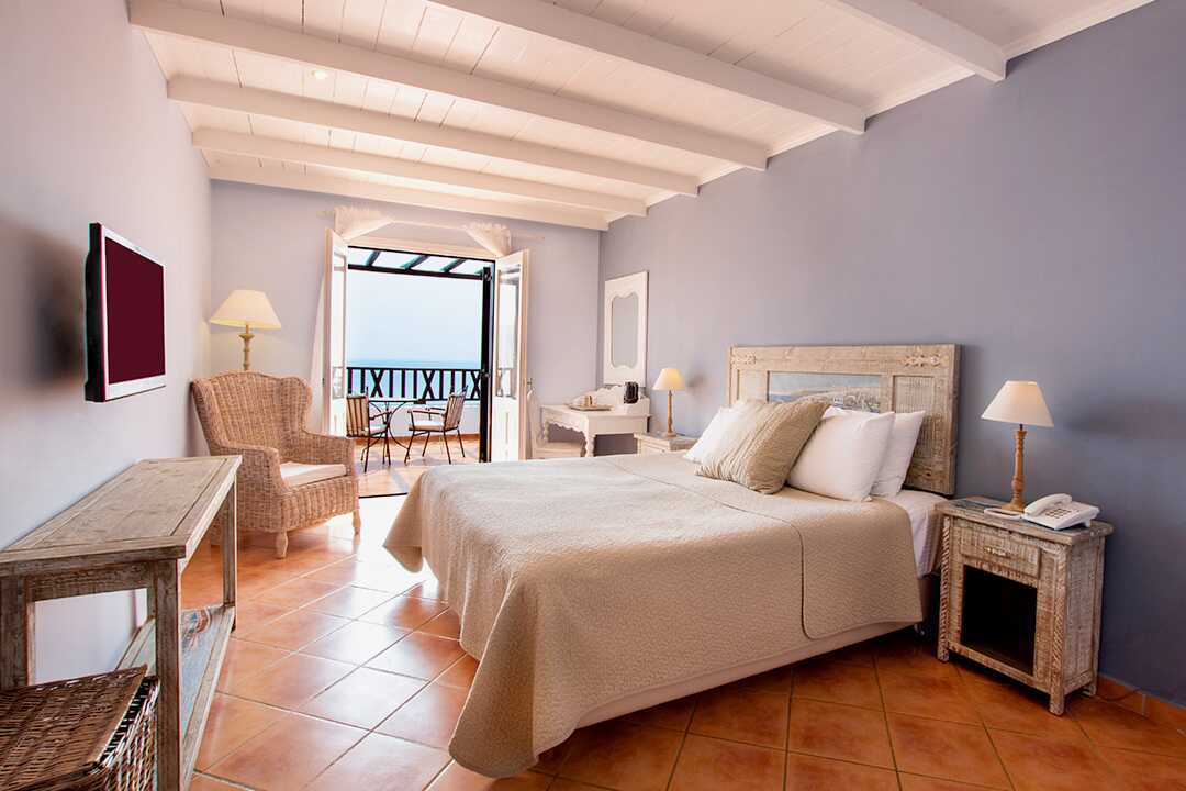 Deluxe-huoneita, joissa on parveke tai terassi rajoitetulla merinäköalalla tai merinäköalalla. Osassa huoneista on portaat siihen osaan huonetta, jossa on sijaitsee vuode ja kylpyhuone. Parivuode tai kaksi yhden hengen vuodetta. Lisävuodemahdollisuus vuodesohvasta. Maksuton wifi, ilmastointi ja tallelokero. Kahvinkeitin, neljä kahvikapselia mukana, lisää voi ostaa halutessaan hotellin baarista. Tv satelliittikanavilla. Minibaari. Kahvin ja teen keittomahdollisuus. Suihku ja wc. Siivous 6 krt/viikko.