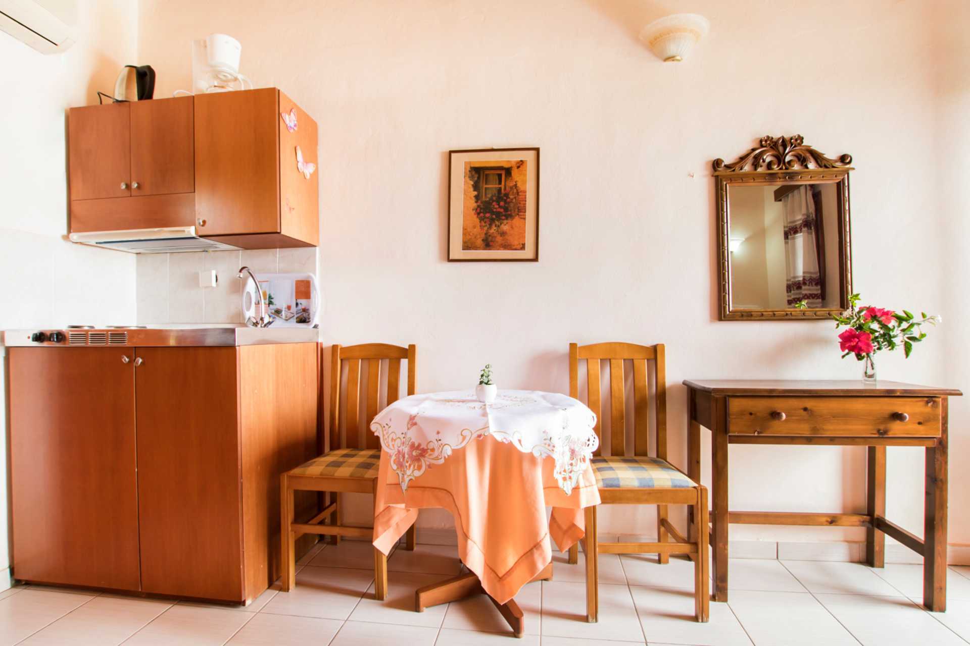 Suurehkoja yksiöitä maaparvekkeella. Yhdistetty makuuhuone ja minikeittiö. Yksi parivuode tai kaksi erillistä vuodetta. Mahdollisuus lisävuoteeseen kokoontaitettavasta vuoteesta. Minikeittiössä keittolevyt, jääkaappi, kahvinkeitin ja yksinkertainen keittiövarustus. Maksuton wifi, ilmastointi ja tallelokero. Hiustenkuivain. Kylpyhuoneessa suihku ja wc. Siivous 6 krt/viikko.
