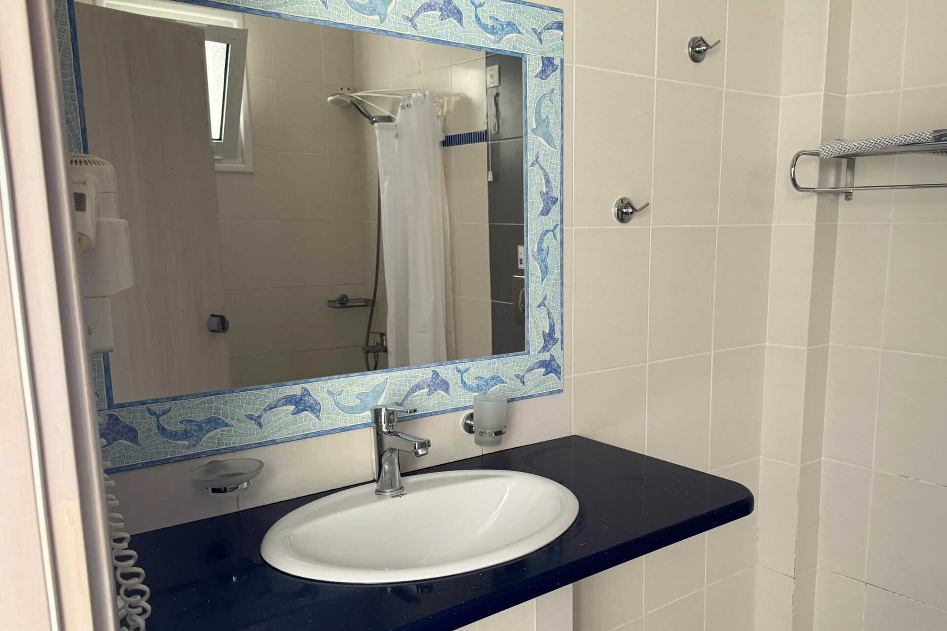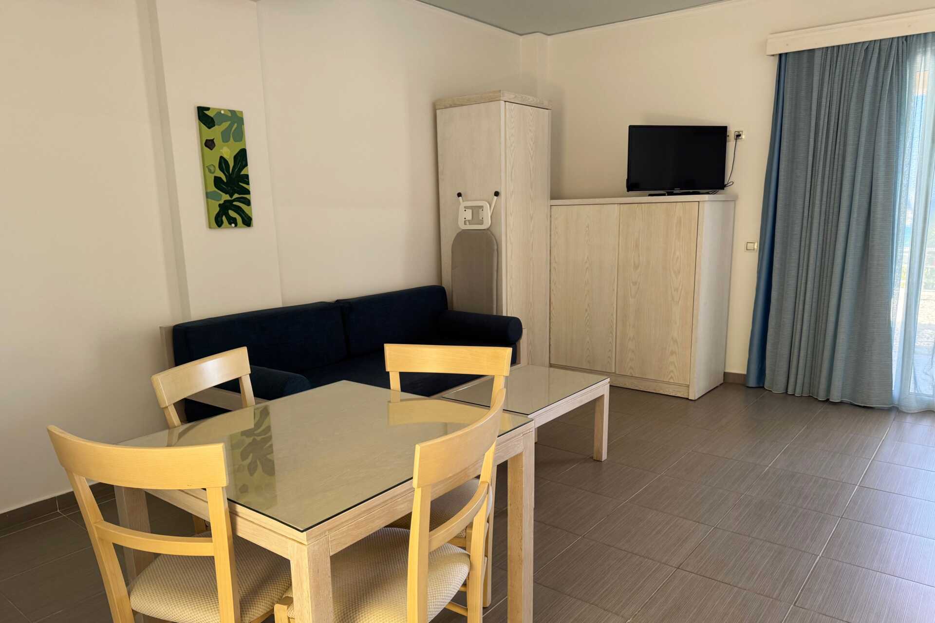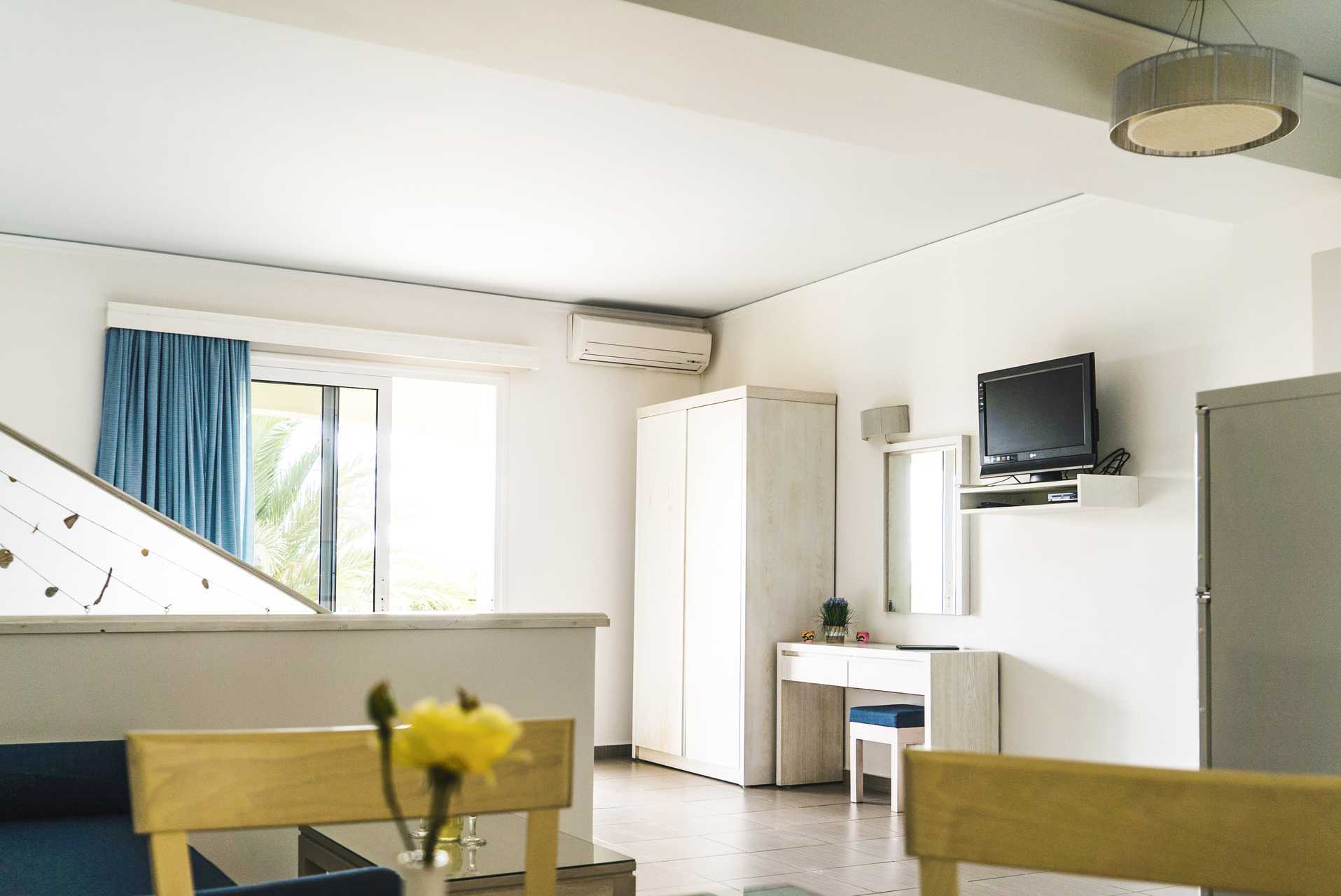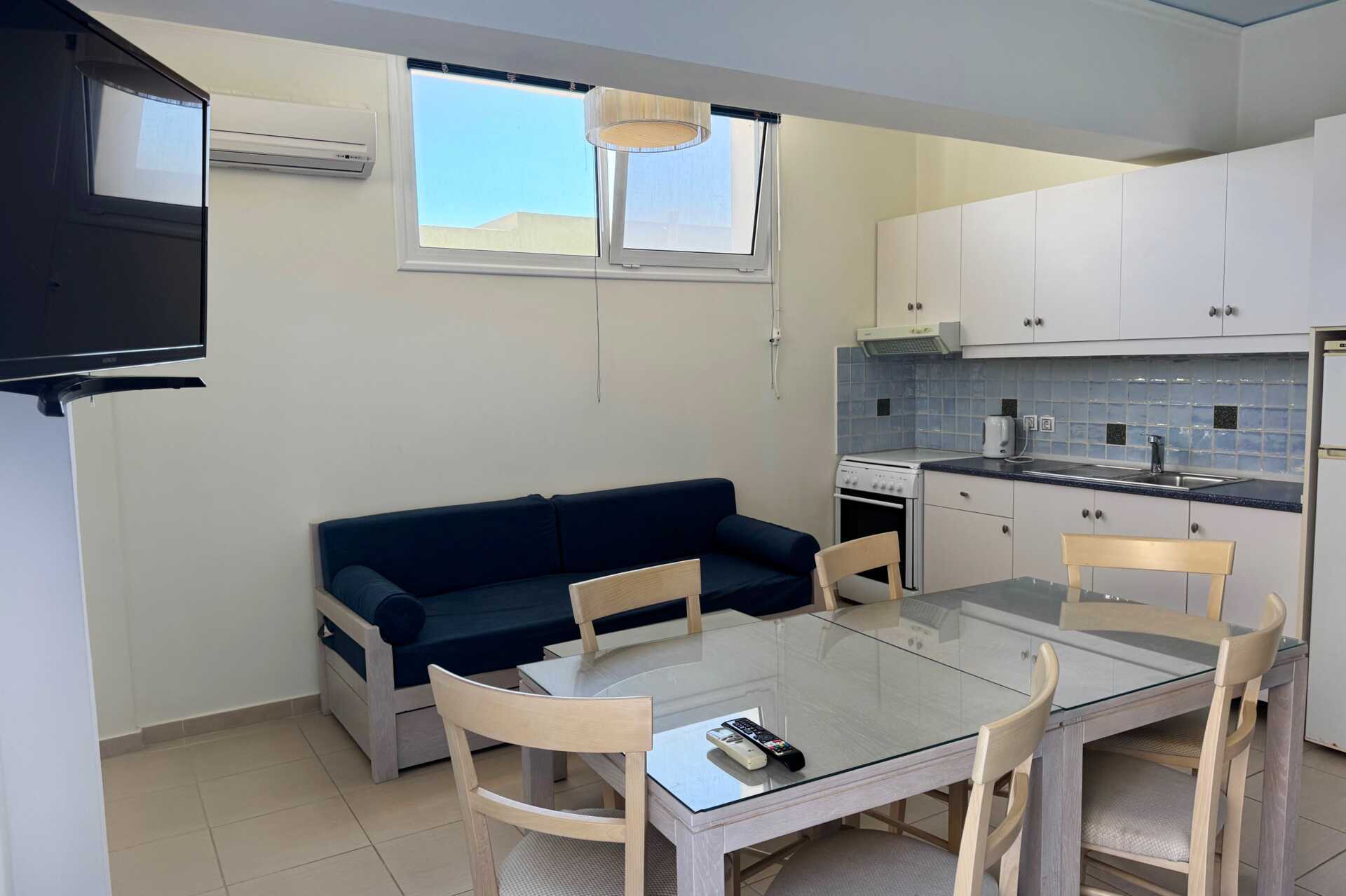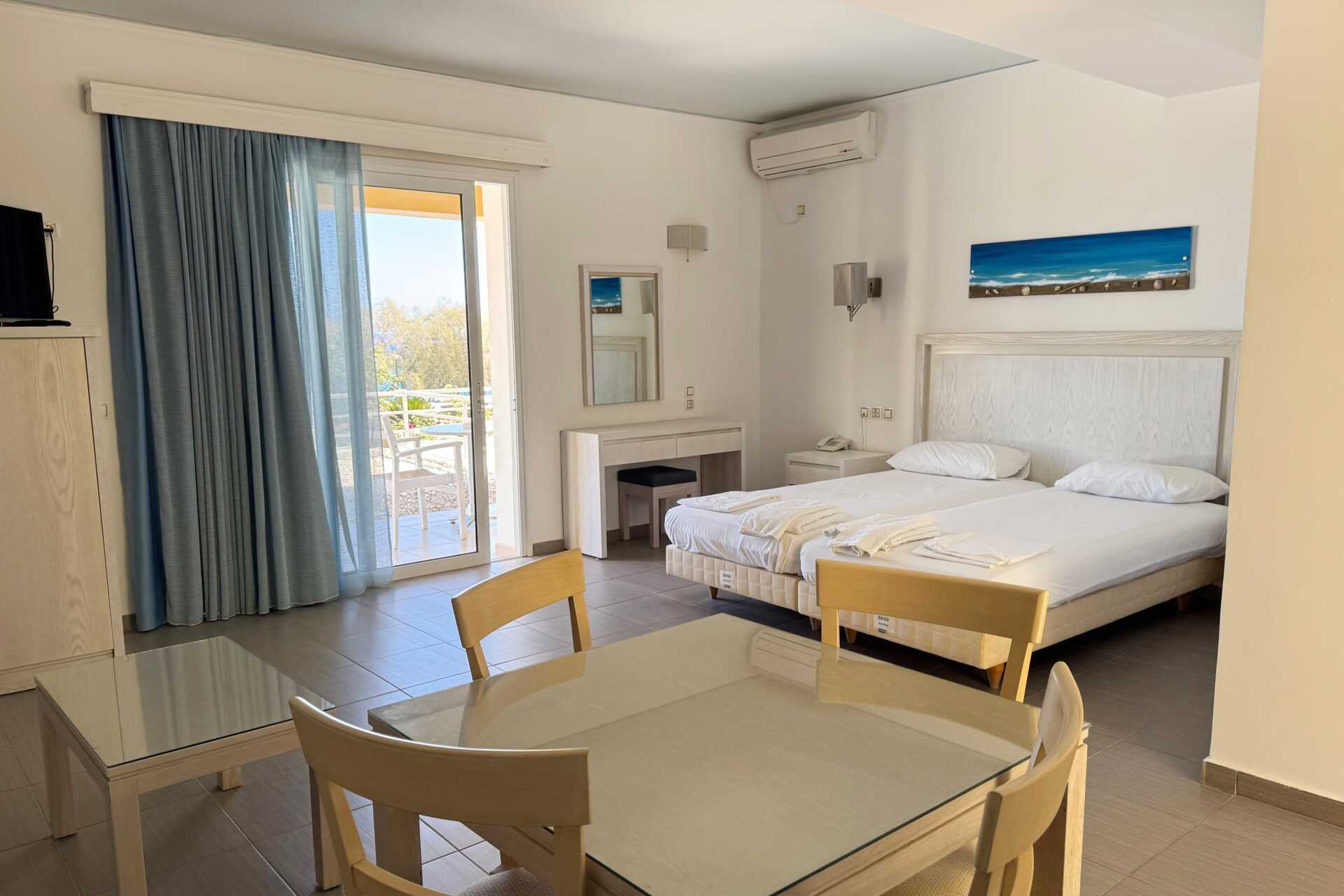 Yksiöitä, joissa on parveke tai maaparveke merinäköalalla. Yhdistetty makuuhuone ja minikeittiö. Parivuode. Lisävuodemahdollisuus vuodesohvaan. Minikeittiössä uuni, liesi, jääkaappi, kahvinkeitin, vedenkeitin, mehupuristin, leivänpaahdin, voileipägrilli, sähkövatkain ja yksinkertainen keittiövarustus. Tv kansainvälisillä kanavilla. Maksuton ilmastointi ja tallelokero. Silitysvälineet. Hiustenkuivain. Kylpyhuoneessa suihku ja wc. Siivous 6 kertaa/viikko.