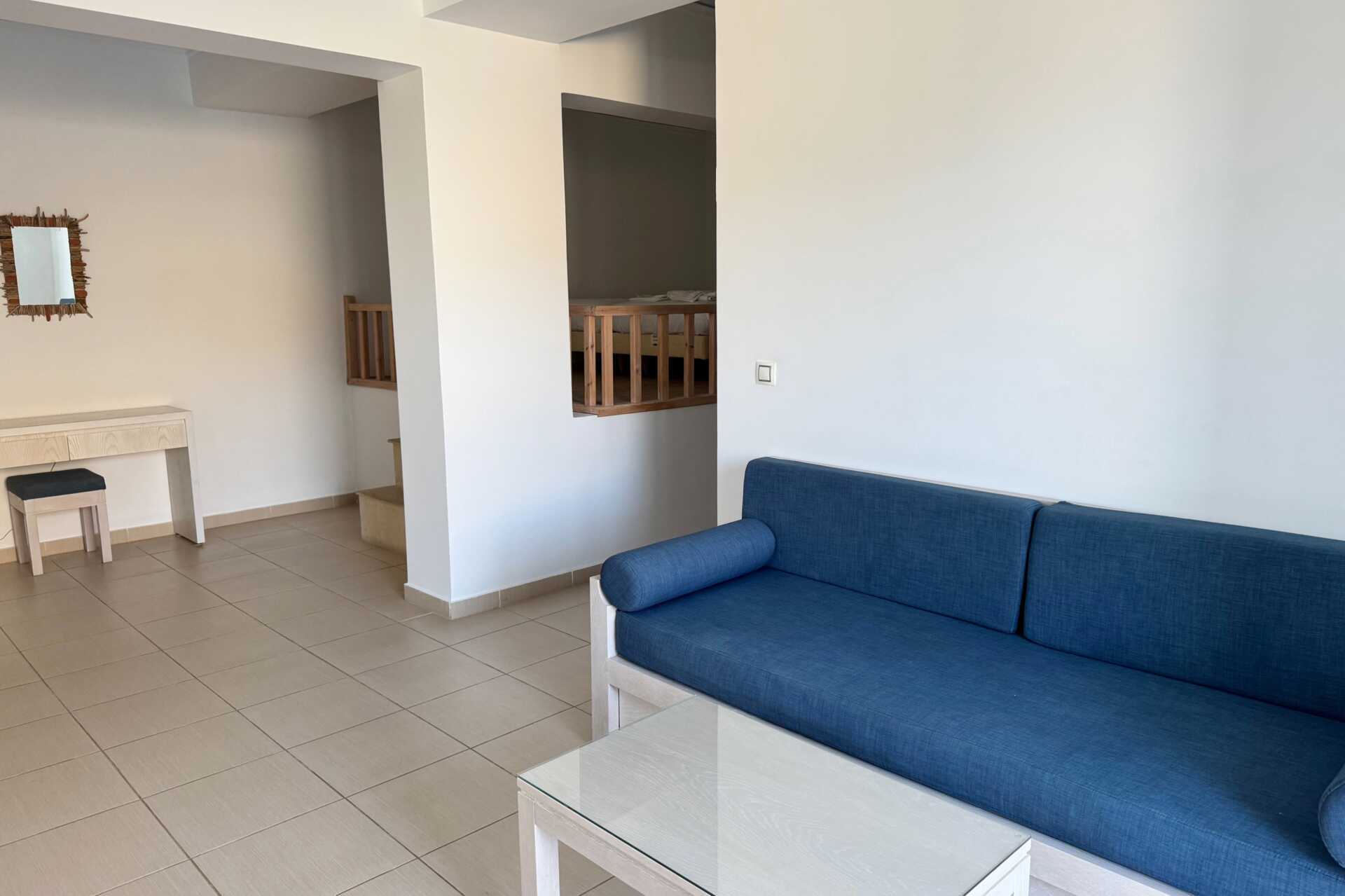 Kaksio jossa maaterassi Makuuhuone sekä yhdistetty olohuone ja minikeittiö. Kaksi yhden hengen sänkyä. Lisävuodemahdollisuus vuodesohvasta. Minikeittiö, jossa uuni, liesi, jääkaappi, kahvinkeitin, vedenkeitin, mehustin, leivänpaahdin, voileipägrilli, sähkövatkain ja peruskeittiövälineet. Maksuton ilmastointi ja tallelokero. Silitysrauta ja -lauta. Tv kansainvälisillä kanavilla. Hiustenkuivain. Suihku ja wc. Siivous 6 krt/viikko. Kaksioissa on pienet, hieman korkealla seinällä olevat ikkunat, ja joissakin kaksioissa on tavallinen ovi (ei lasia) terassille.