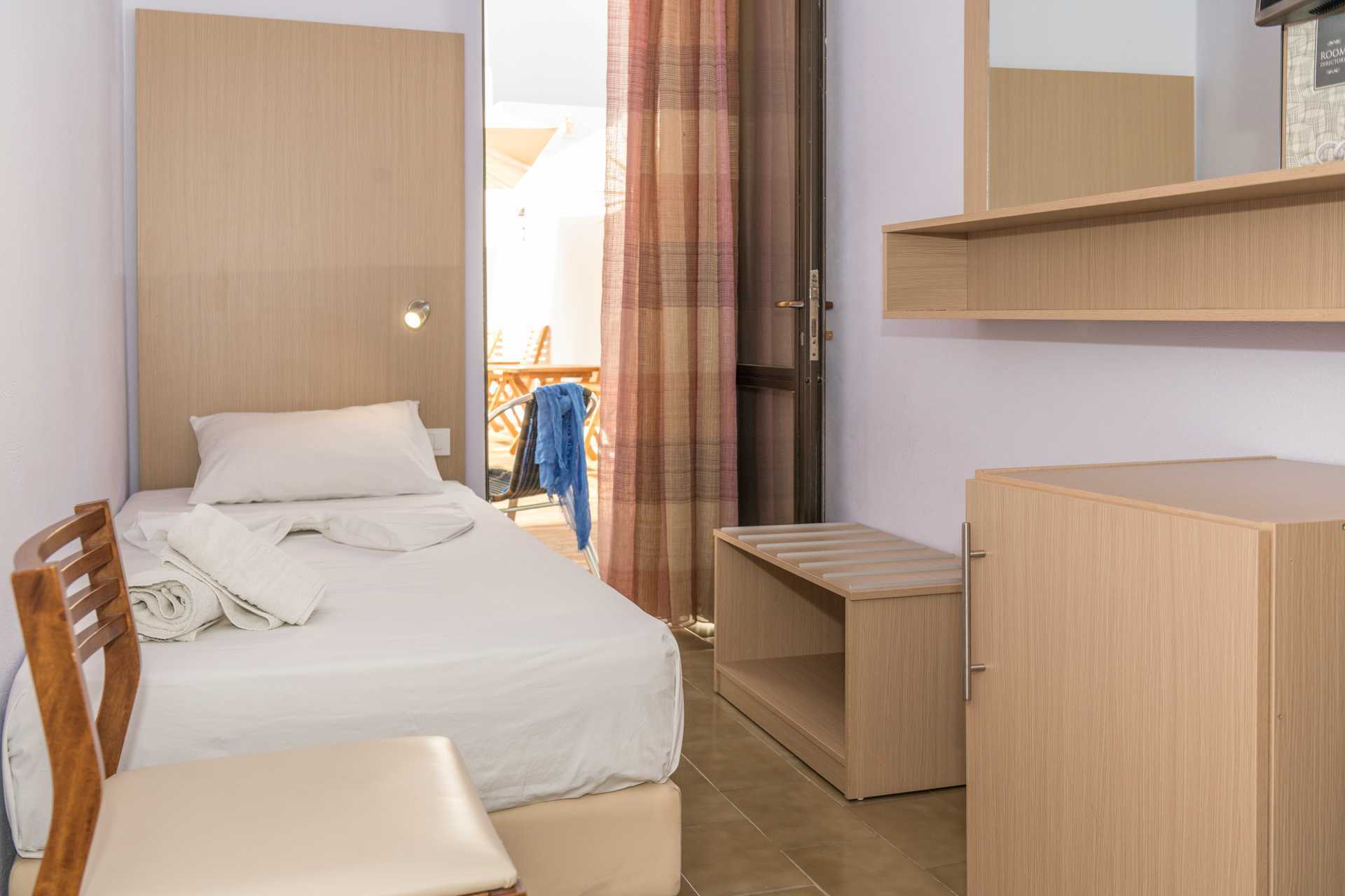Yhden hengen huone maaterassilla ja allasnäkymällä. Yhden hengen vuode. Maksuton wifi, ilmastointi ja tallelokero. Jääkaappi. Vedenkeitin. Tv kansainvälisillä kanavilla. Hiustenkuivain. Kylpyhuoneessa suihku ja wc. Siivous 6 krt/viikko.