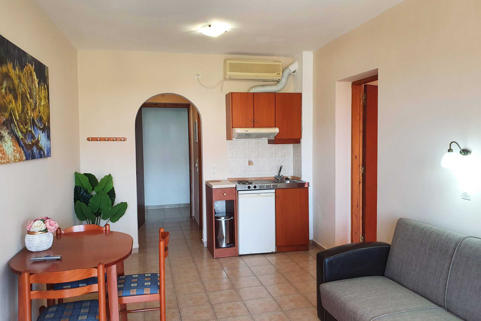 Kaksioita, joissa on parveke. Makuuhuone sekä yhdistetty olohuone ja minikeittiö. Kaksi yhden hengen vuodetta. Lisävuodemahdollisuus vuodesohvasta ja kokoontaitettavasta vuoteesta. Minikeittiö, jossa on keittolevyt, jääkaappi, kahvinkeitin, leivänpaahdin ja yksinkertainen keittiövarustus. Maksuton wifi, osassa huoneista yhteys toimii vain parvekkeella. Ilmastointi ja tallelokero lisämaksusta. Tv paikalliskanavilla. Hiustenkuivain. Suihku ja wc. Siivous 6 krt/viikko.