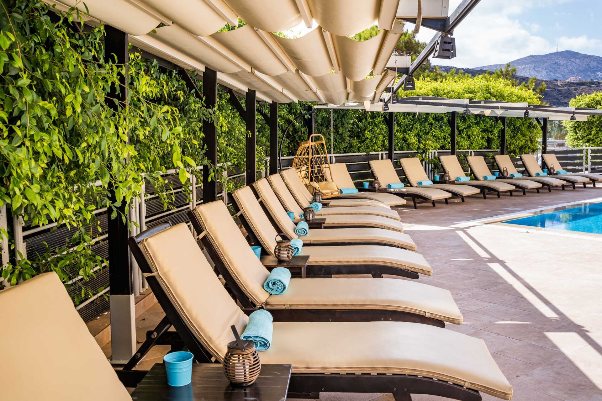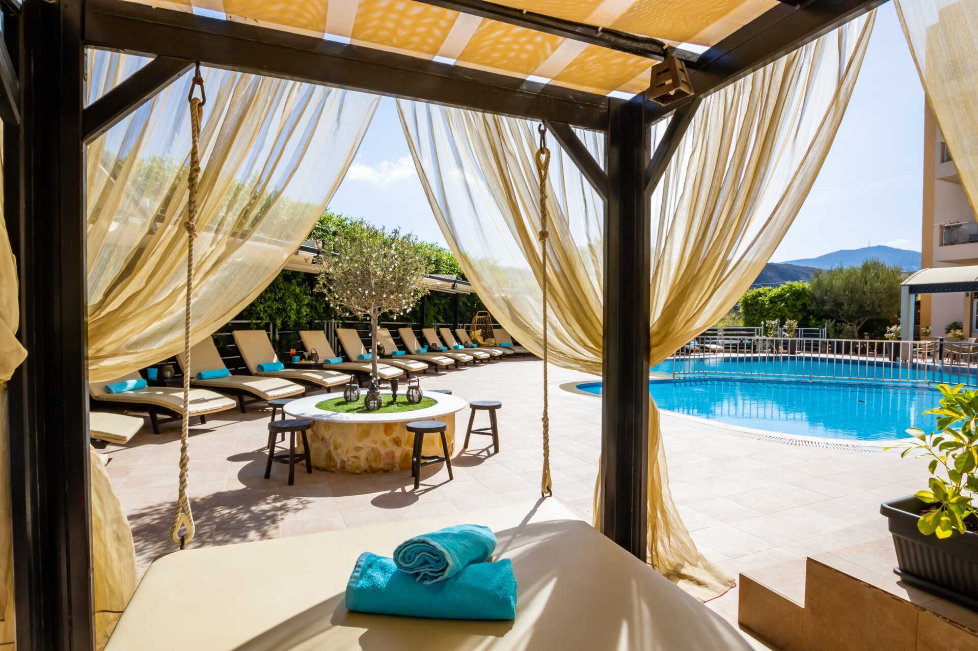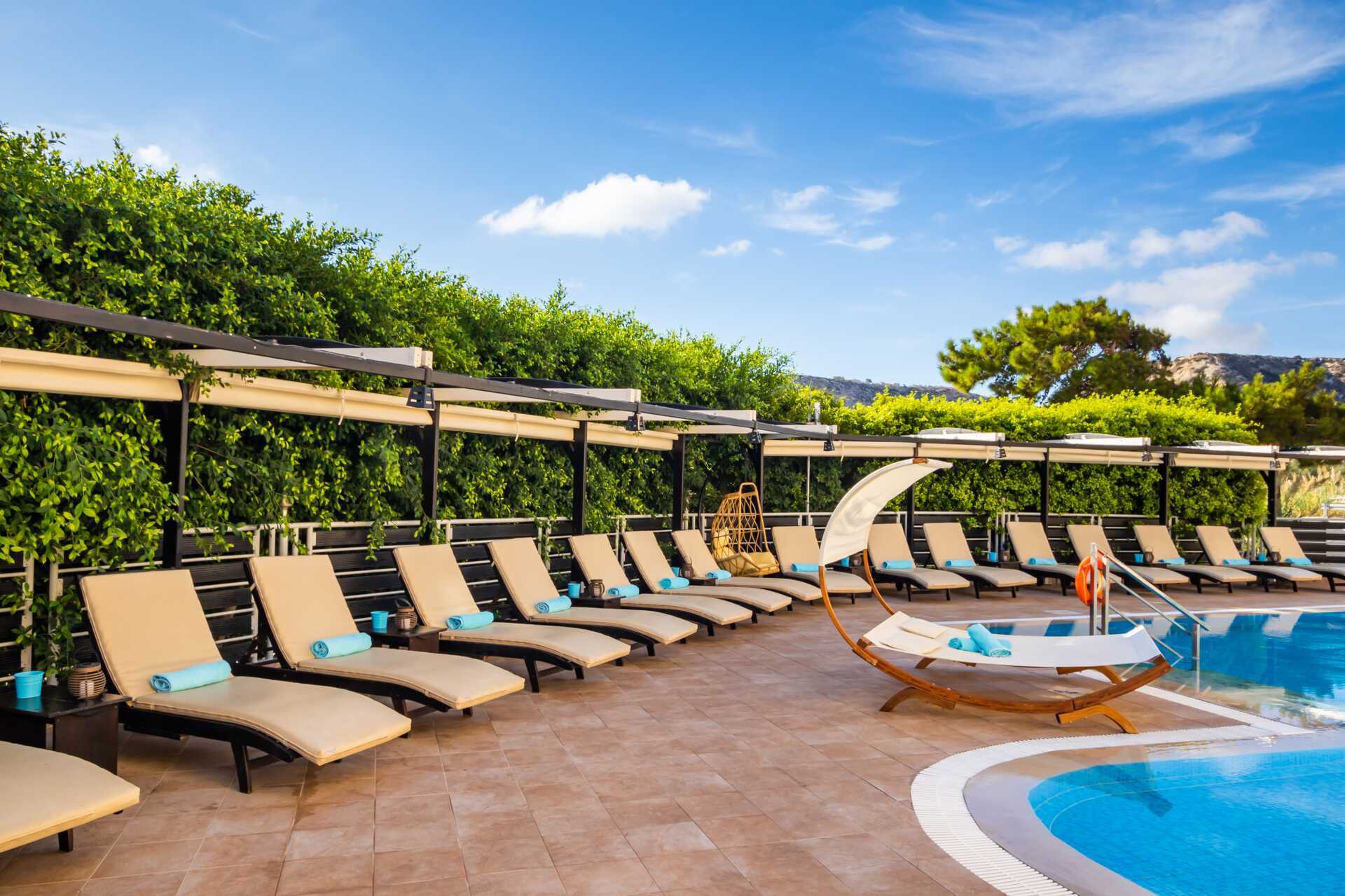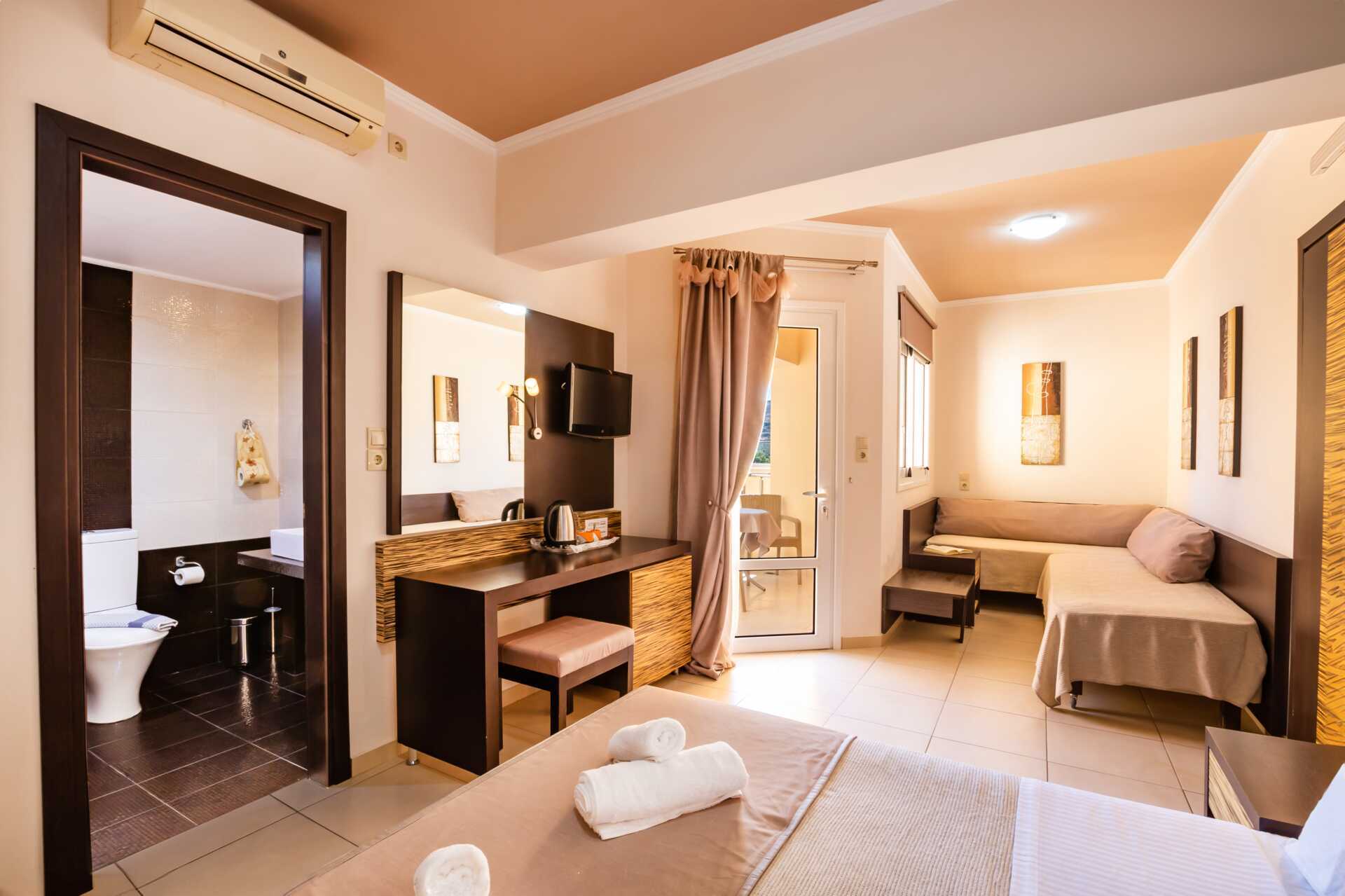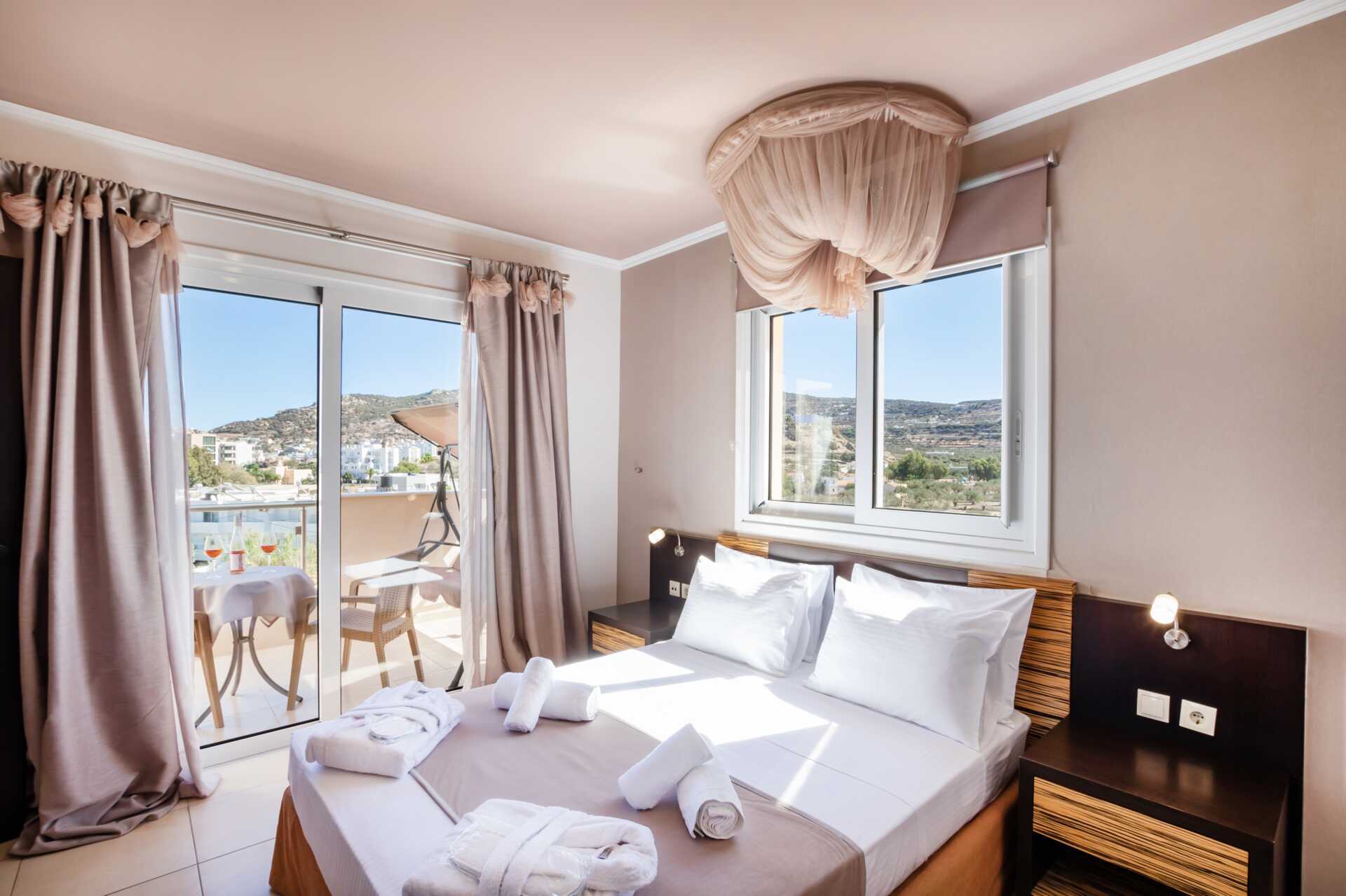 Sviittejä, joissa on parveke allasnäkymällä tai merinäköalalla. Parivuode. Lisävuodemahdollisuus vuodesohvasta. Maksuton wifi, ilmastointi ja tallelokero. Jääkaappi. Vedenkeitin, kahvia ja teetä. Tv kansainvälisillä kanavilla. Kylpytakit ja tossut. Hiustenkuivain. Suihku ja wc. Siivous 6 krt/viikko.