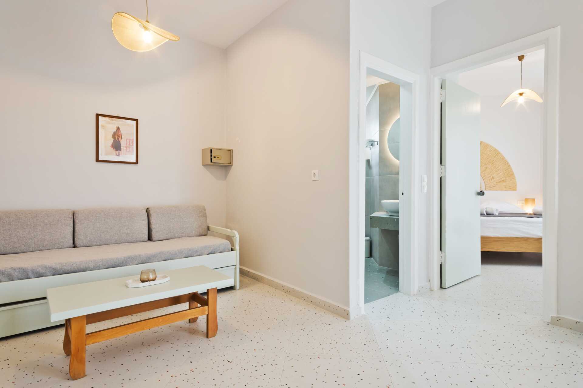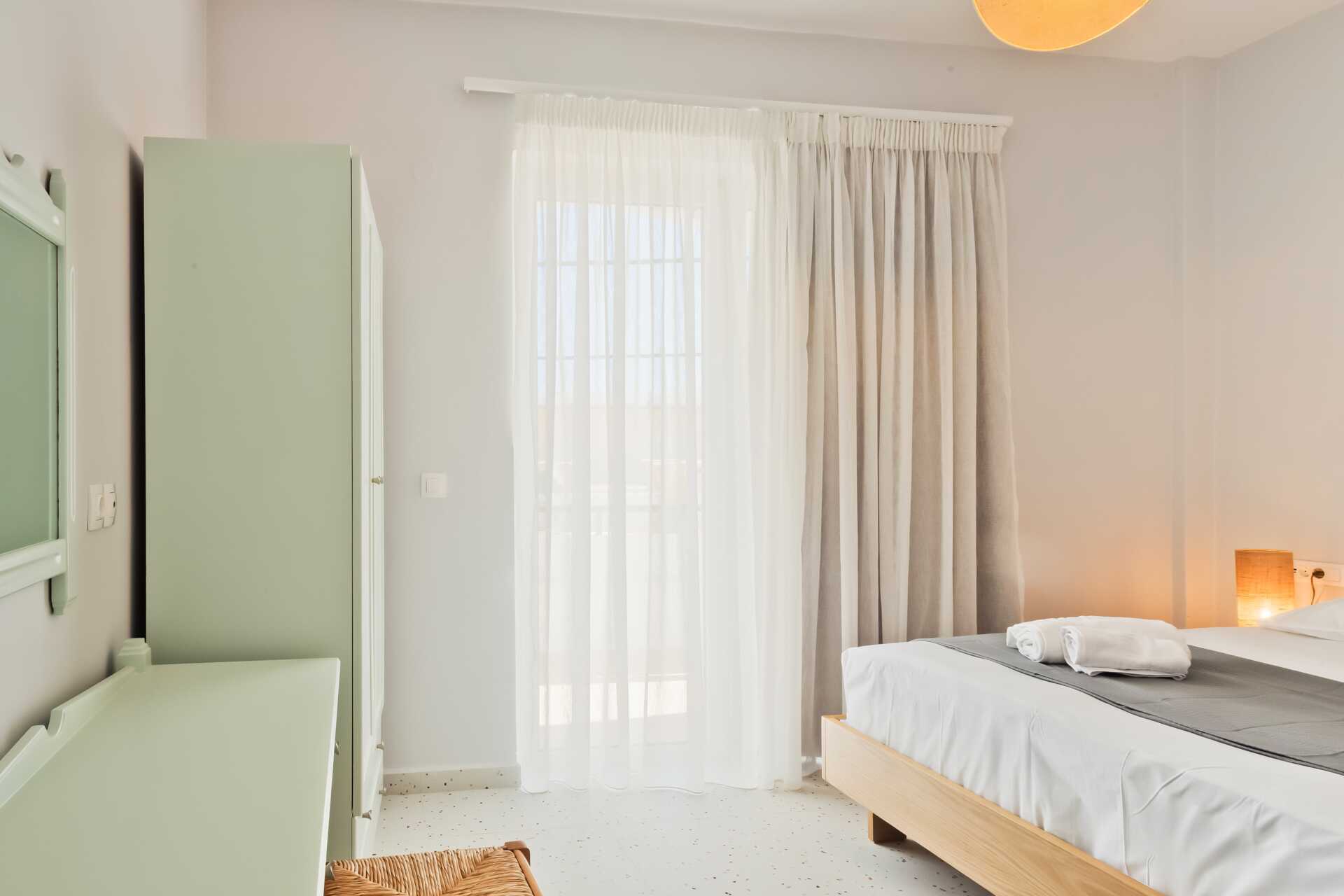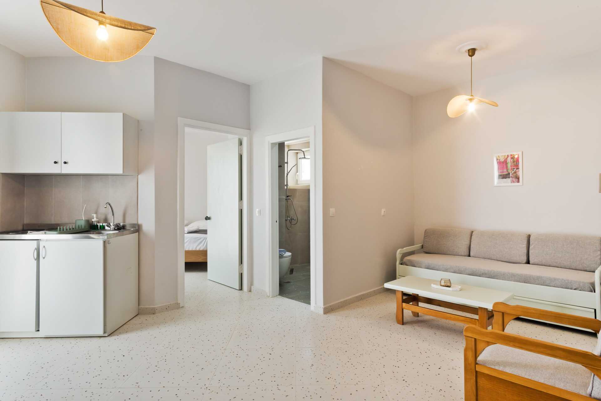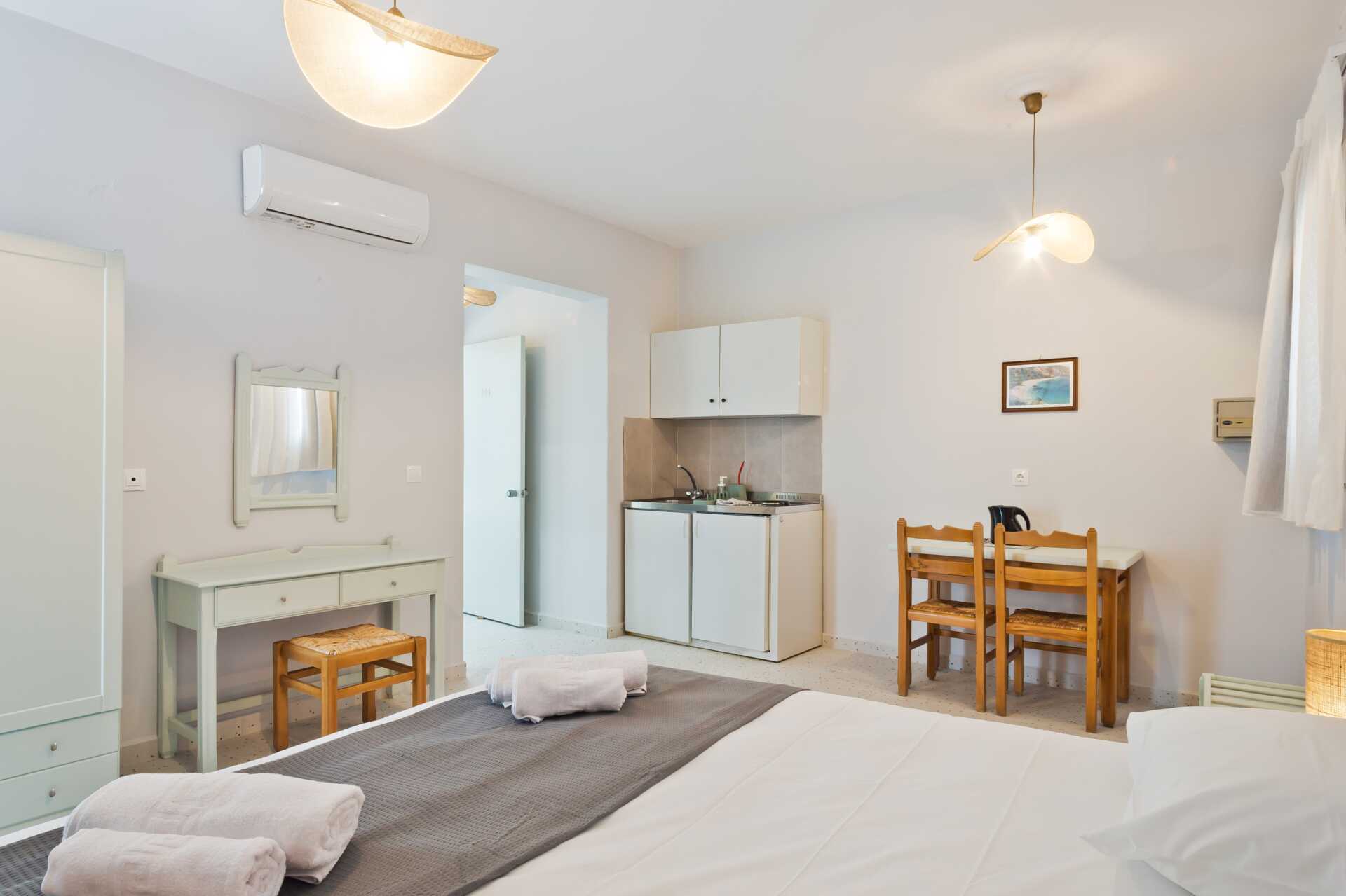 Yksiöt, aamupala ja parveke. Yhdistetty makuuhuone ja minikeittiö. Parivuode. Lisävuodemahdollisuus. Minikeittiössä keittolevyt, jääkaappi, vedenkeitin ja yksinkertainen keittiövarustus. Maksuton wifi, ilmastointi ja tallelokero. Suihku ja wc. Siivous 6 krt/viikko.