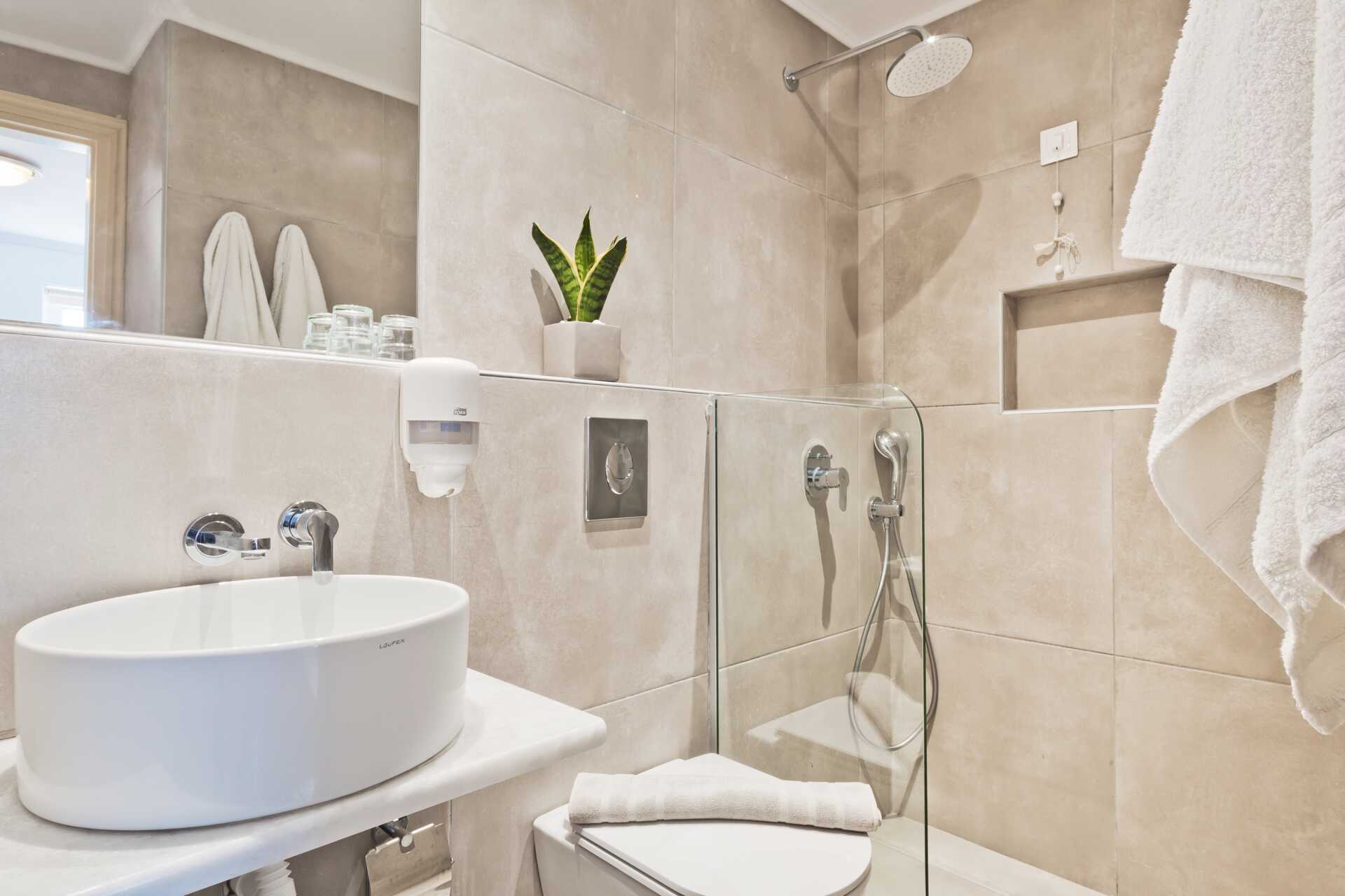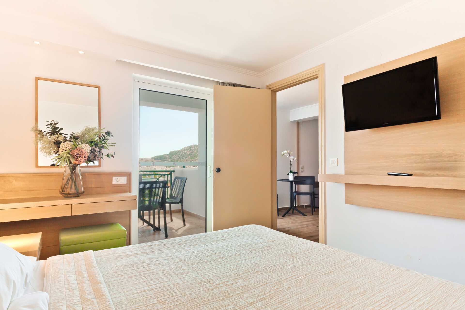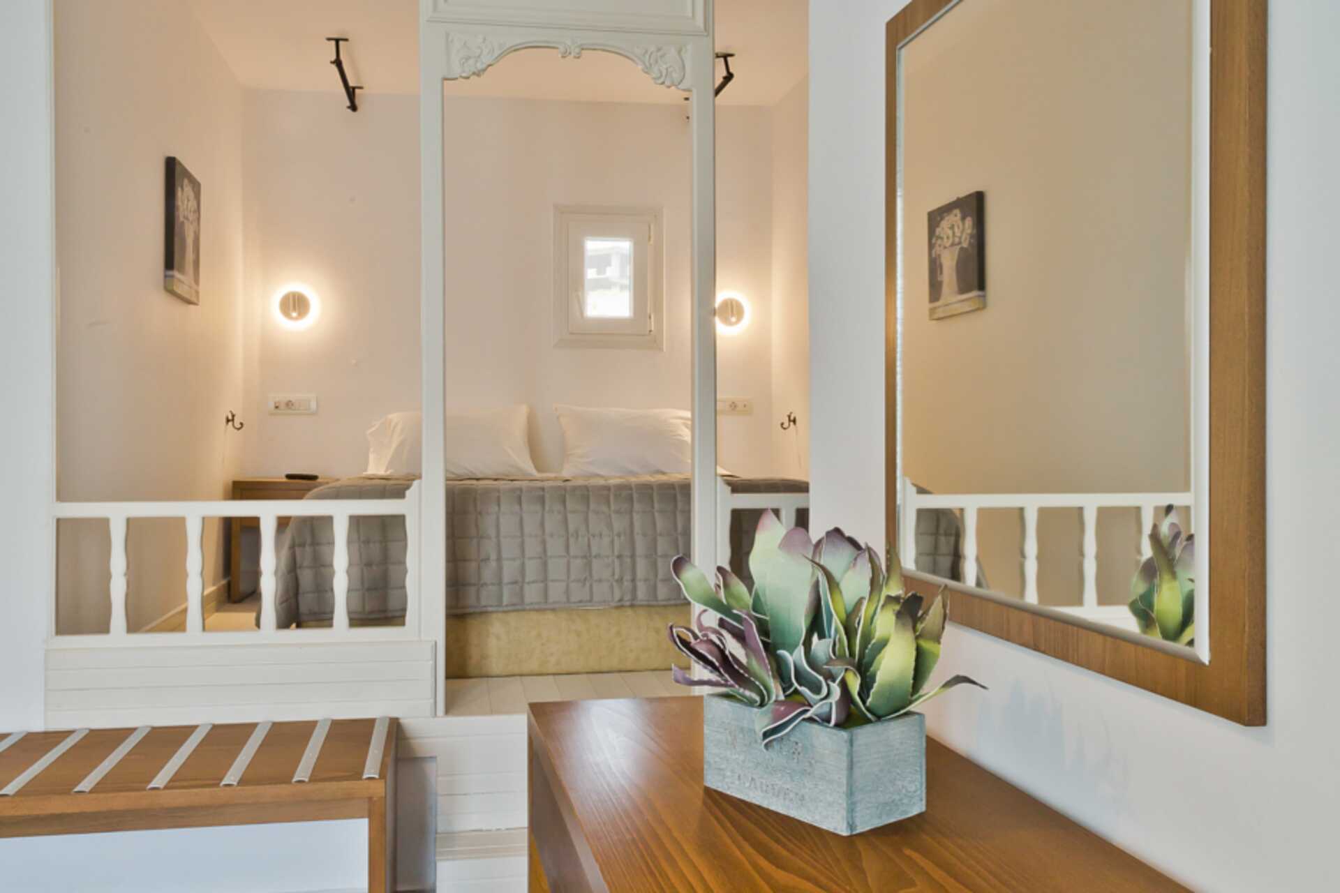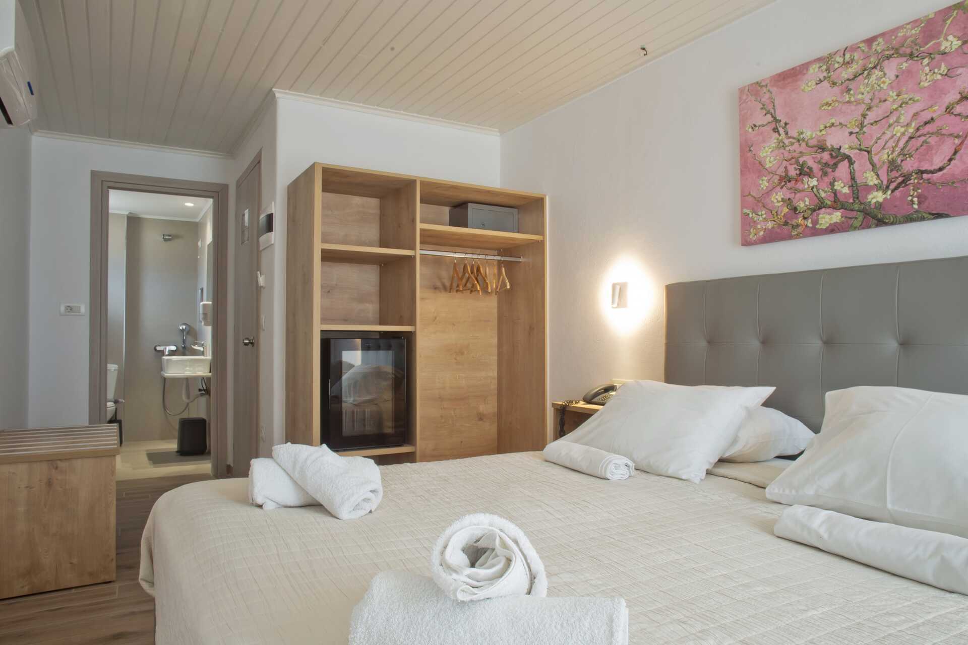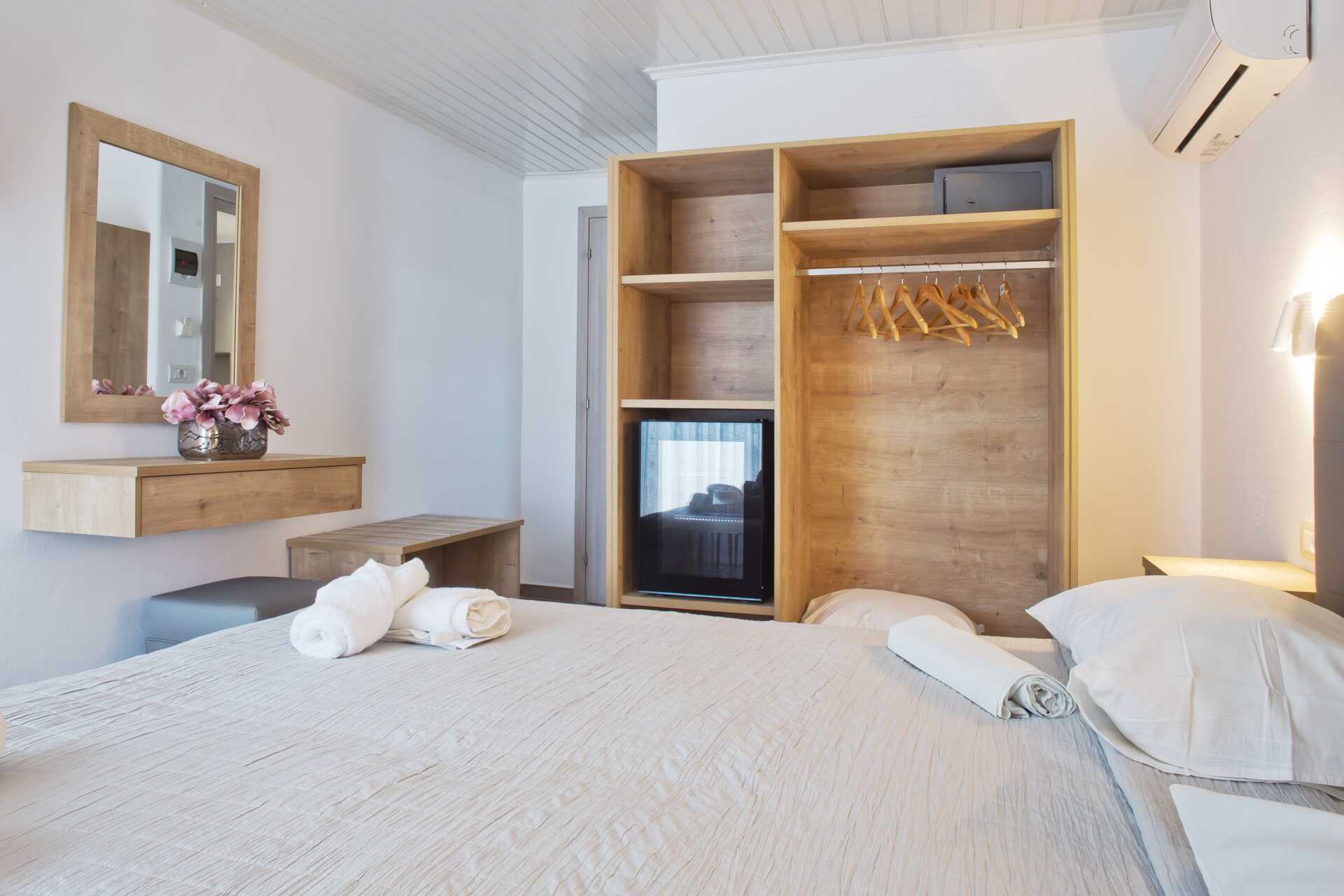 Erikokoisia kahden hengen huoneita, joissa parveke tai terassi. Kahden hengen huoneita molemmissa rakennuksissa. Parivuode. Maksuton wifi ja tallelokero. Ilmastointi lisämaksulla. Jääkaappi. Tv kansainvälisillä kanavilla. Kylpyhuoneessa suihku ja wc. Siivous 6 krt/viikko.