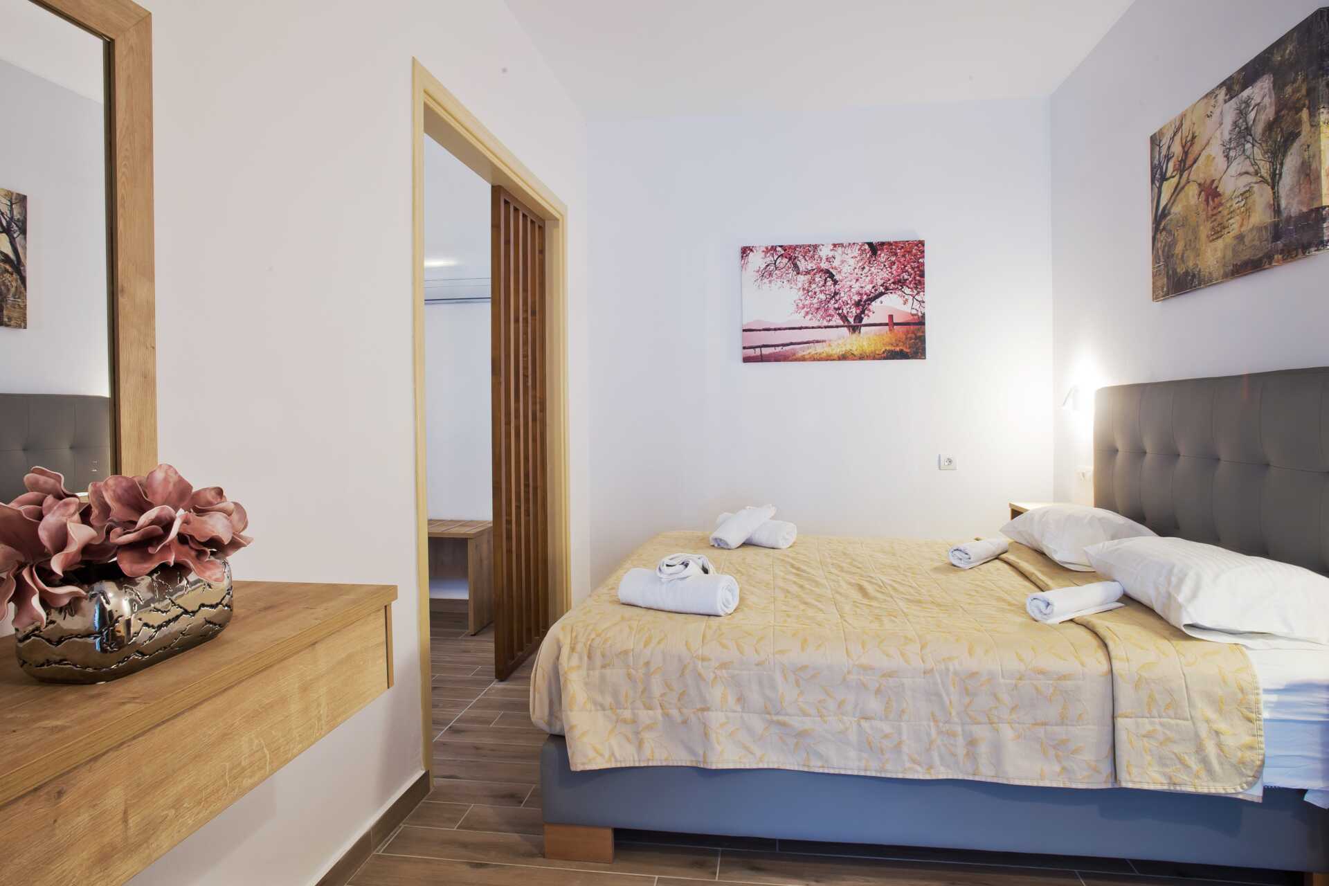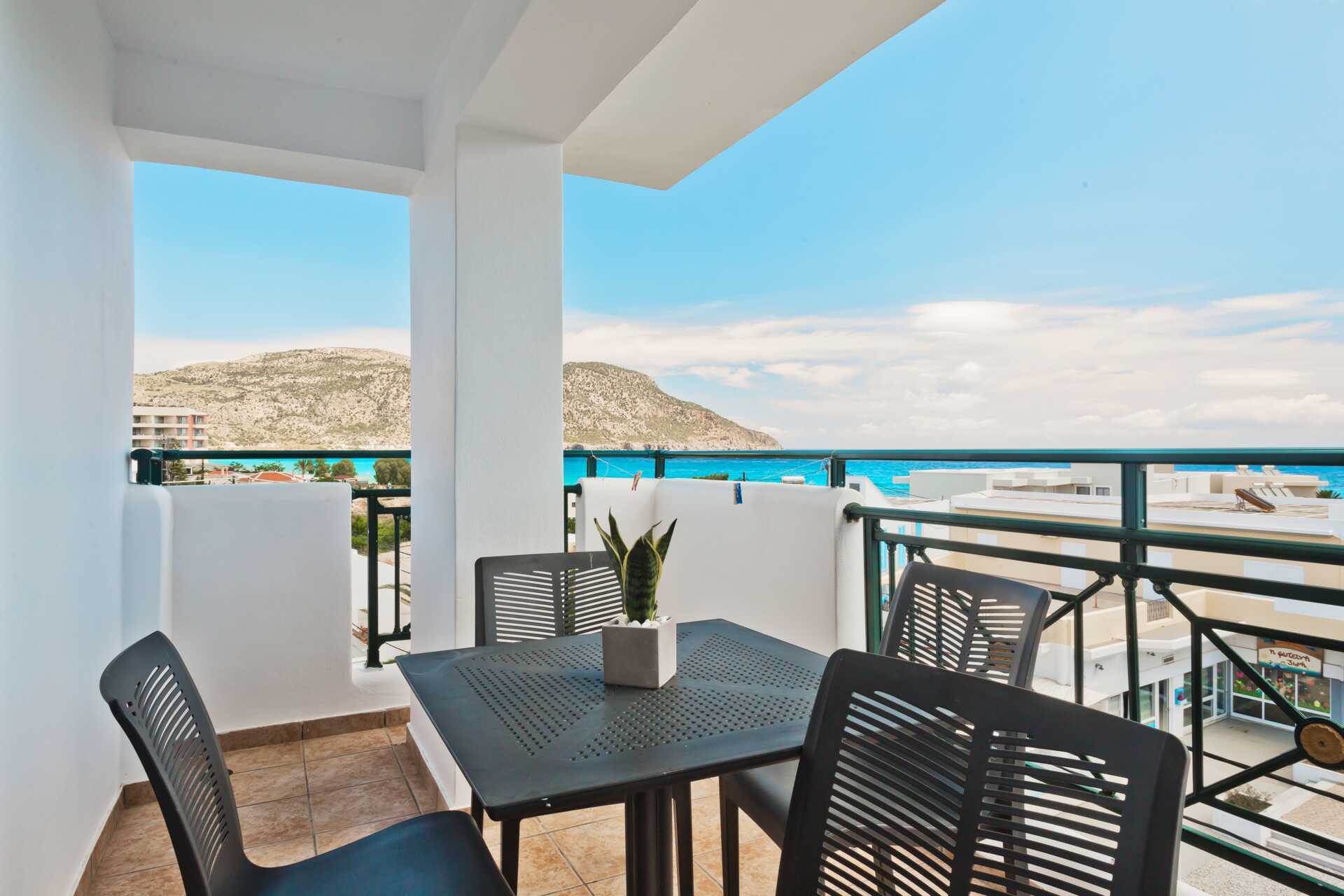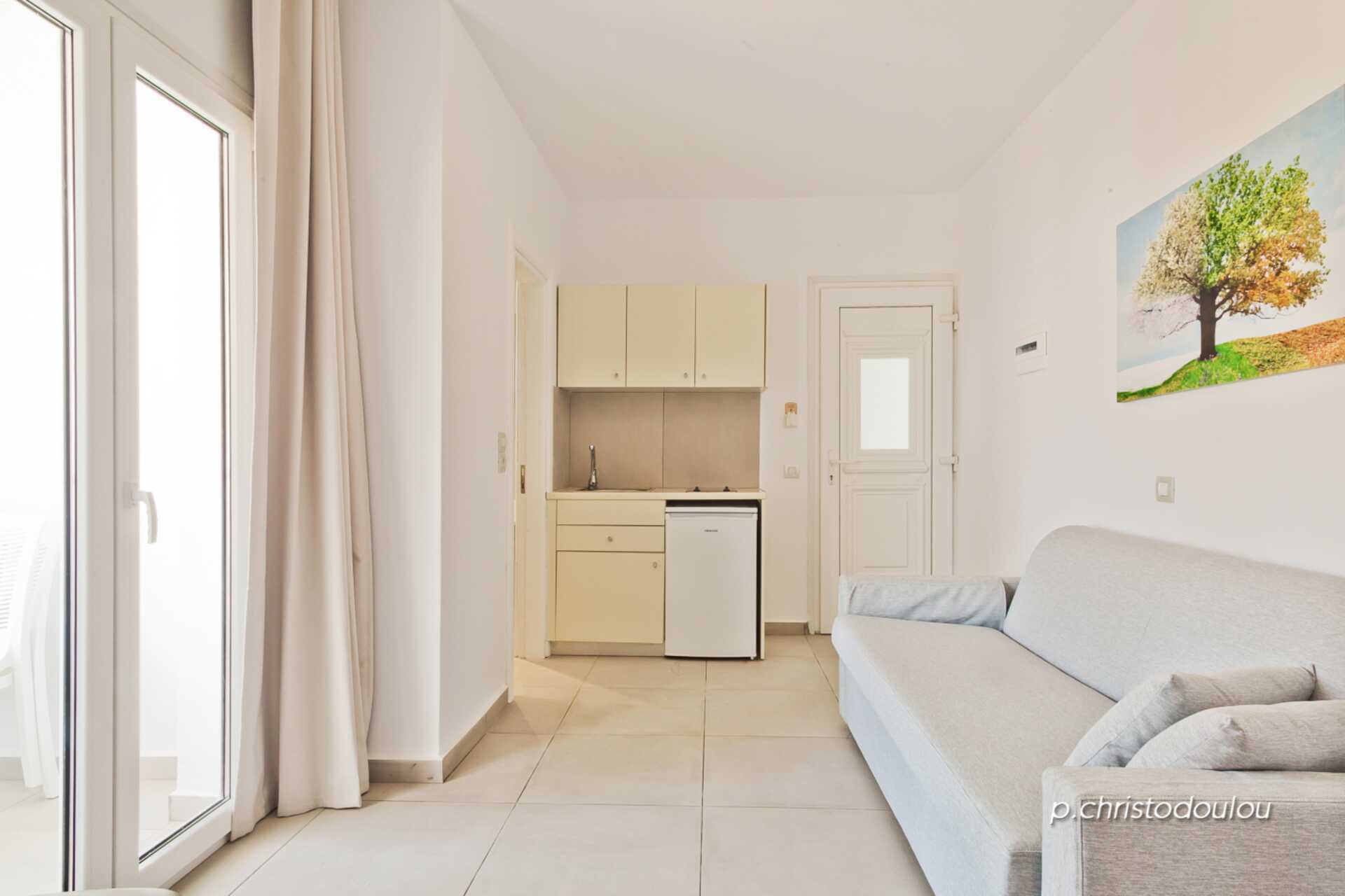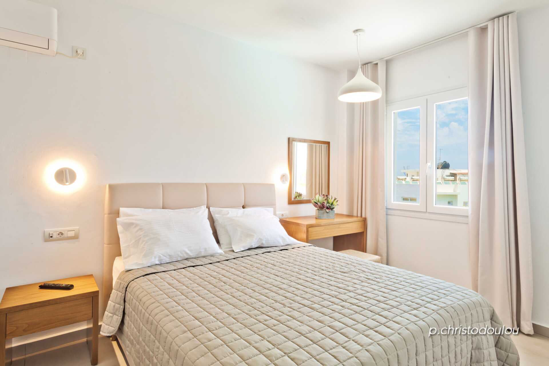 Vaihtelevan kokoisia yksiöitä. Parveke tai terassi. Yhdistetty makuuhuone ja minikeittiö. Osa huoneistoista on remontoitu ja osa on sisustettu perinteiseen tyyliin karpathoslaisin sängyin. Karpathoslainen sänky on korotettu sänky/makuualkovi, johon kuljetaan portaita pitkin. Parivuode tai kaksi yhden hengen vuodetta. Keittolevyt, jääkaappi, vedenkeitin ja yksinkertainen keittovarustus. Tv kansainvälisillä kanavilla. Maksuton wifi ja tallelokero. Ilmastointi lisämaksusta. Suihku ja wc. Siivous 6 krt/viikko.