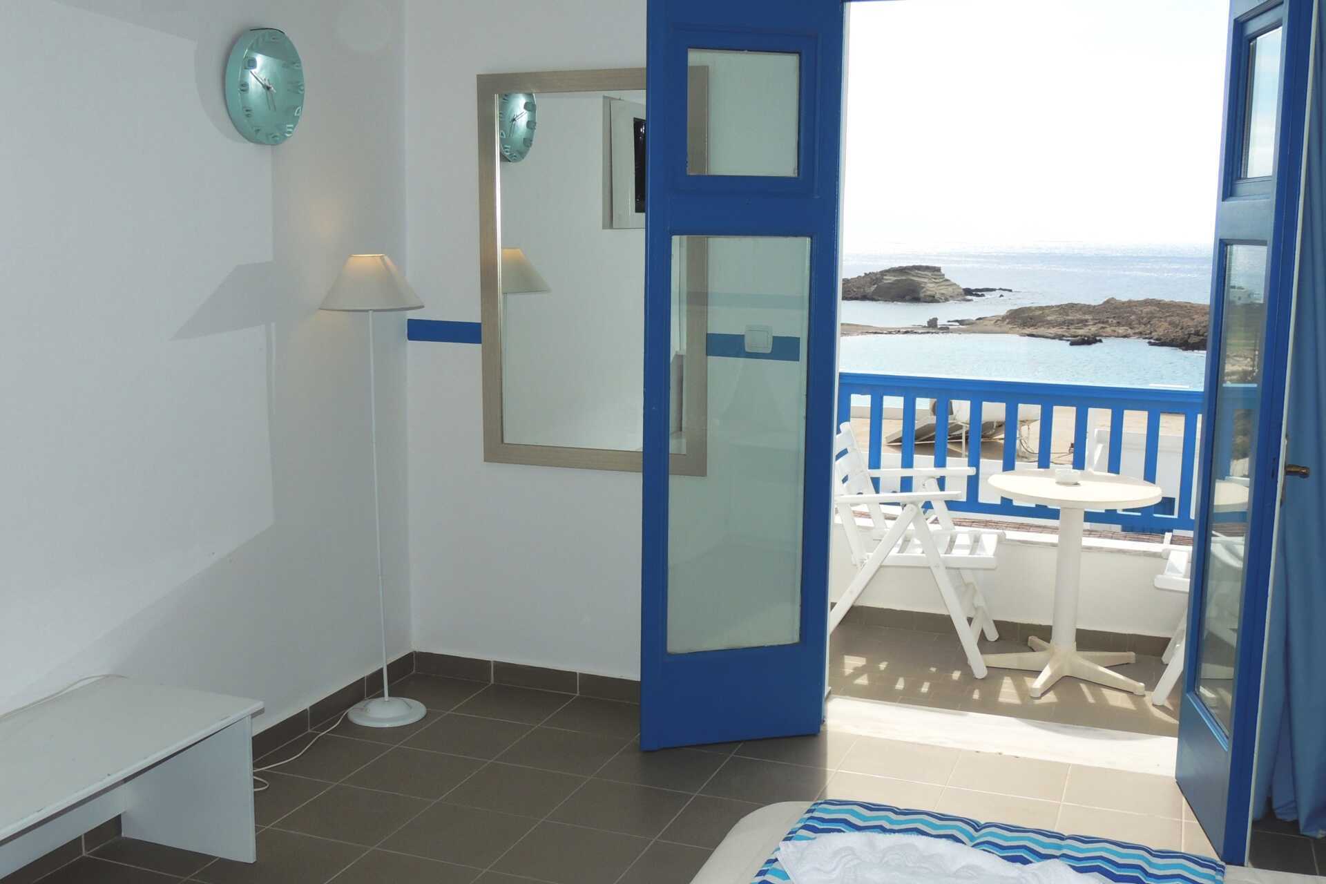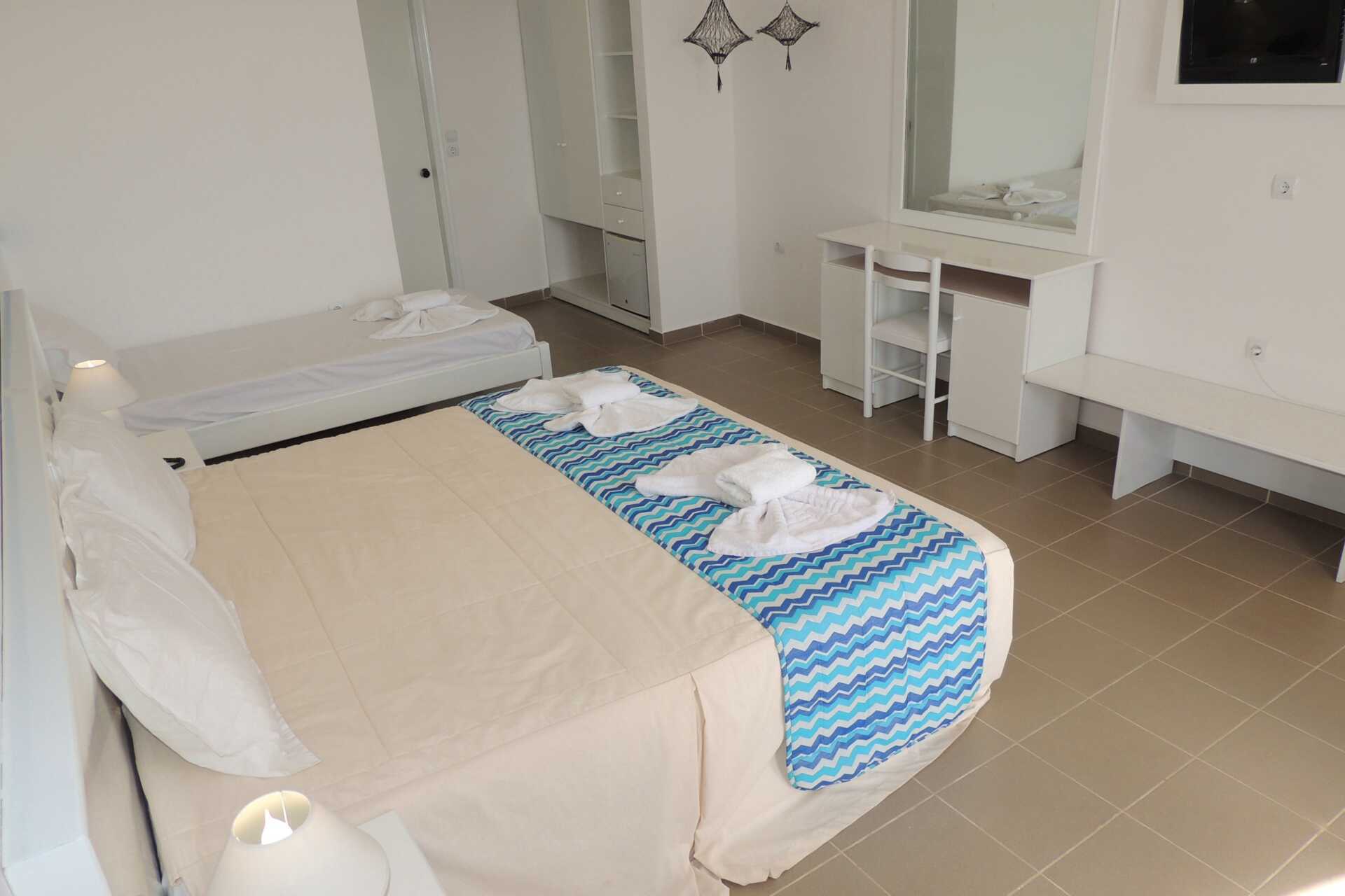 Kahden hengen huone parvekkeella ja merinäköalalla. Parivuode. Maksuton wifi ja ilmastointi. Pieni jääkaappi. Tv paikallisilla kanavilla. Hiustenkuivain. Kylpyhuoneessa suihku ja wc. Siivous 6 krt/viikko. Alle 2-vuotiaat lapset lasketaan lisävuoteella majoittuviksi henkilöiksi.
