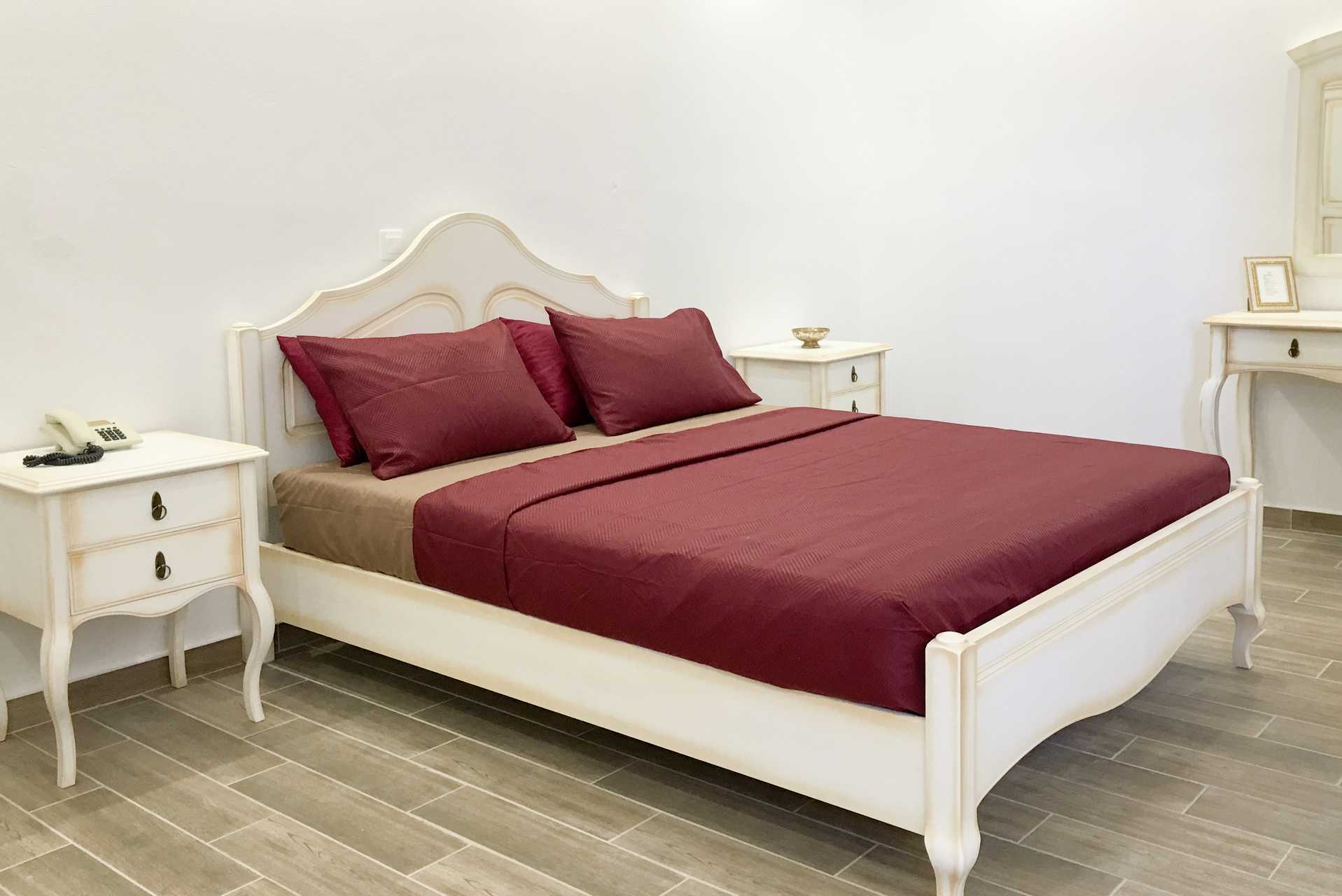 Yksiö parvekkeella tai terassilla ja merinäköala. Yhdistetty makuuhuone ja minikeittiö. Kaksi erillistä sänkyä, perinteinen paikallinen vuode tai parisänky. Minikeittiö jääkaapilla ja peruskeittiövälineillä. Maksuton wifi. Ilmastointi ja tallelokero lisämaksusta. Kylpyhuoneessa suihku ja wc. Joihinkin huoneistoihin on sisäänkäynti ulkotilan kautta. Siivous 6 krt/viikko.
