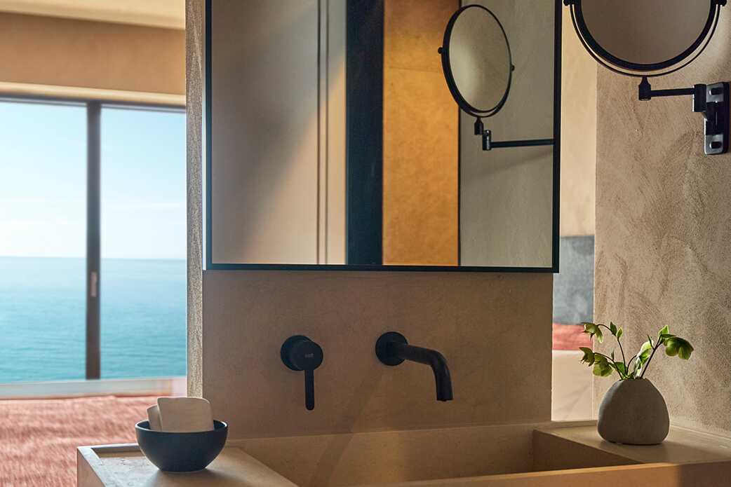 Deluxe-huone parvekkeella ja merinäköalalla. Parivuode tai kaksi yhden hengen sänkyä. Maksuton wifi, ilmastointi ja tallelokero. Minibaari, jossa päivittäin täydennetään virvokkeita, vettä ja virvoitusjuomia. Nespresso-keitin. Tv kansainvälisillä kanavilla. Hiustenkuivaaja, kylpytakki ja tossut. Kylpyhuone, jossa on suihku ja wc ja joka on osittain avoin huoneeseen. Siivous 7 krt/viikko.