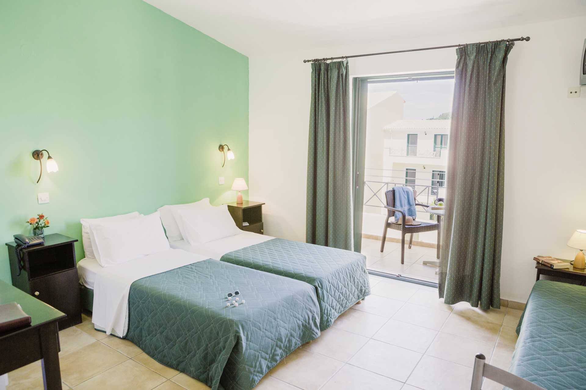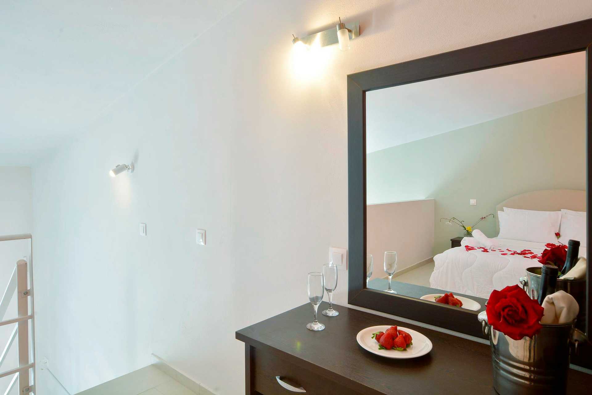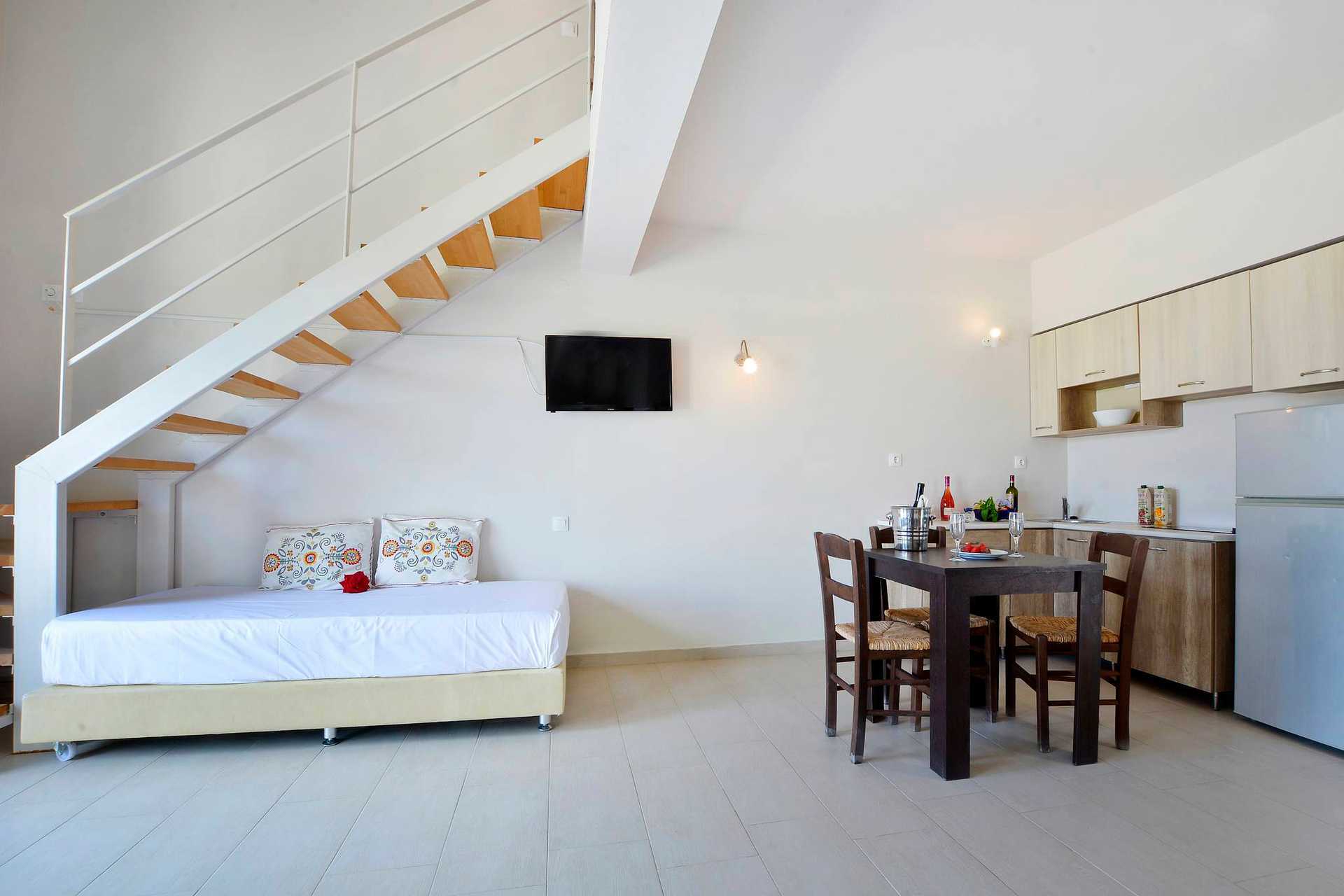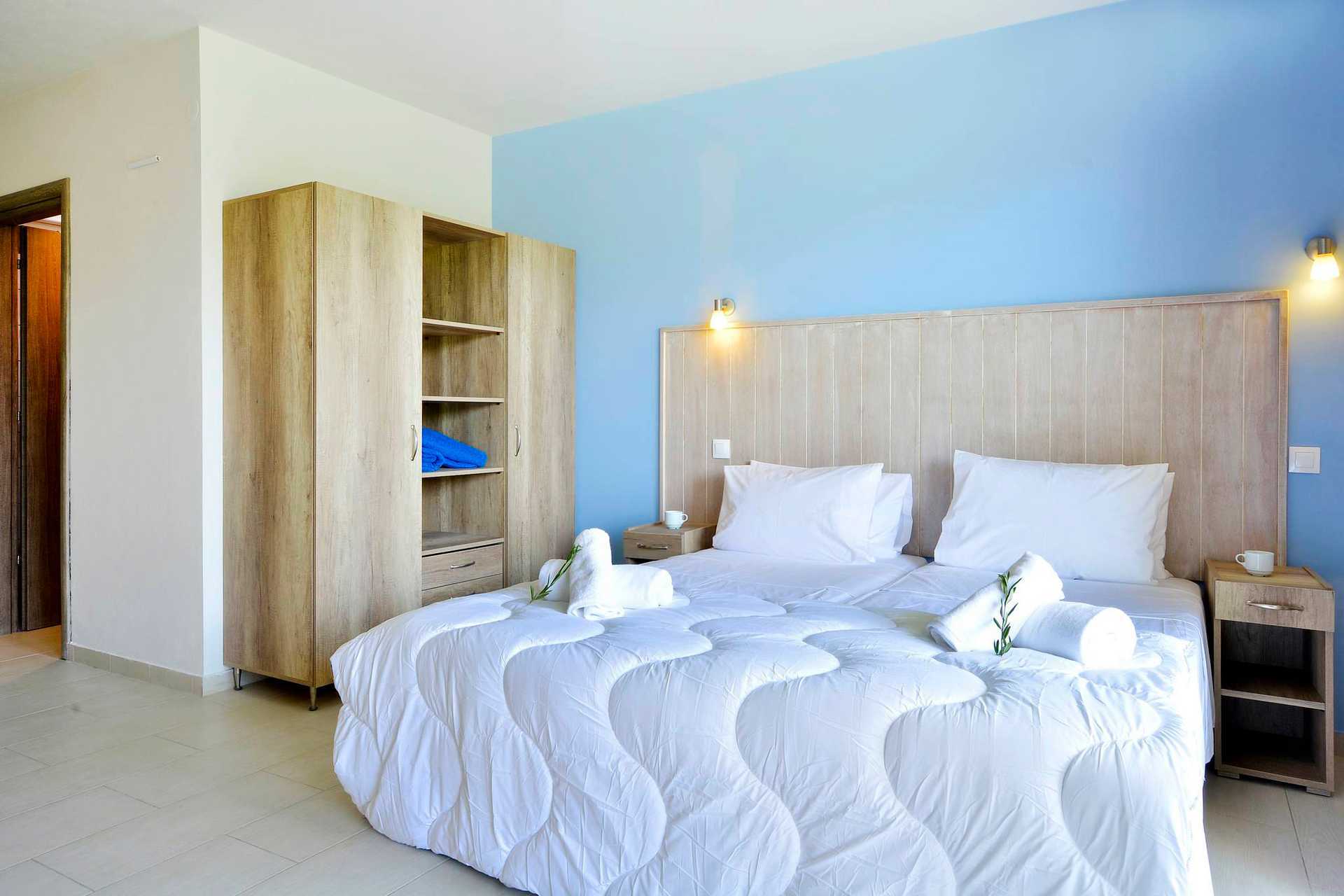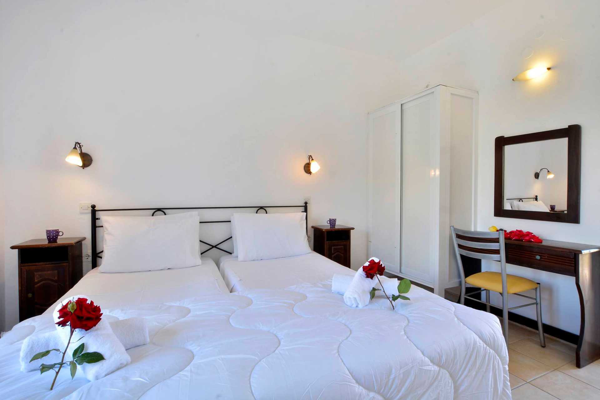 Kaksio parvekkeella tai maaparvekkeella. Makuuhuone ja yhdistetty olohuone ja minikeittiö. Kaksi yhden hengen sänkyä. Mahdollisuus lisävuoteisiin kahteen erilliseen sänkyyn tai vuodesohvaan. Minikeittiössä keittolevyt, jääkaappi, vedenkeitin, kahvinkeitin ja yksinkertainen keittiövarustus. Ruokailutila on ulkotilassa. Maksuton wifi. Ilmastointi ja tallelokero lisämaksusta. Tv kansainvälisillä kanavilla. Hiustenkuivain. Kylpyamme tai suihku ja wc. Siivous 6 krt/viikko.