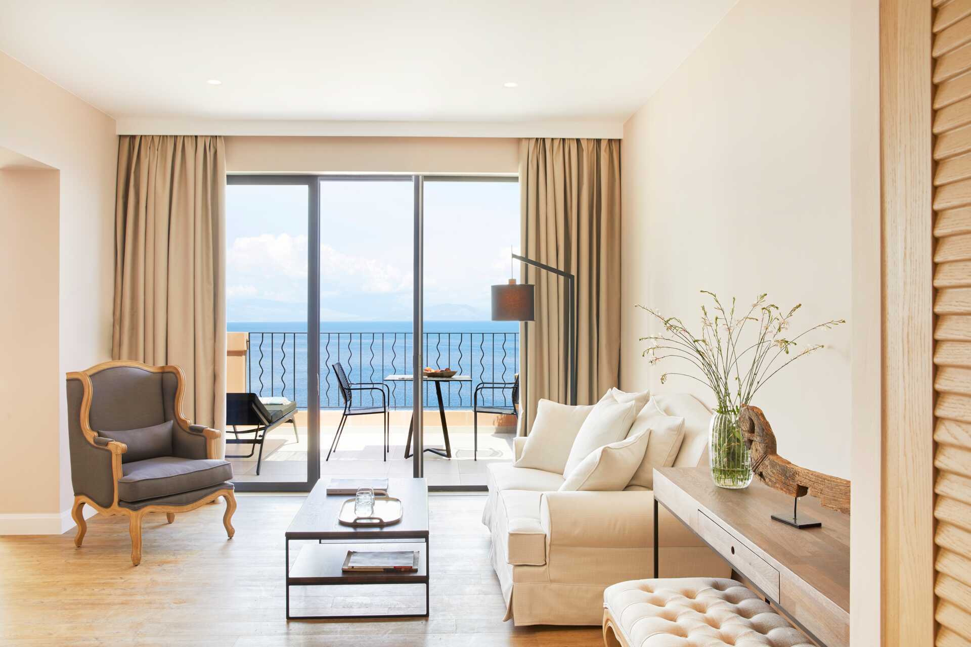 Deluxe juniorsviitit, parveke tai terassi ja merinäköala. Terassilla on oma poreallas ja aurinkotuolit. Huoneessa on oleskelualue, jossa on sohva. Parivuode tai kaksi yhden hengen sänkyä. Maksuton wifi, ilmastointi ja tallelokero. Minibaari. Vedenkeitin, Nespresso-keitin sekä kahvia ja teetä. Tv kansainvälisillä kanavilla. Hiustenkuivain. Kylpyhuoneessa suihku ja wc. Siivous 7 krt/viikko.