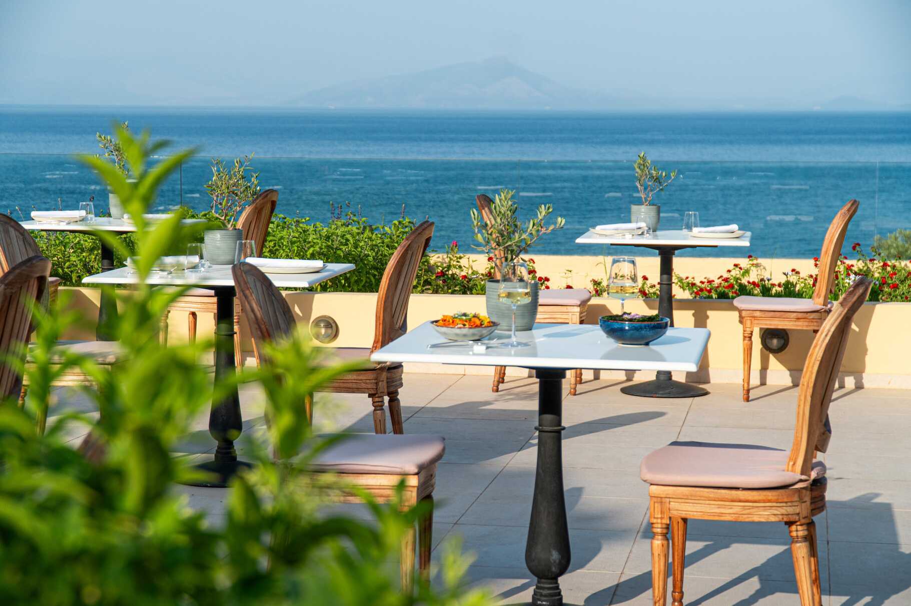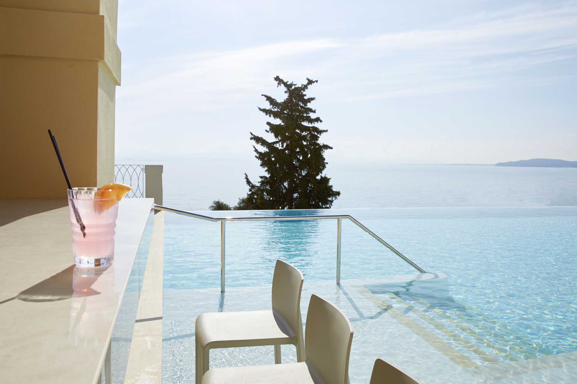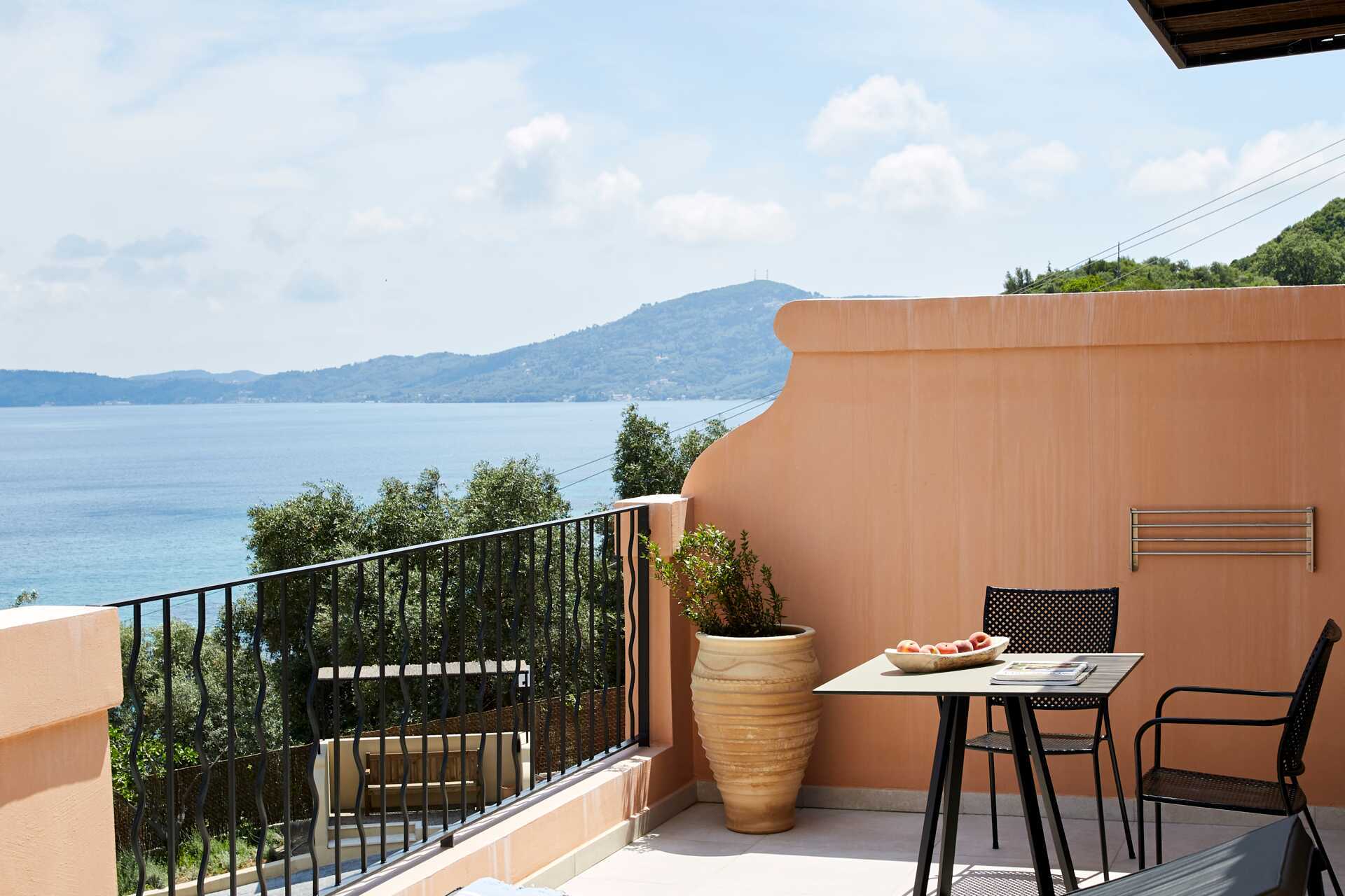 Junior suite deluxe, jossa on parveke tai terassi merinäköalalla. Ulkotilassa oma poreallas ja aurinkotuoleja. Huoneessa on olohuone, jossa on sohva. Parivuode tai kaksi erillistä vuodetta. Maksuton wifi, ilmastointi ja tallelokero. Minibaari. Vedenkeitin, kahvia ja teetä. Nespresso-keitin. Tv kansainvälisillä kanavilla. Hiustenkuivain. Kylpyhuoneessa suihku ja wc. Siivous 7 krt/viikko.