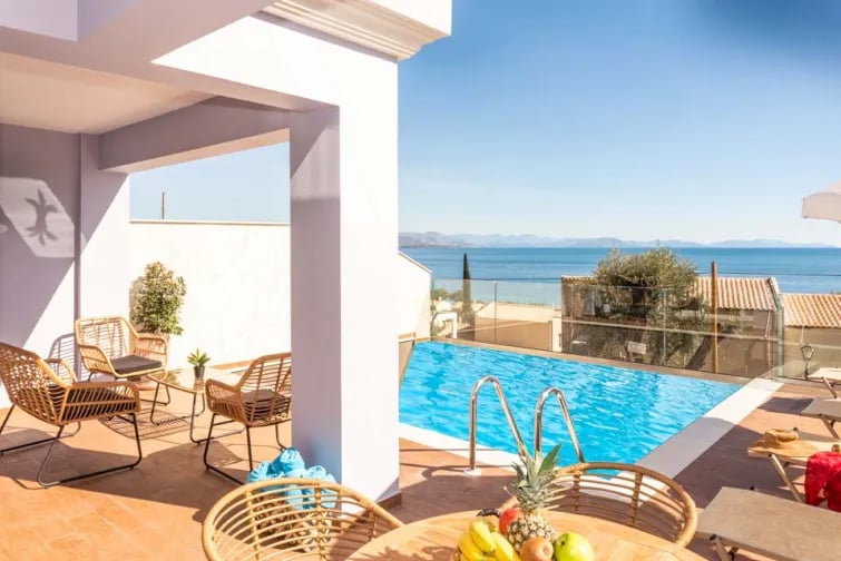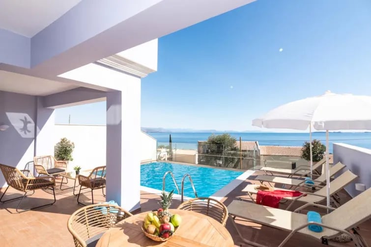 Tämä tilava ja moderni huvila sijaitsee Barbatin rannan yläpuolella, joka on yksi Korfun saaren kauneimmista rannoista. Se ei ole vain kadehdittavalla paikalla, vaan se on myös sisustettu korkeimpien standardien mukaisesti, erityisesti modernin sisustuksen ja ylellisen viimeistelyn osalta.