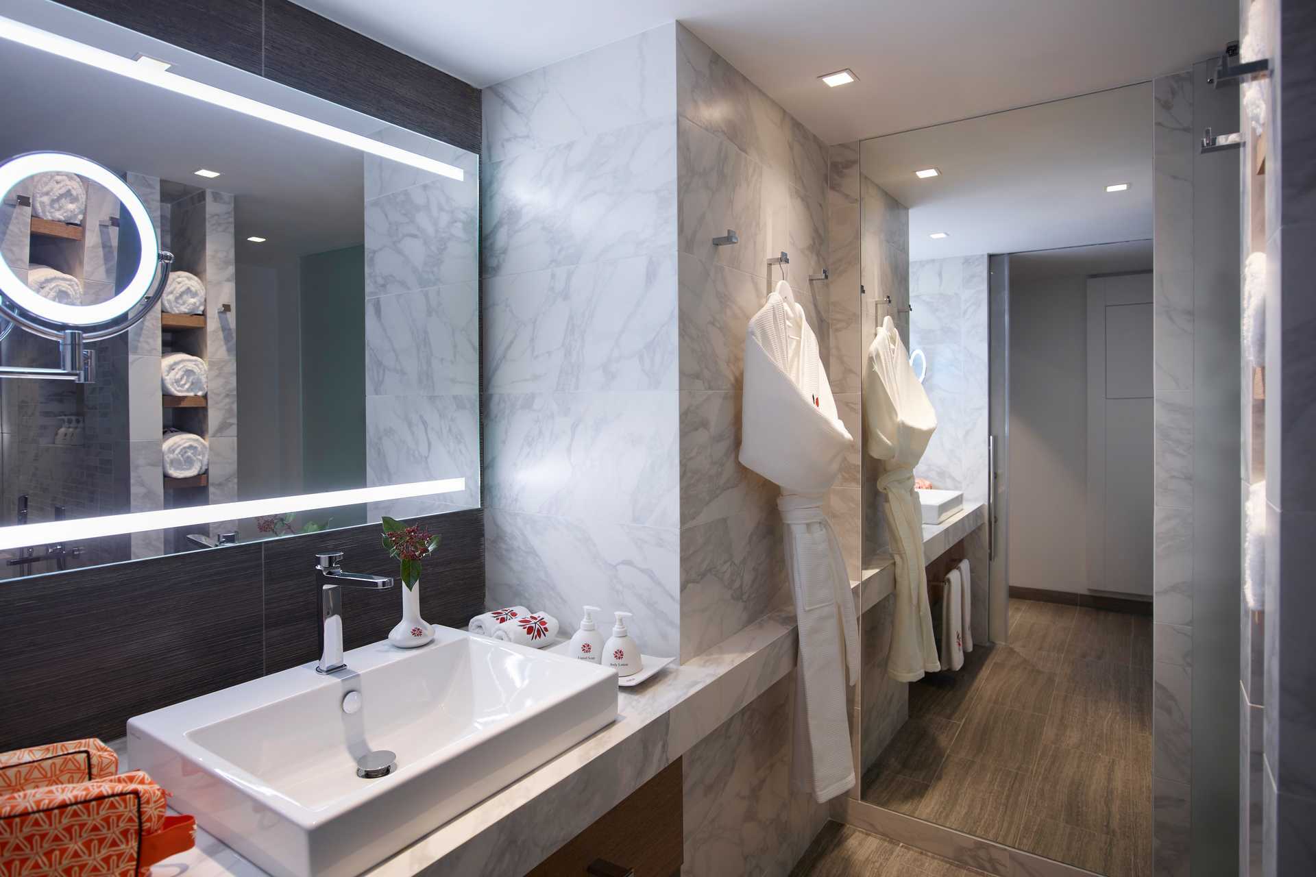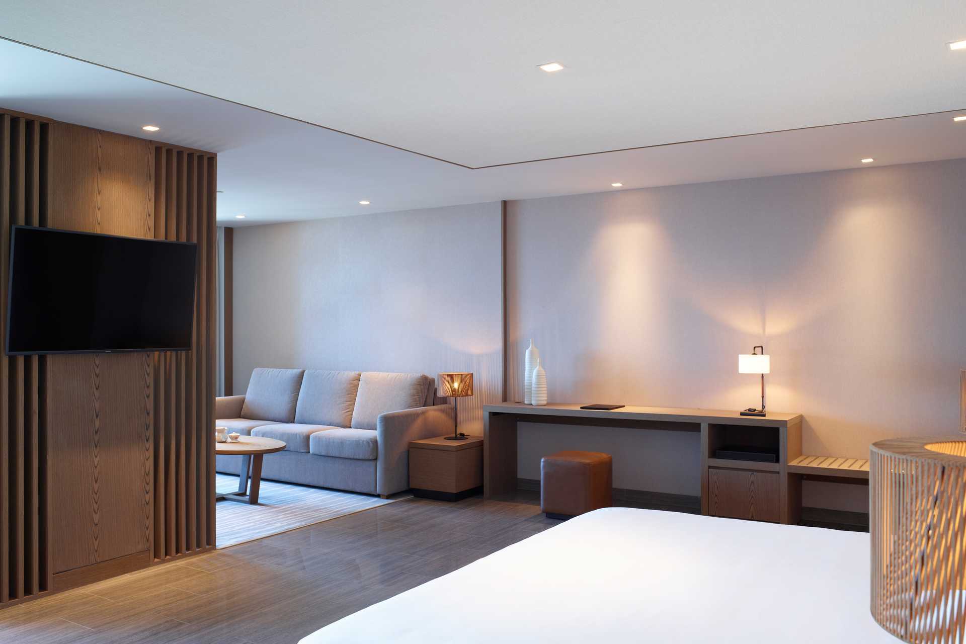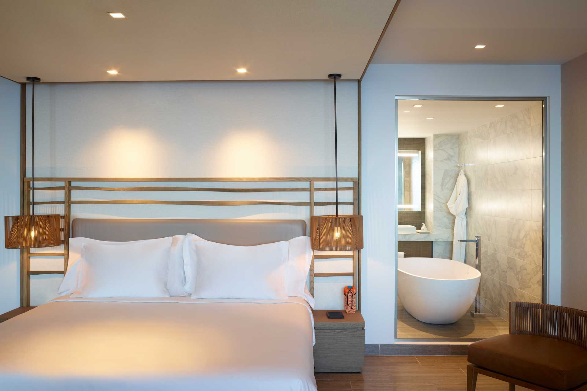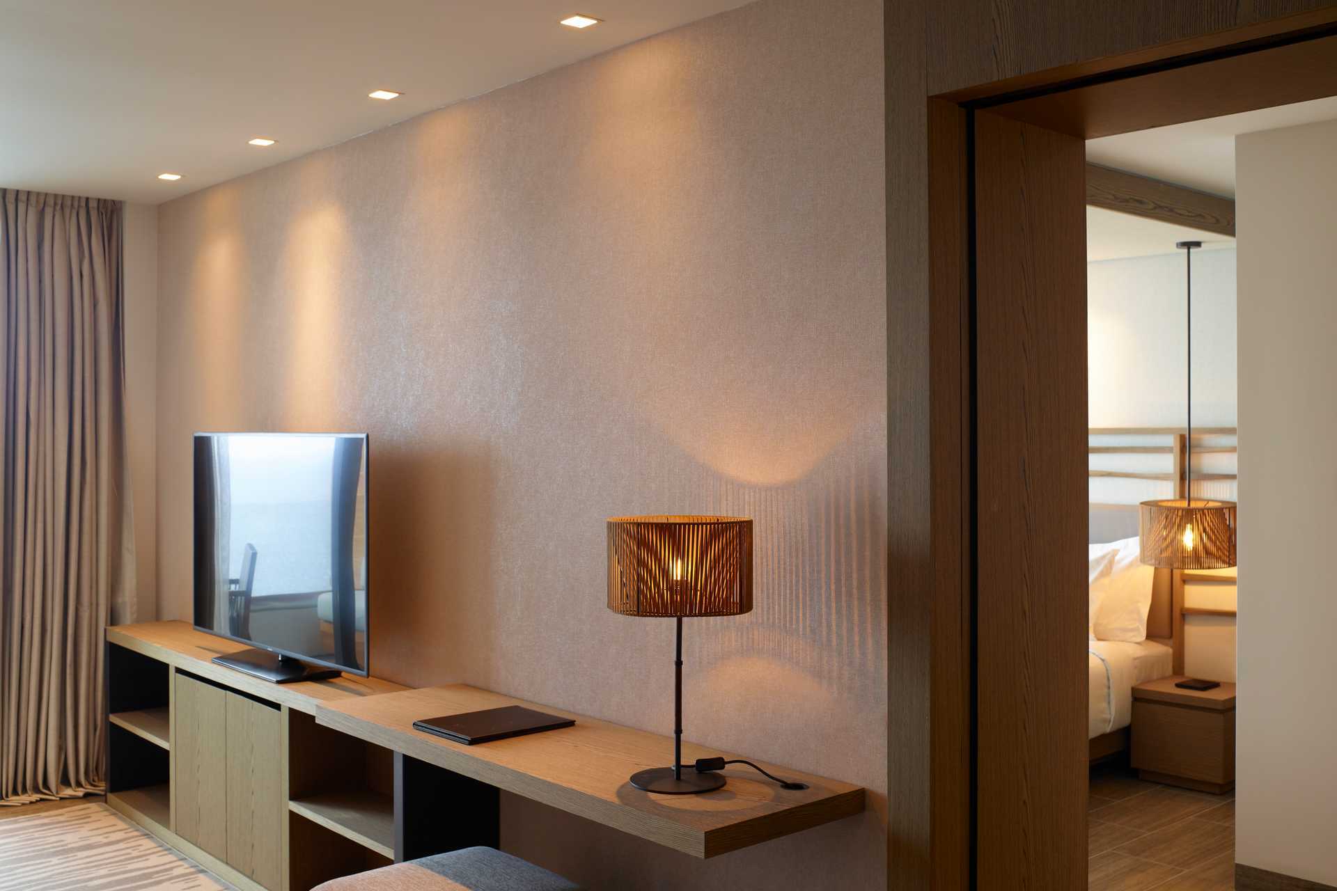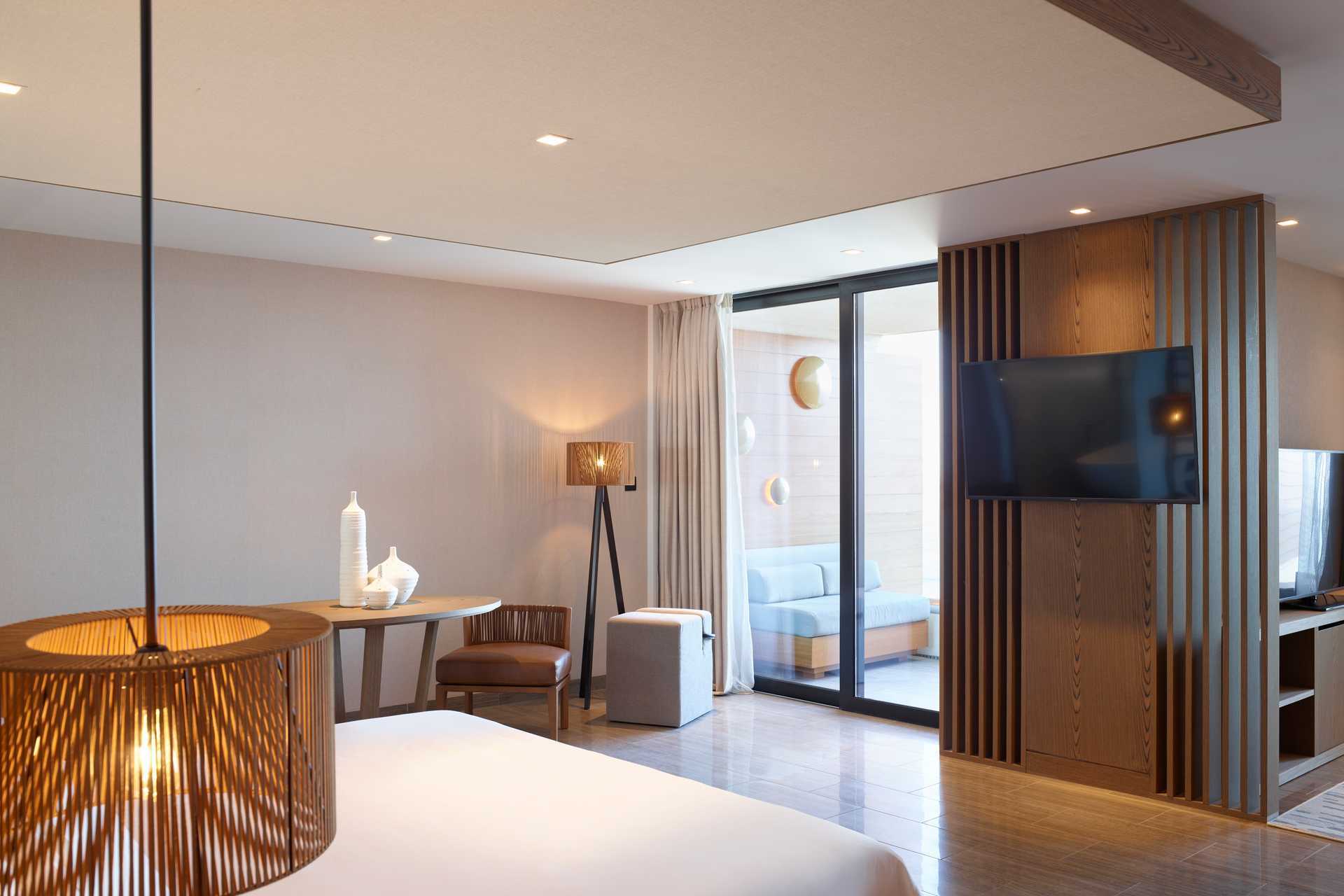 Perhehuone, parvekkeella merinäköalalla. Makuuhuone ja erillinen olohuone. Huoneiden välillä liukuovi. Parivuode. Lisävuodemahdollisuus vuodesohvasta. Maksuton ilmastointi, wifi ja tallelokero. Minibaari. Nespresso-kahvinkeitin - kuusi kapselia per päivä maksutta. Tv kansainvälisillä kanavilla. Kylpytakit ja tossut. Kylpytuotteita. Avoin kylpyhuoneen pohjaratkaisu, kylpyammeella ja pesualtaalla. Hiustenkuivain. Suihku ja wc. Siivous 7 krt/viikko. Alle 2-vuotiaat lapset lasketaan lisävuoteessa majoittuviksi henkilöiksi.