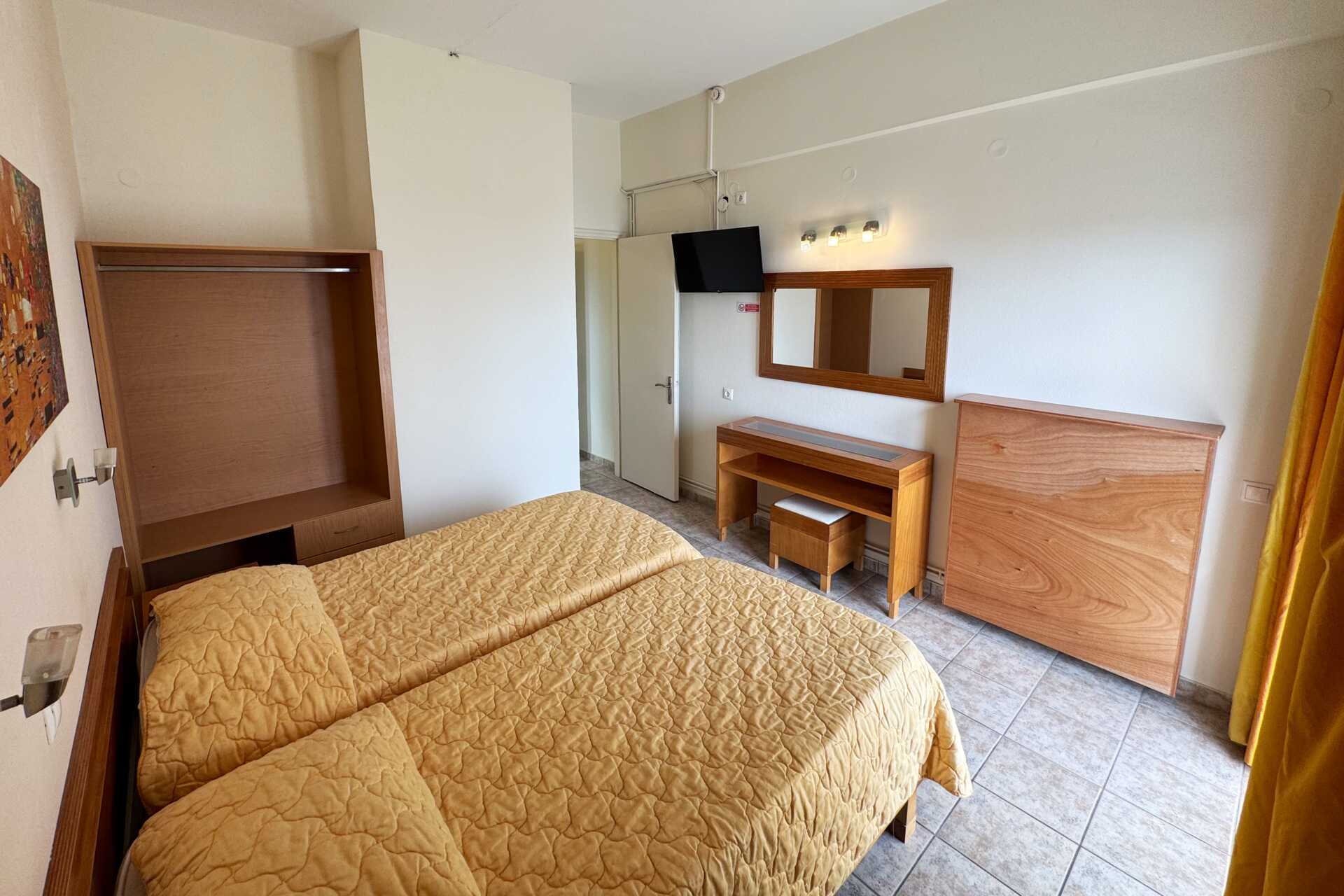 Kahden hengen huone parvekkeella. Kaksi yhden hengen vuodetta. Lisävuodemahdollisuus lisävuoteessa. Maksuton tallelokero. Ilmastointi lisämaksusta. Jääkaappi. Tv kansainvälisillä kanavilla. Hiustenkuivain. Suihku ja wc. Siivous 6 krt/viikko. Alle 2-vuotiaat lapset lasketaan lisävuoteella majoittuviksi henkilöiksi.