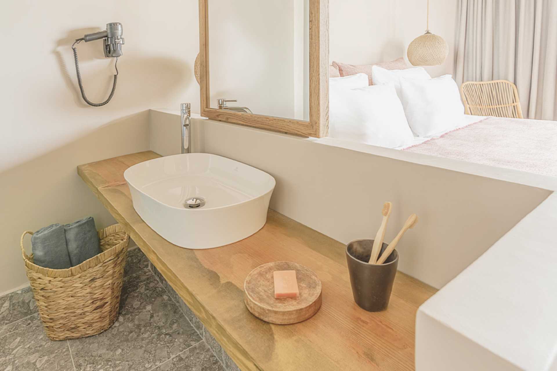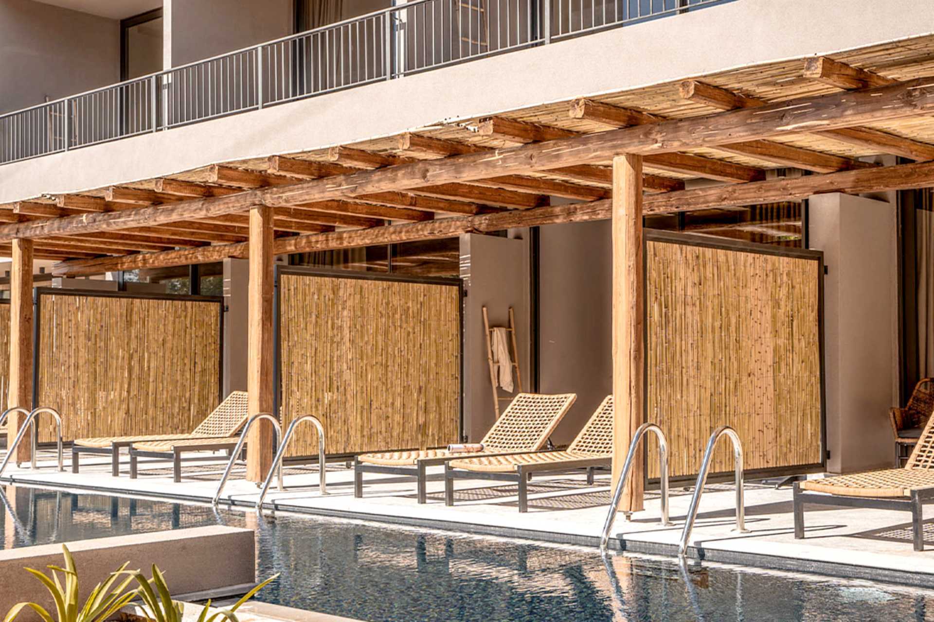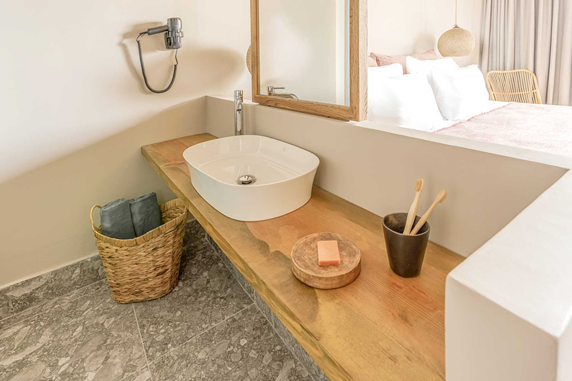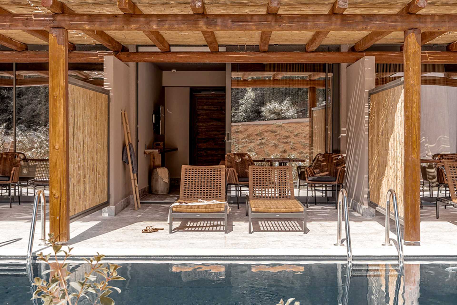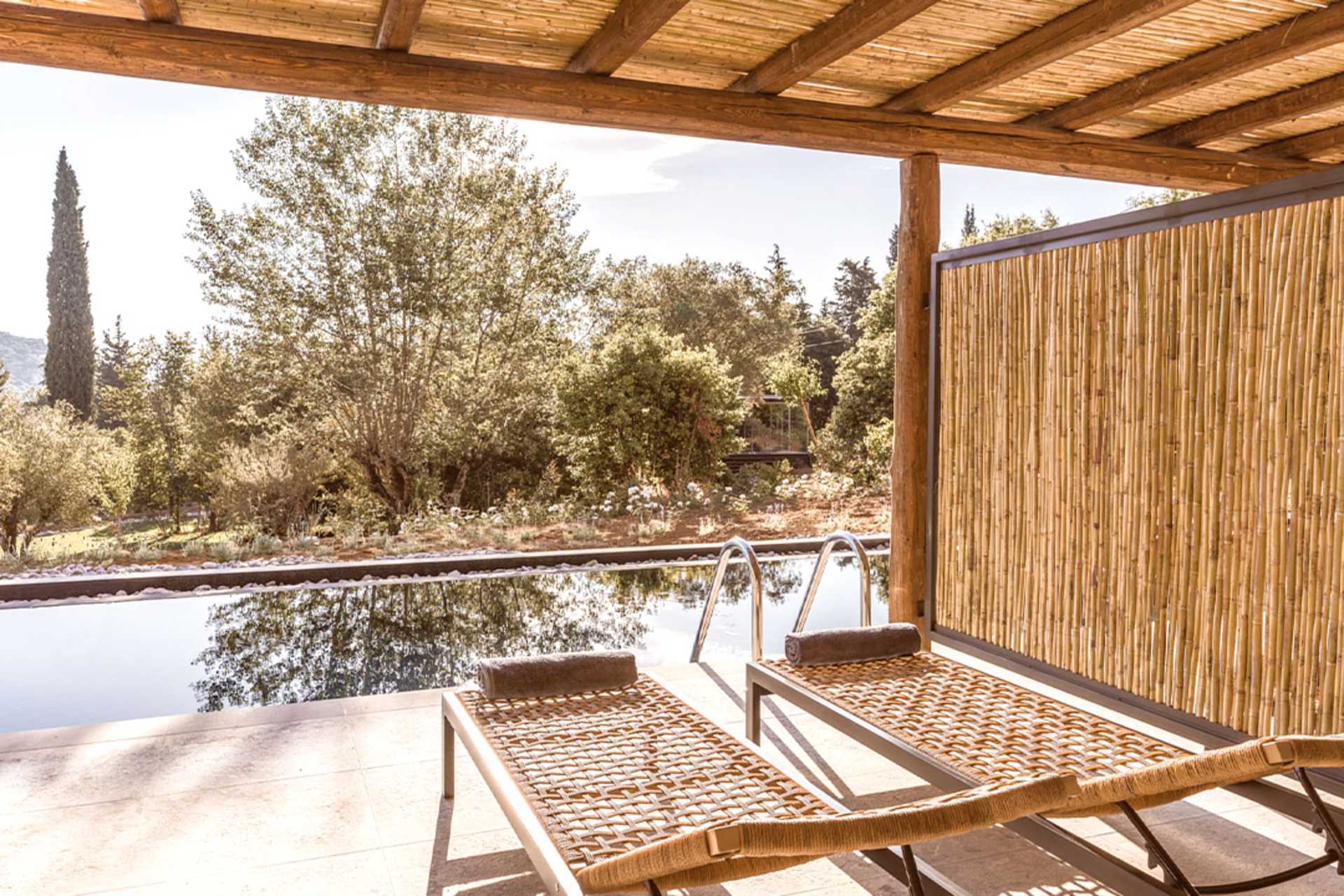 Kahden hengen huoneita, joissa on maaterassi ja pääsy jaetulle altaalle. Terassilla on tuoleja ja pöytä sekä kaksi aurinkotuolia. Parivuode tai kaksi yhden hengen vuodetta. Jääkaappi. Vesipullo jääkaapissa - täytetään päivittäin. Vedenkeitin, kahvia ja teetä. Maksuton wifi, ilmastointi ja tallelokero. Tv kansainvälisillä kanavilla. Kylpytakit ja tossut. Hiustenkuivain. Avoin pohjaratkaisu kylpyhuoneeseen, huurrelasi suihkuun ja wc:hen. Siivous 7 krt/viikko.