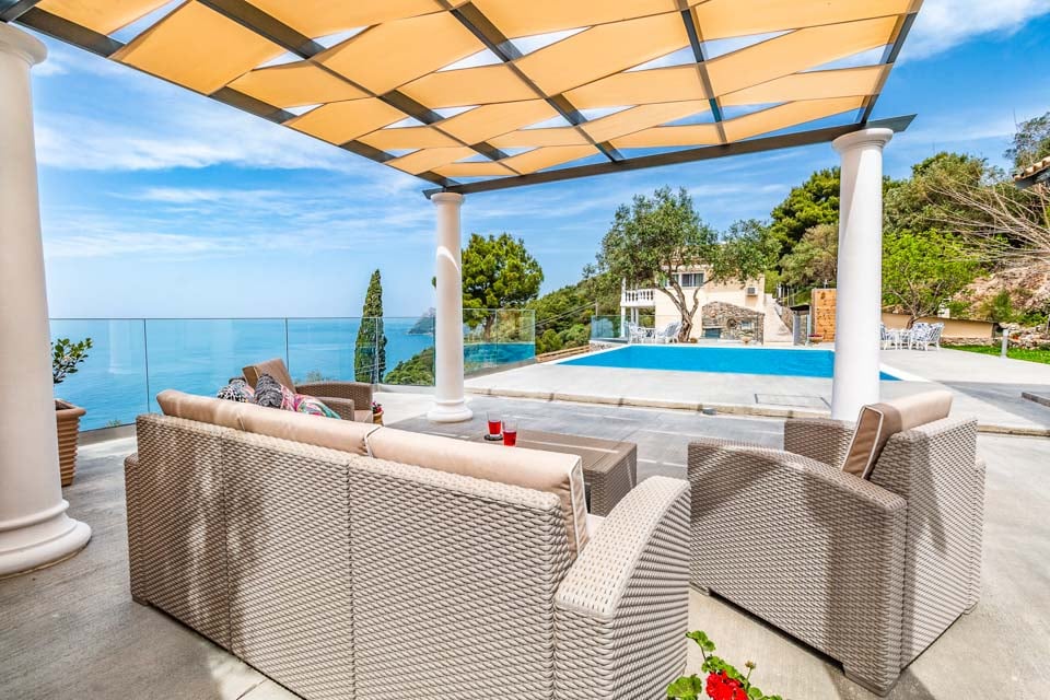 Kauniilla Kreikan smaragdinvihreällä saarella Välimerellä sijaitseva upea huvila tarjoaa ainutlaatuisen pakopaikan, joka ilmentää ylellistä elämää. Luonnon, rehevien vihreiden kukkuloiden ja maaseudun ympäröimä huvila sijaitsee kadehdittavalla korkealla paikalla, josta on näköala Joonianmeren rannikolle. Täydellinen pakopaikka perheelle ja ystäville, jotka etsivät ylellistä lomapaikkaa arvokkaiden muistojen luomiseen. Tässä huvilassa on tilaa jopa 8 hengelle, ja siellä on kaikki tarvitsemasi kodin mukavuudet. Sisältä tämä huvila on aivan yhtä vaikuttava. Tässä huvilassa on neljä tilavaa makuuhuonetta, täysin varusteltu keittiö, tilava olohuone, työpiste ja kodinhoitohuone, joten siellä on kaikki mitä tarvitset rentouttavaan ja vaivattomaan lomaan auringonpaisteessa.