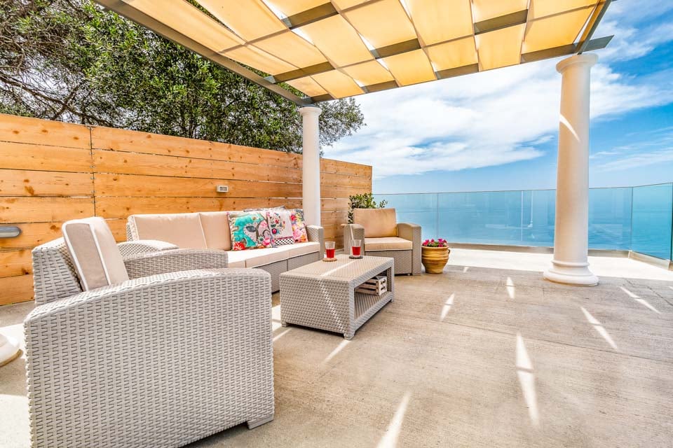 Ja juuri tämän huvilan upea ulkotila vie hengityksesi. Upealla infinity-altaalla, josta on esteettömät merinäköalat ja auringonlaskut, tämä tila on ihanteellinen maailman menon tarkkailuun, samalla kun nipistelet itseäsi ympäristöstäsi. Kiinteistössä on myös tilavat terassit, täydellisesti hoidetut nurmikot ja Välimeren inspiroimat kivityöt, jotka parantavat entisestään tämän maagisen huvilan estetiikkaa. Tarjolla on myös mukavia aurinkotuoleja, varjoisa rentouttava oleskelualue, grilli, ulkoterassi lasten keinuineen ja varjoisa ruokailutila, joka sopii erinomaisesti ulkoilmaruokailuun.