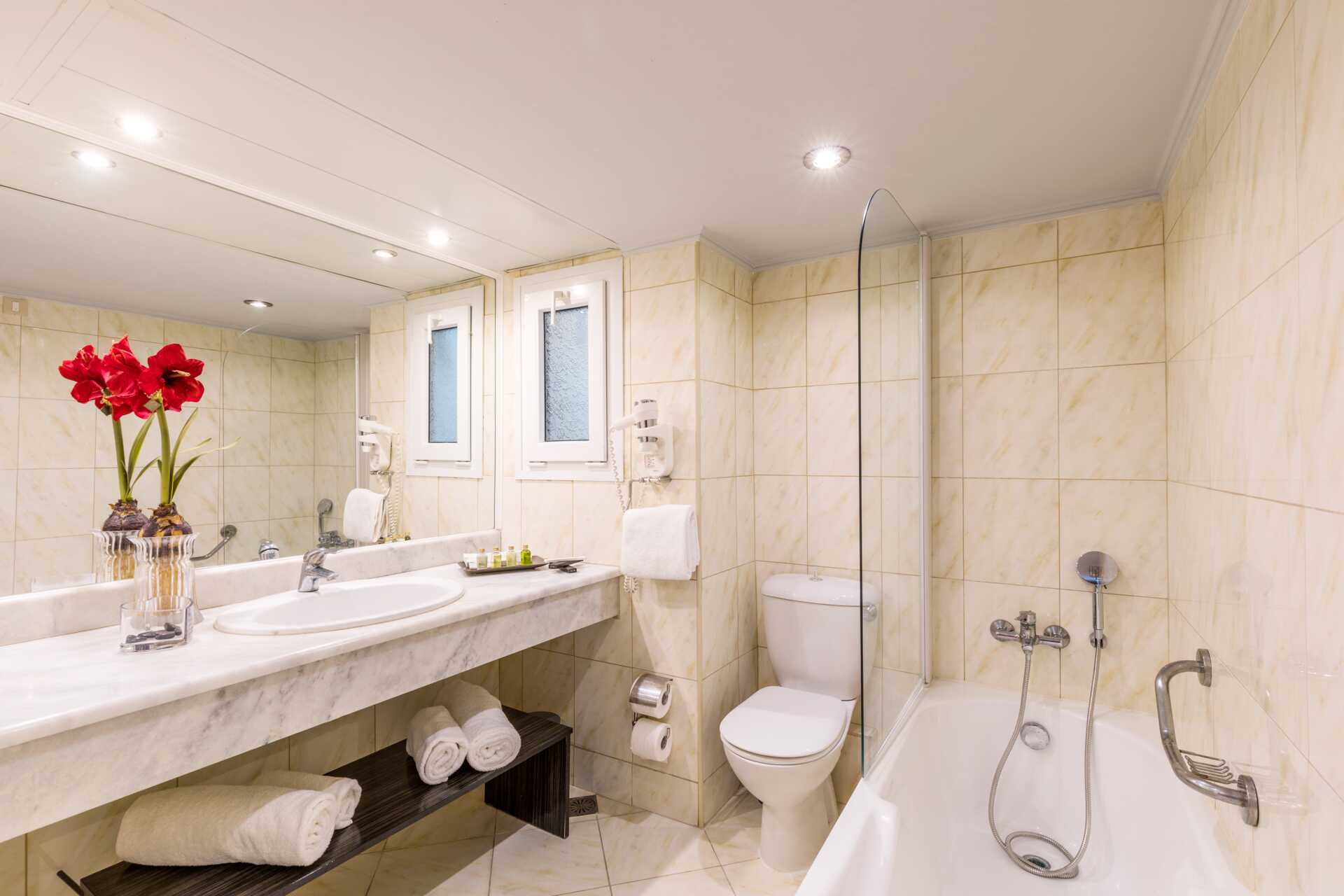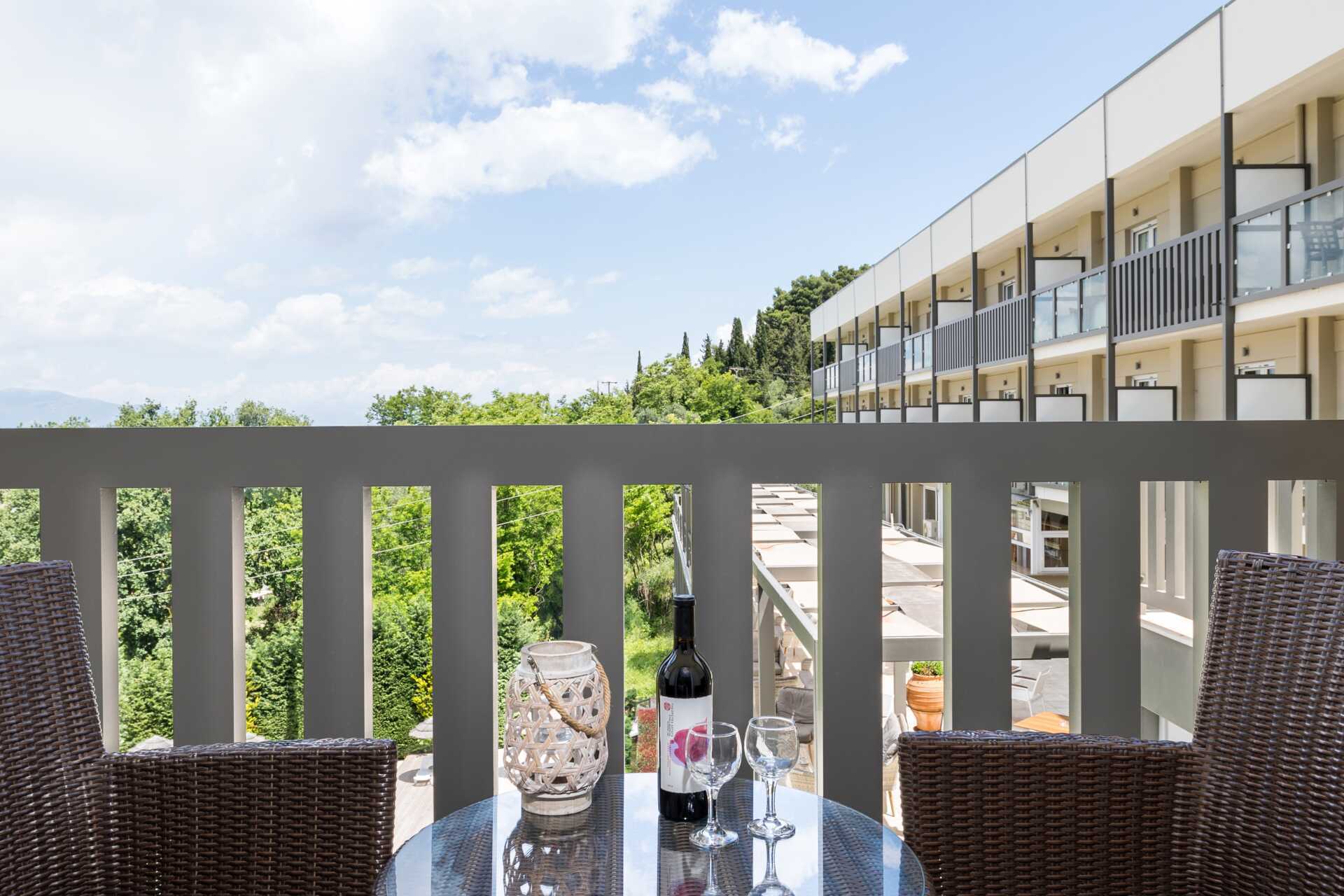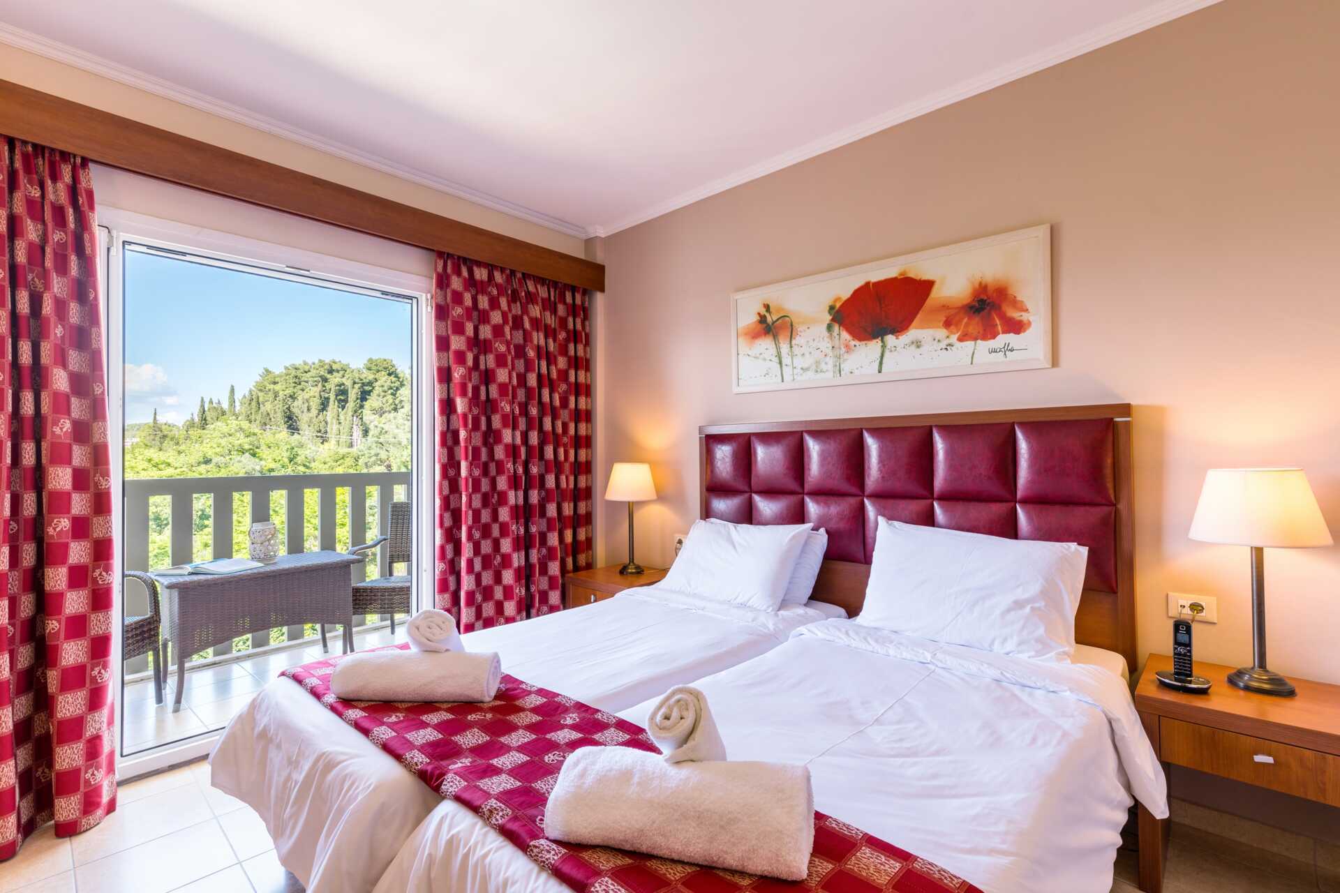 Perhehuone, parvekkeella ja näkymällä uima-altaalle. Kaksi yhden hengen sänkyä. Lisävuodemahdollisuus kahdesta yhden hengen sängystä. Maksuton wifi, ilmastointi ja tallelokero. Jääkaappi. Tv kansainvälisillä kanavilla. Hiustenkuivain. Kylpyamme ja wc. Siivous 7 krt/viikko. Alle 2-vuotiaat lapset lasketaan lisävuoteella majoittuviksi henkilöiksi.