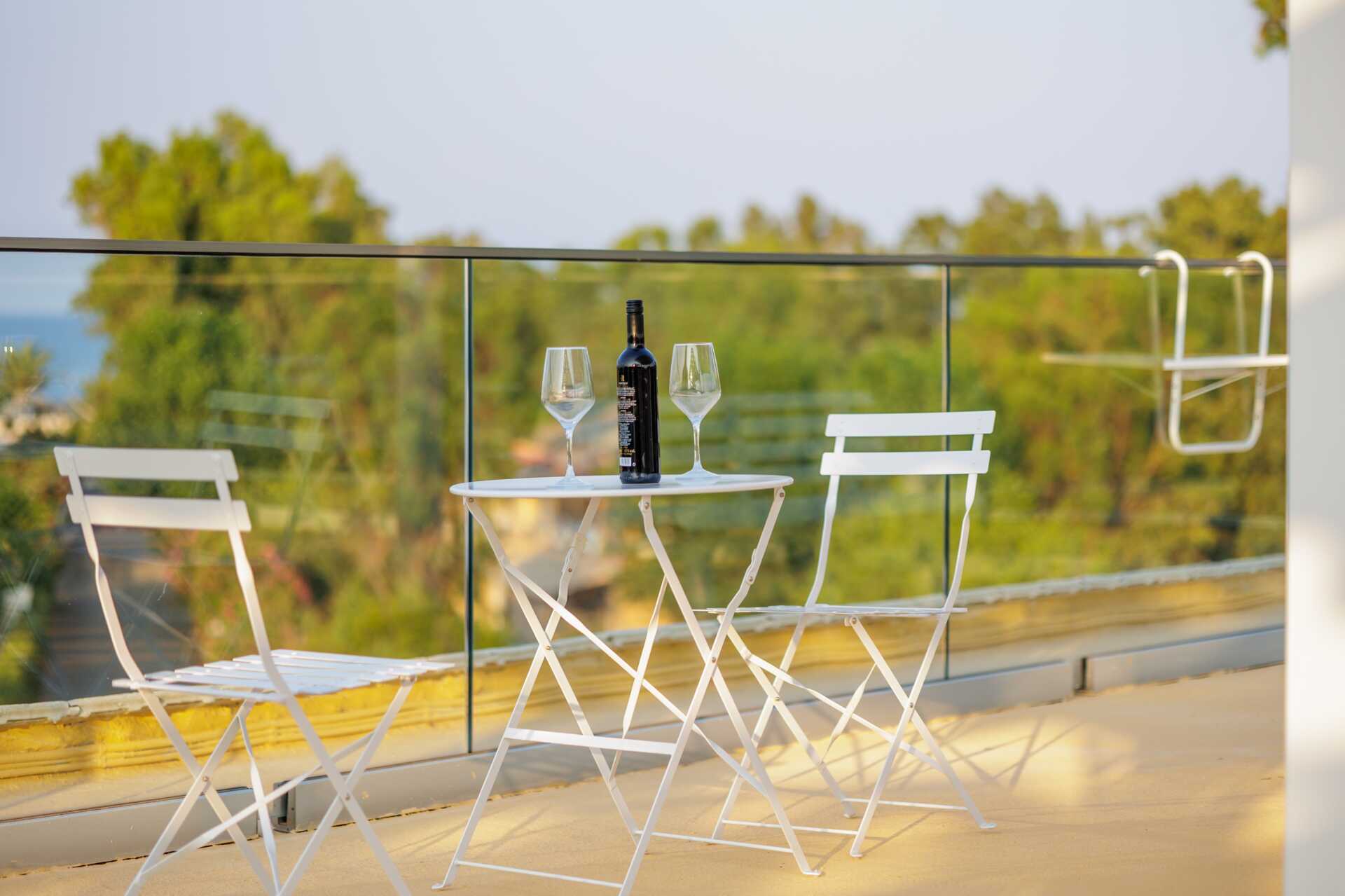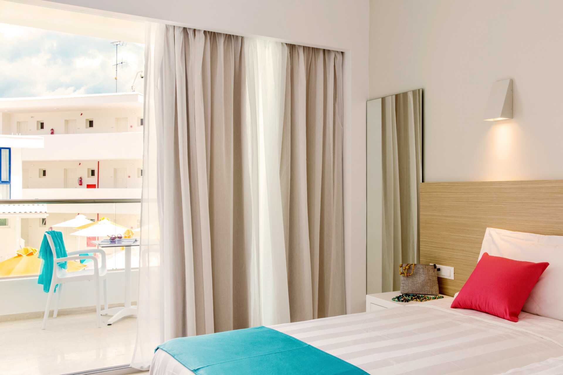 Kahden hengen huone parvekkeella tai terassilla. Parivuode tai kaksi yhden hengen sänkyä. Maksuton wifi, ilmastointi ja tallelokero. Jääkaappi. Tv kansainvälisillä kanavilla. Hiustenkuivain. Kylpyhuoneessa suihku ja wc. Siivous 6 krt/viikko. Alle 2-vuotiaat lapset lasketaan lisävuoteella majoittuviksi henkilöiksi.