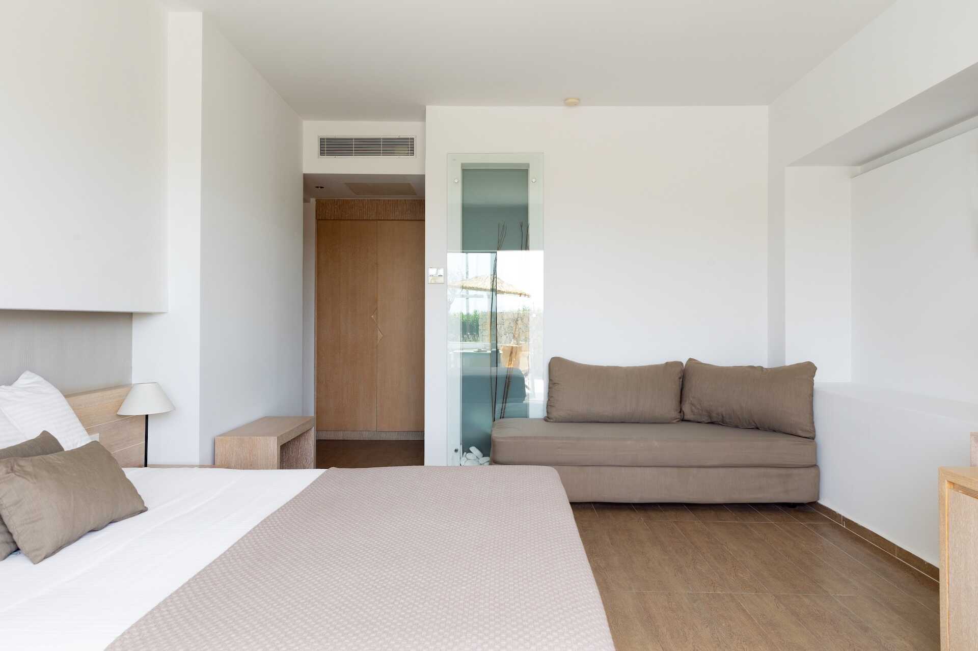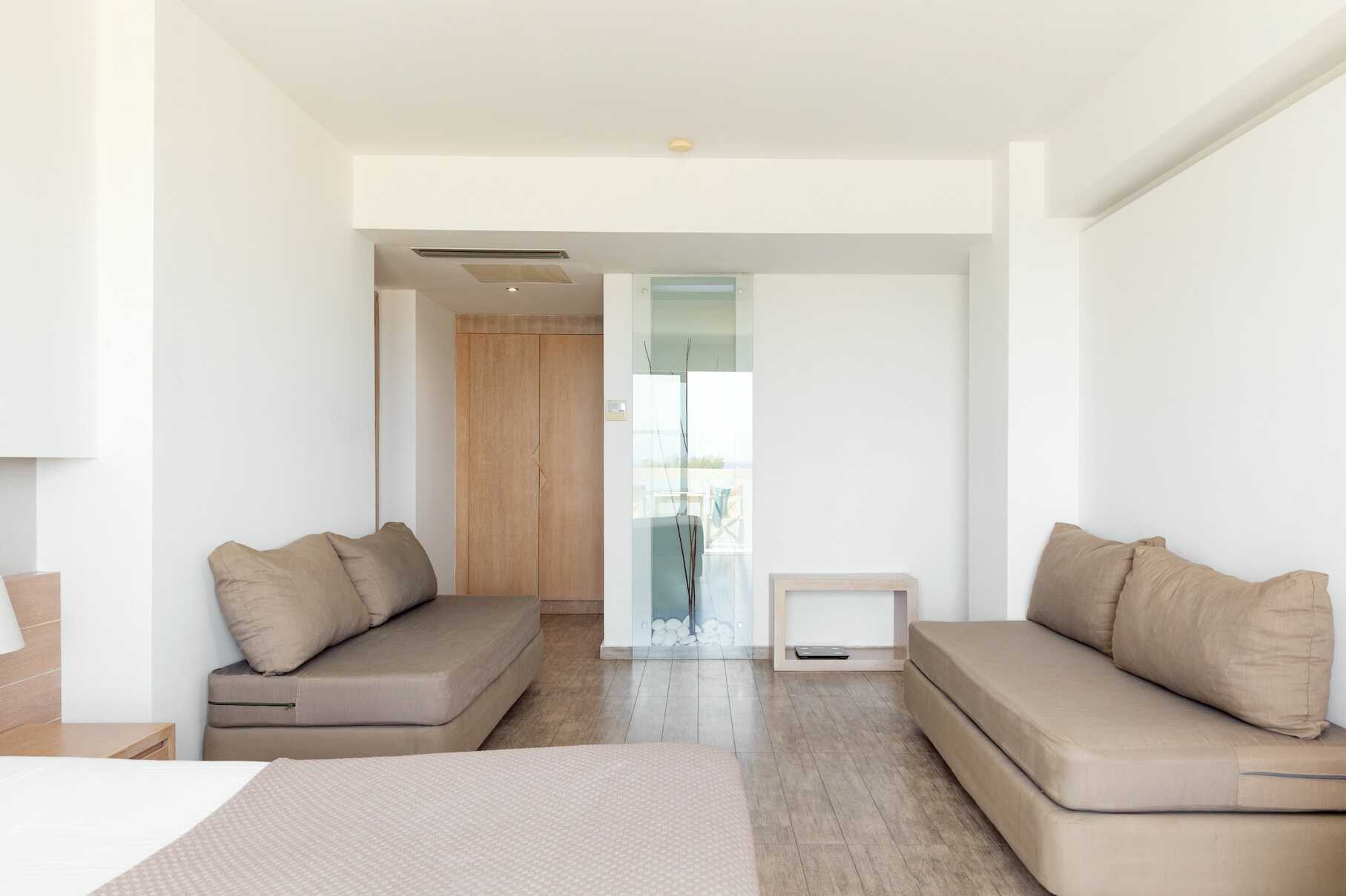 Perhehuoneita parvekkeella tai terassilla. Kaksi erillistä vuodetta. Mahdollisuus lisävuoteeseen kahdelle vuodesohvasta. Kahvin ja teen keittomahdollisuus. Maksuton minibaari päivittäisellä täytöllä: vettä, viiniä, mehua, olutta ja virvoitusjuomia. Maksuton wifi, ilmastointi ja tallelokero. Tv satelliittikanavilla. Hiustenkuivain. Kylpyhuone, jossa amme tai suihku sekä wc. Siivous 7 krt/viikko. Tässä huonetyypissä alle 2-vuotiaat lapset sisältyvät huoneessa majoittuvien henkilöiden enimmäismäärään.