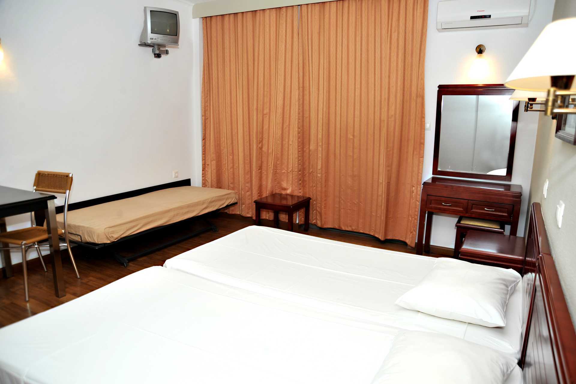 Yksiö parvekkeella tai maaparvekkeella. Yhdistetty makuuhuone ja minikeittiö. Parivuode tai kaksi yhden hengen sänkyä. Mahdollisuus lisävuoteeseen kokoontaitettavasta vuoteesta. Minikeittiö, jossa keittolevyt, jääkaappi, mikroaaltouuni, vedenkeitin, kahvinkeitin ja yksinkertaiset keittiövälineet. Maksuton wifi. Ilmastointi ja tallelokero lisämaksusta. Tv kansainvälisillä kanavilla. Hiustenkuivain. Kylpyhuoneessa suihku ja wc. Siivous 6 krt/viikko.