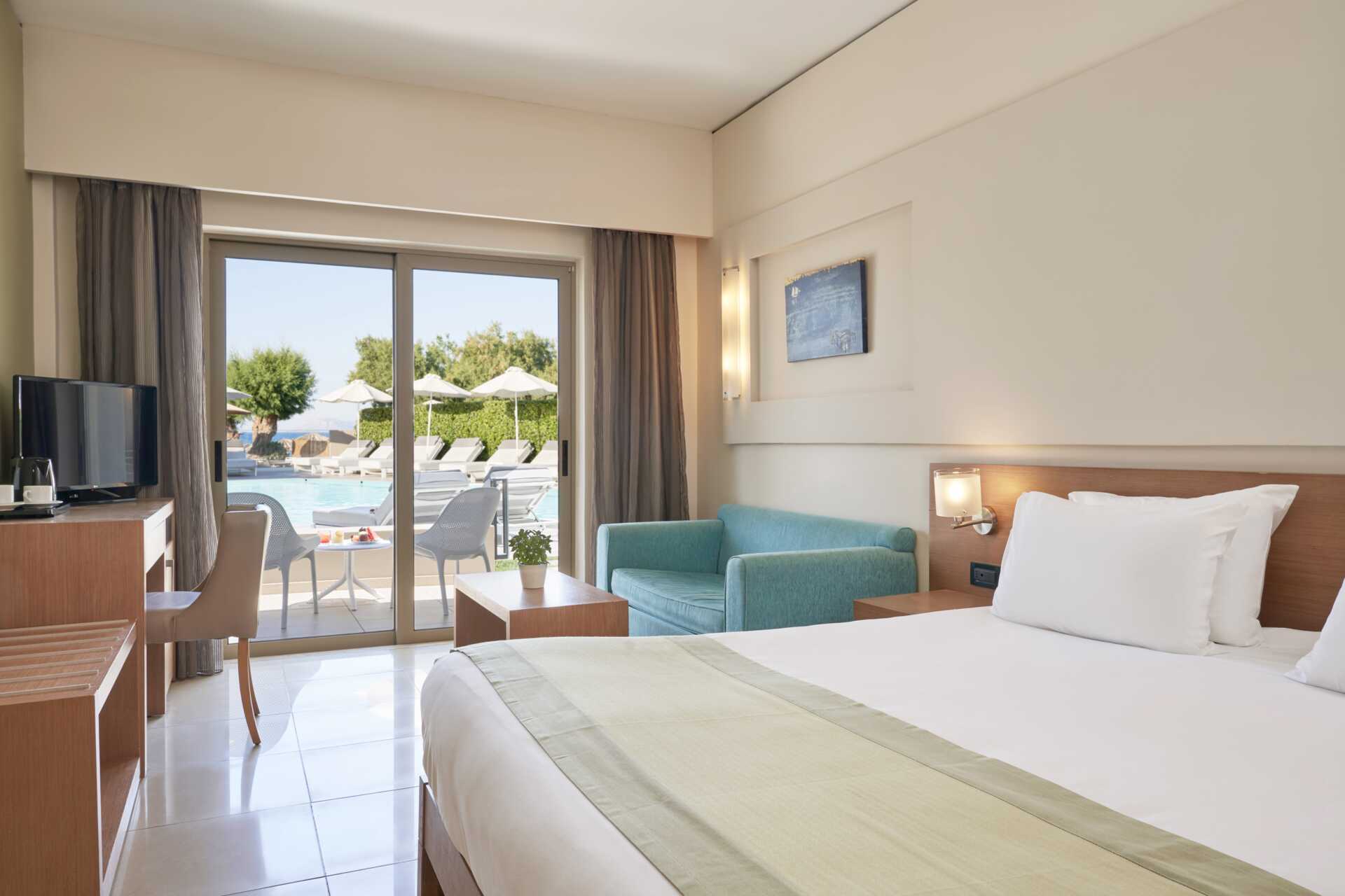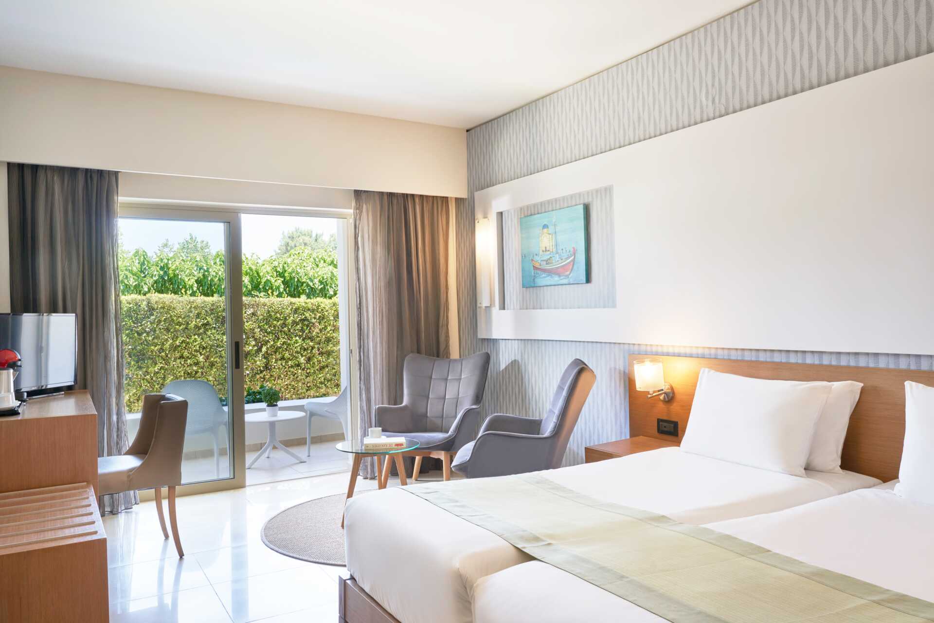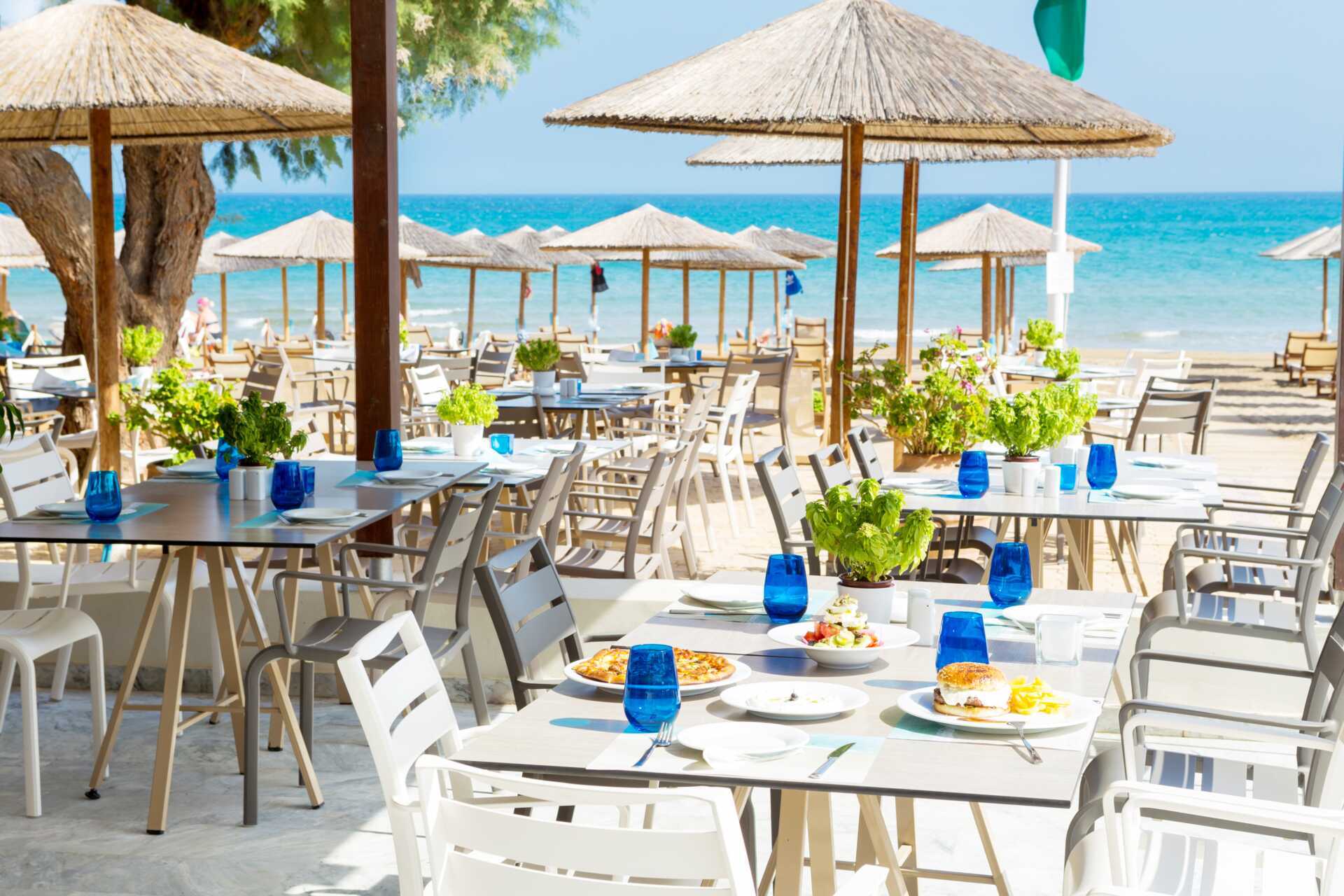 Aamiainen tarjoillaan hotellin aamiaishuoneessa ja lounas sekä päivällinen Yefsis-ravintolassa. Hotellissa on myös à la carte -ravintola, joka on avoinna lounas- ja illallisaikaan ja jossa voit maistella kreikkalaista ruokaa sekä kansainvälisiä ruokia. Pöytävaraus vaaditaan. Juomia, kevyitä aterioita ja jäätelöä tarjoillaan allasbaarissa ja välipalabaarissa päivän aikana. Siisti pukeutuminen, miehillä pitkät housut illallisella.