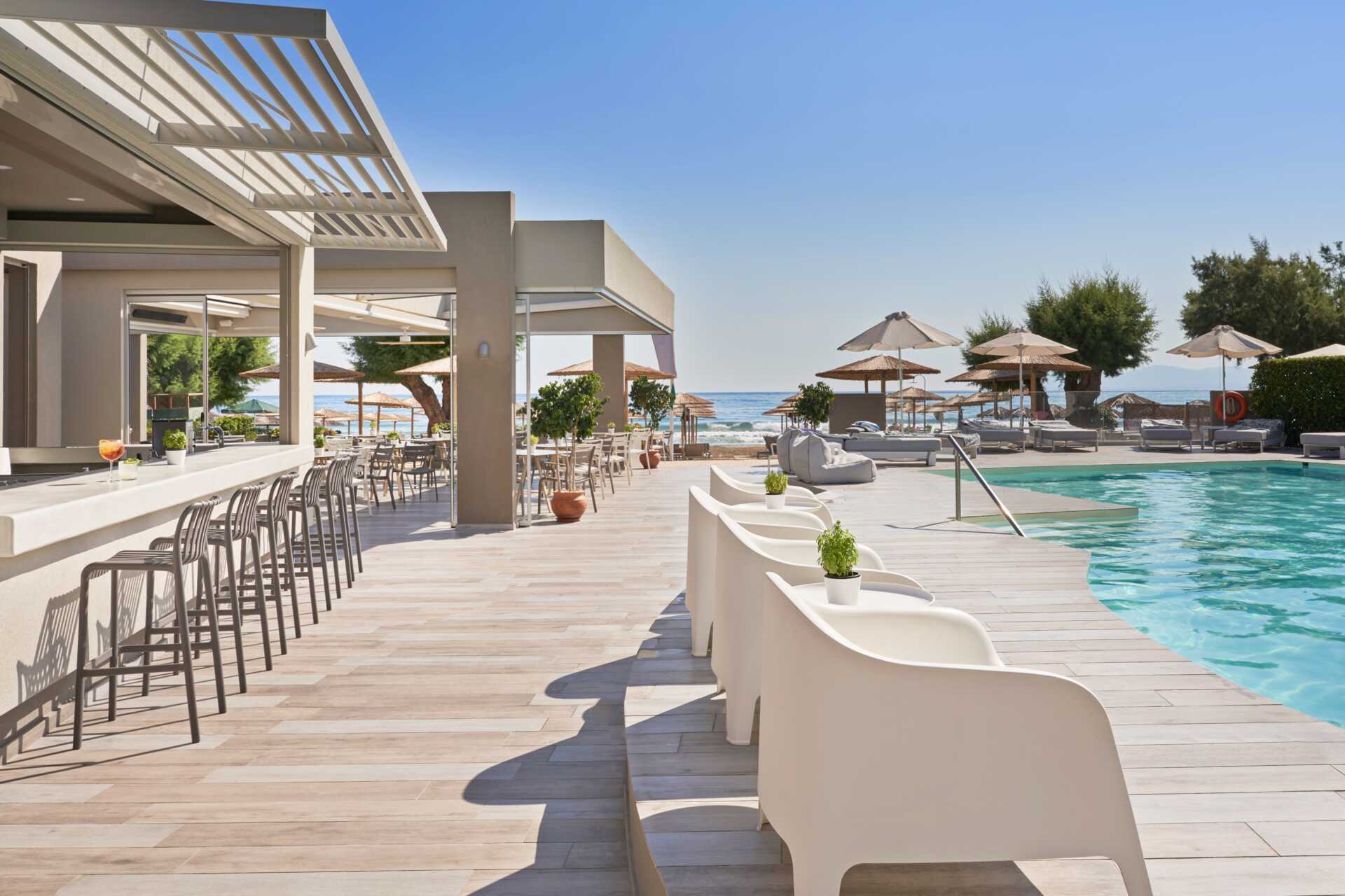 Atlantica Amalthia Beach tarjoaa kaksi uima-allasaluetta, joissa on kolme altaitaa, joista toinen on uima-allas rannalla ja toinen kahdella altaitalla rakennuksessa, jossa on deluxe-huoneet, suoraan kadun toisella puolella. Allasalueella ja rannalla on aurinkotuoleja ja -varjoja. Maksuttomat allaspyyhkeet. Aurinkotuolit ja -varjot rannalla maksua vastaan.