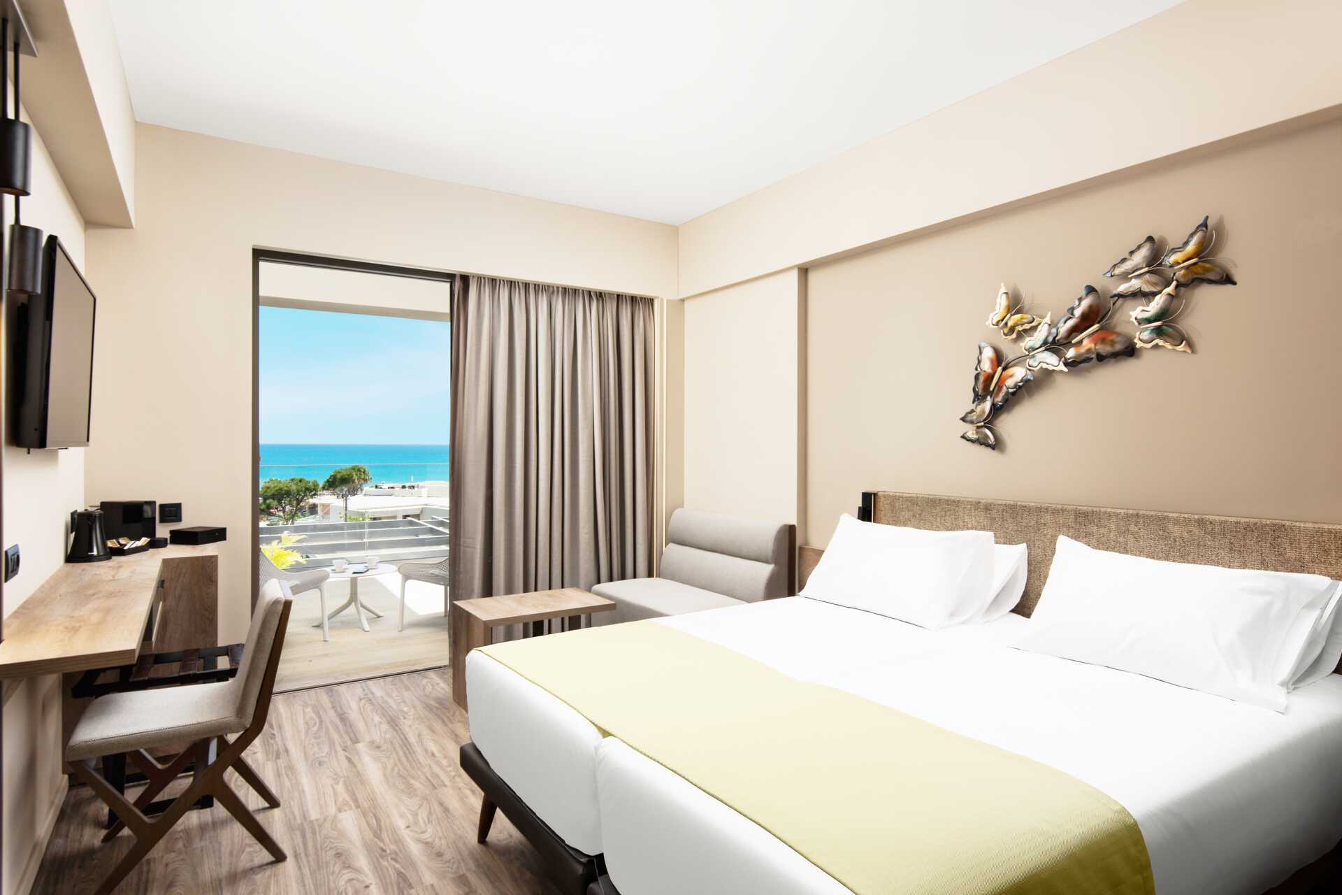 Superior-huone parvekkeella tai terassilla. Parivuode tai kaksi yhden hengen sänkyä. Maksuton wifi, ilmastointi ja tallelokero. Jääkaappi. Vedenkeitin, kahvia ja teetä. Tv kansainvälisillä kanavilla. Hiustenkuivain. Amme ja wc. Siivous 7 krt/viikko.