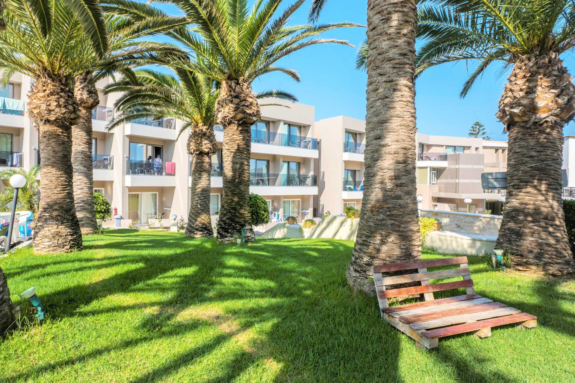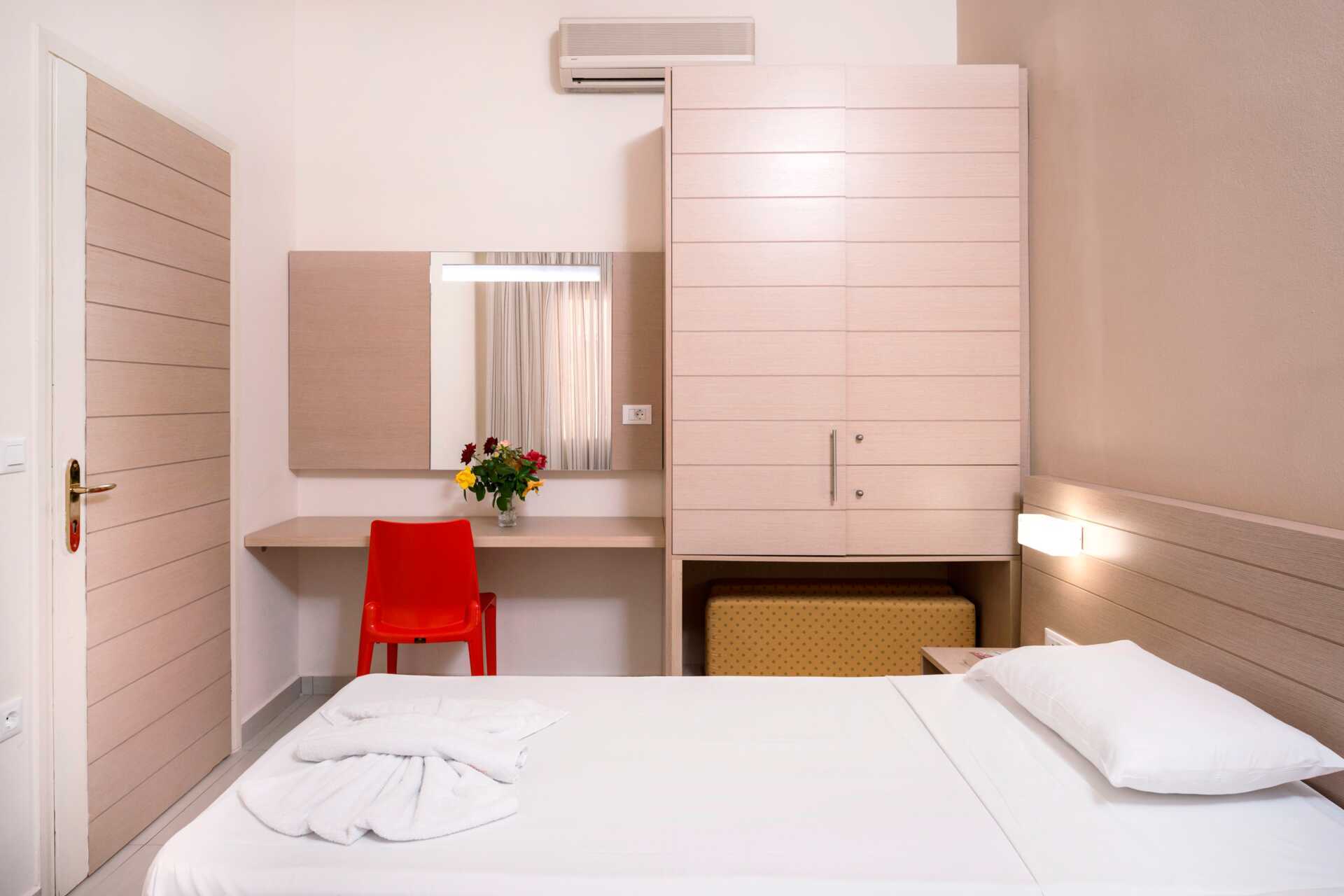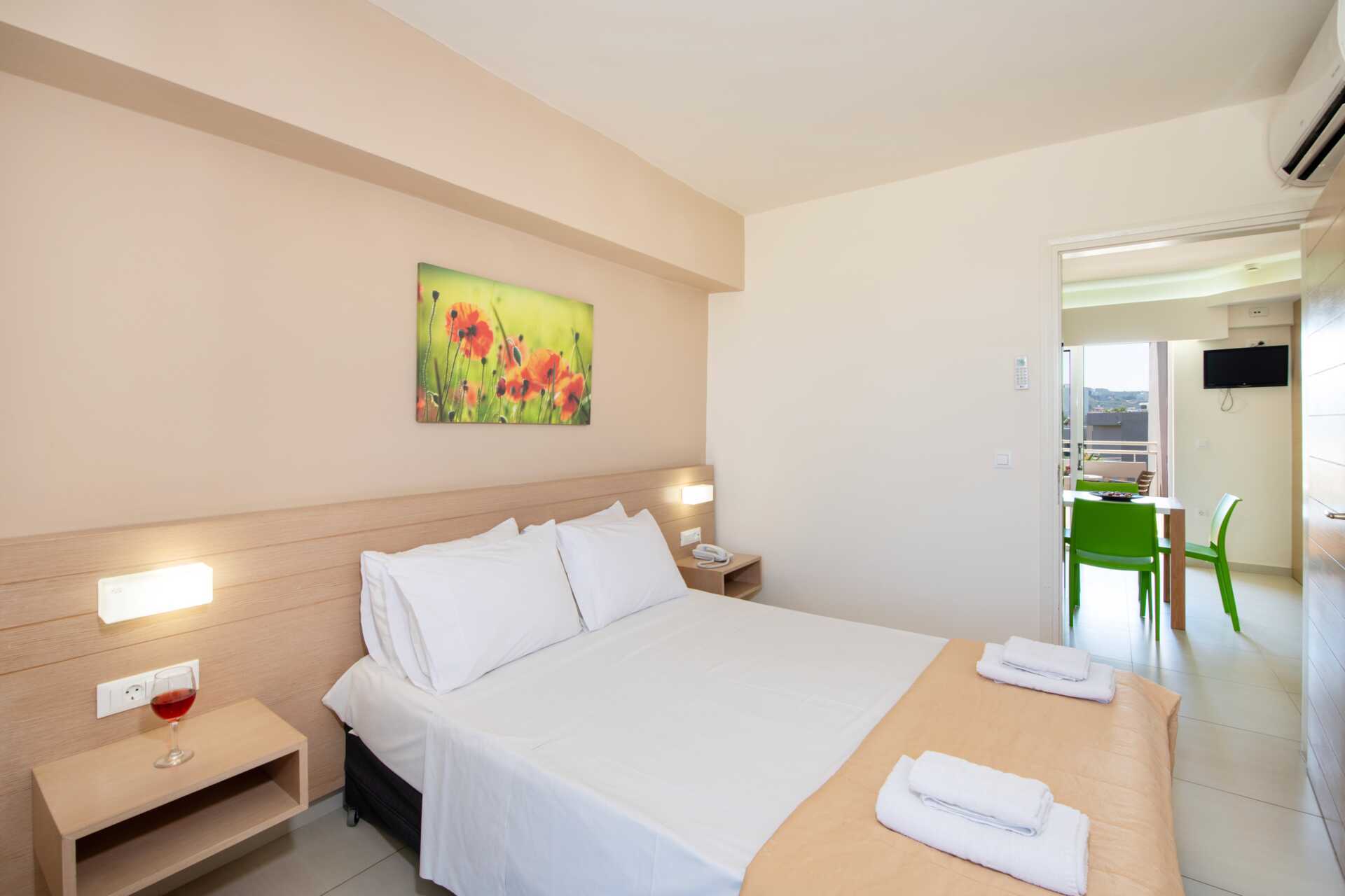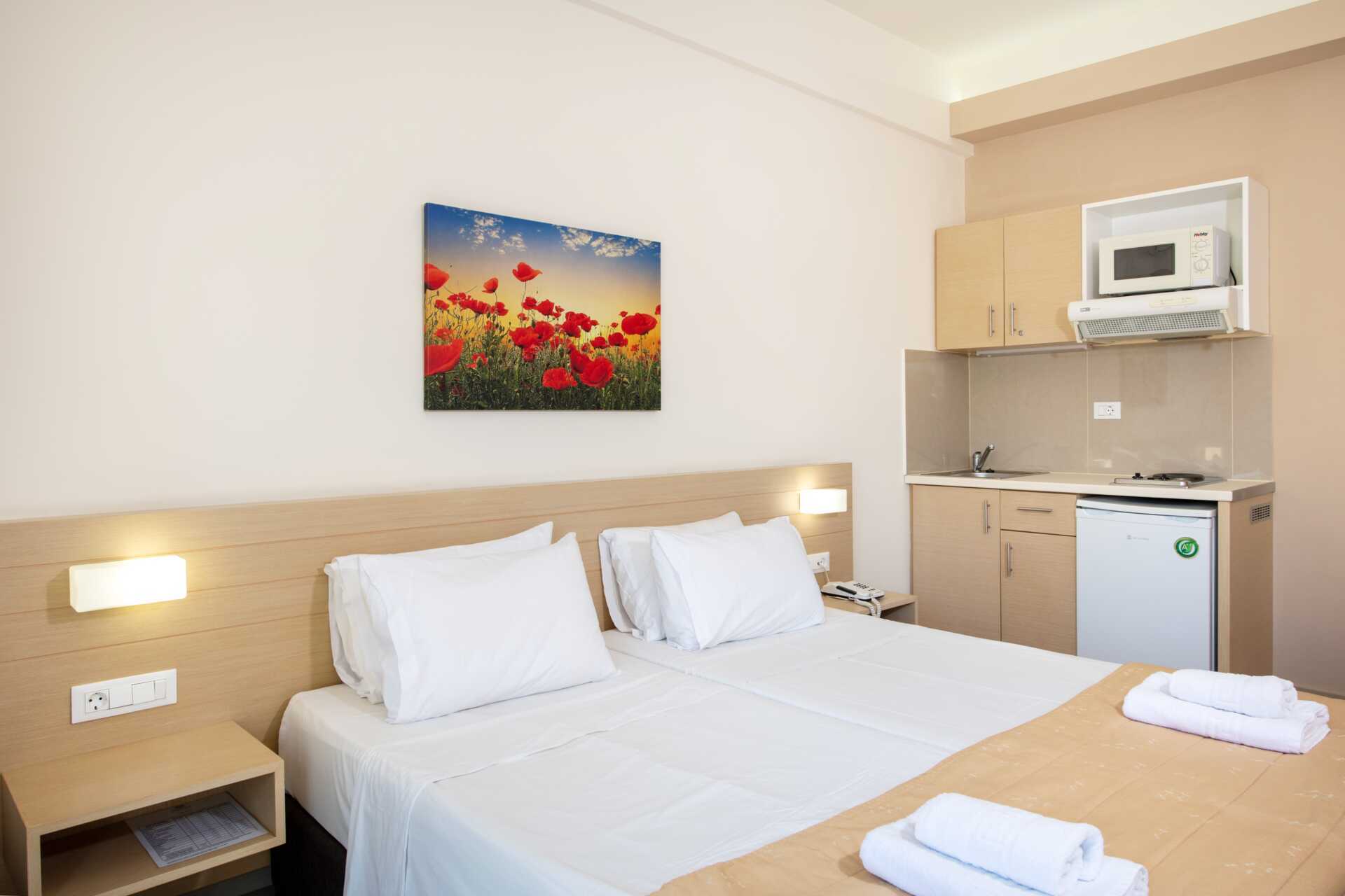 Erikokoisia yksiöitä. Parvekkeella tai maaterassilla. Lähes kaikki asunnot, lukuun ottamatta maaterassisia asuntoja, ovat remontoituja. Joihinkin asuntoihin on useita askelmia. Joistakin maaterassin huoneistoista on muutama porrasaskelma ulkotilaan. Yhdistetty makuuhuone ja minikeittiö. Kaksi yhden hengen sänkyä. Lisävuodemahdollisuus yhden hengen sängystä. Minikeittiössä keittolevyt, mikroaaltouuni, vedenkeitin, kahvinkeitin, jääkaappi ja yksinkertainen keittiövarustus. Maksuton wifi, ilmastointi ja tallelokero. Tv kansainvälisillä kanavilla. Hiustenkuivain. Kylpyhuoneessa suihku ja wc. Siivous 6 krt/viikko.