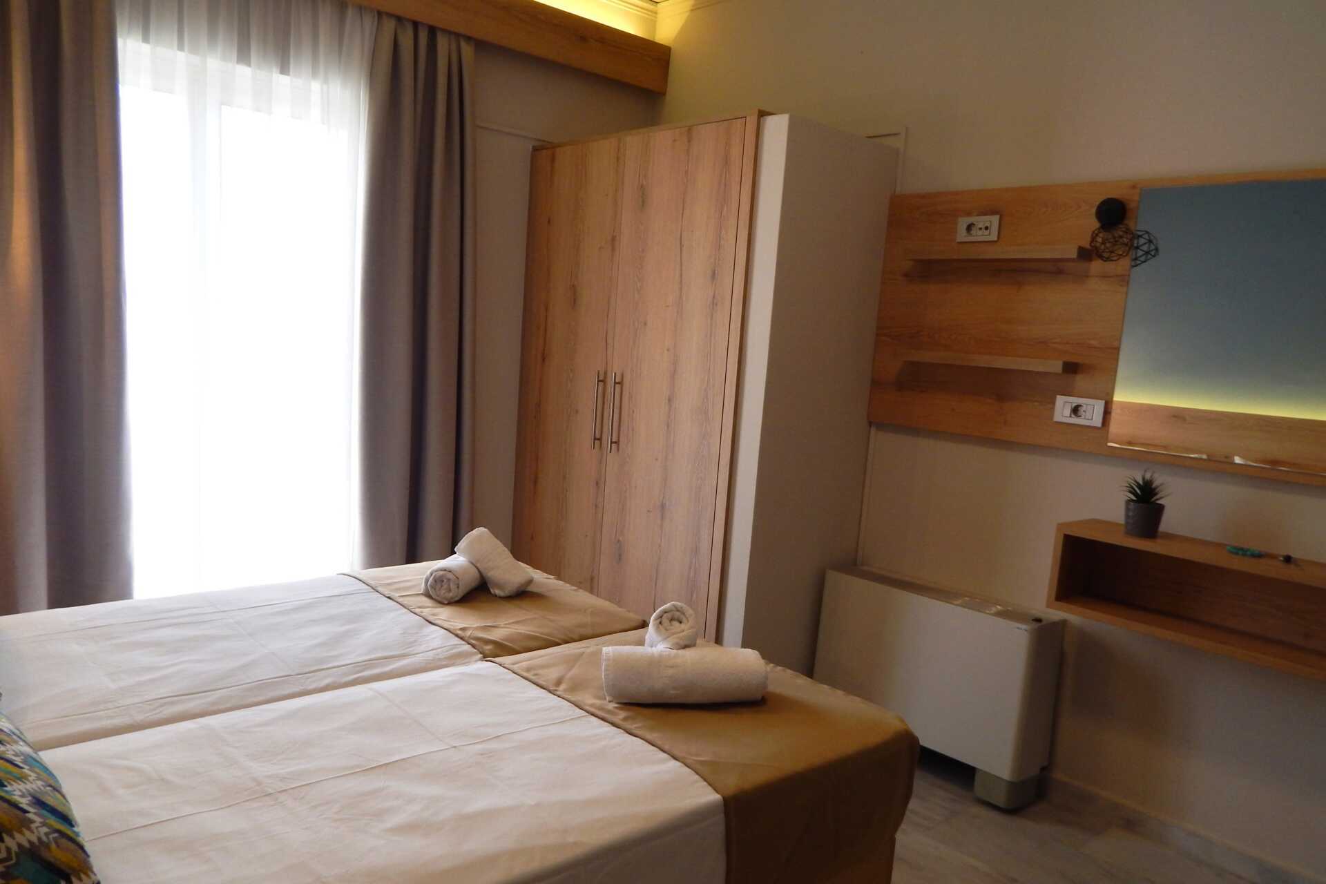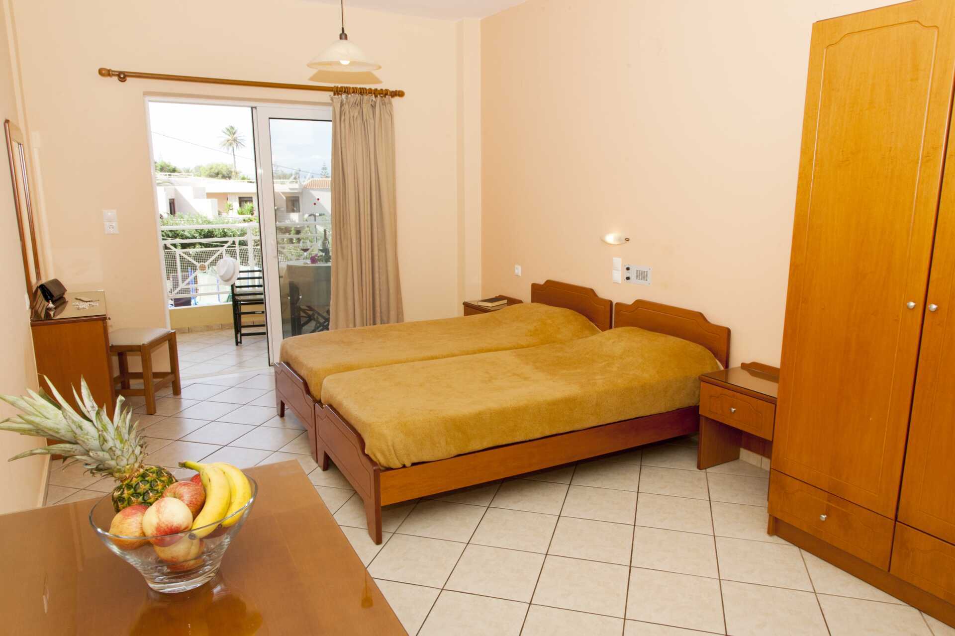 Kaksio jossa on parveke tai maaparveke. Makuuhuone ja yhdistetty olohuone sekä minikeittiö. Parivuode tai kaksi erillistä sänkyä. Lisävuodemahdollisuus vuodesohvaan. Minikeittiössä keittolevyt, jääkaappi ja pakastin, vedenkeitin, pressopannu ja yksinkertainen keittiövarustus. Maksuton wifi ja ilmastointi. Tallelokero lisämaksulla. Hiustenkuivain. Kylpyhuoneessa suihku ja wc. Siivous 6 krt/viikko.