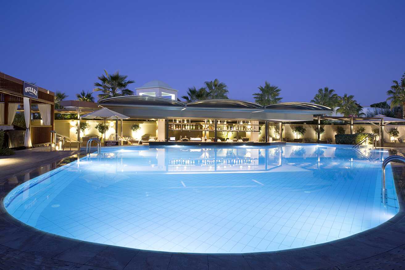 Thalassa Beach Resort sijaitsee aivan Agia Marinan rannan yläpuolella, ja jos et halua uida meressä, hotellilla on upea allasalue, jossa on uima-allas ja viihtyisä swim-up-baari, poreallas sekä allasbaari, joka on auki keskiyön jälkeen. Aurinkotuolit ja -varjot sekä balilaiset vuoteet sisältyvät hintaan. Allas- ja rantapyyhkeet maksutta. Lisäylellisyyttä saadaksesi voit tilata juomasi suoraan rannalle aurinkotuolillesi, aurinkotuolit ja -varjot sisältyvät hintaan.