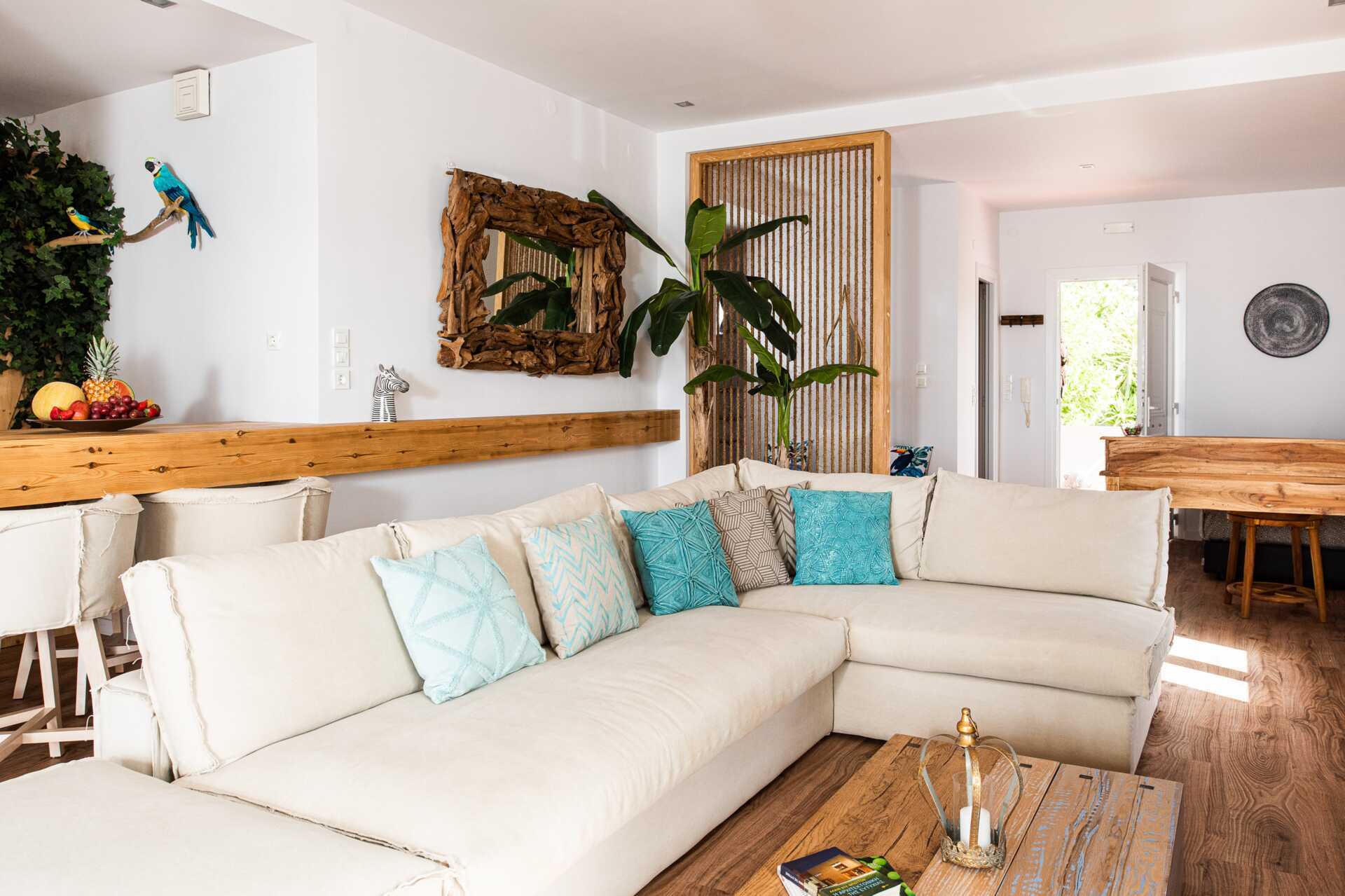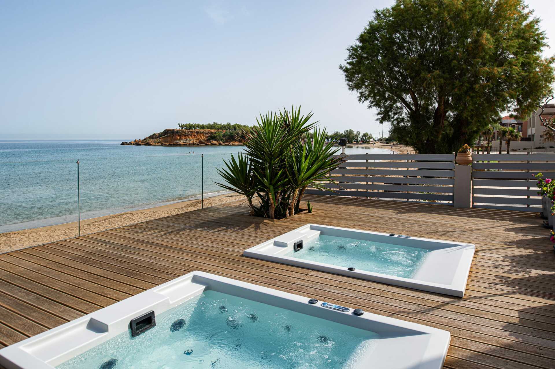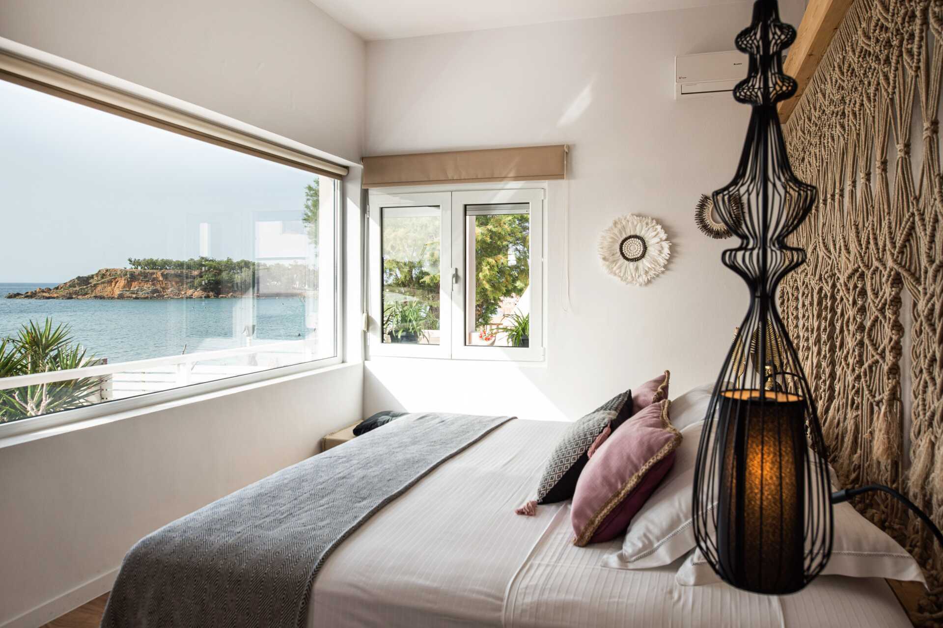 Neljän huoneen villa maaterassilla ja merinäköalalla. Terassilla on kaksi poreallasta, aurinkotuoleja ja -varjoja sekä ruokailutila, jossa on tilaa useammalle. Puutarhassa on ruokapöytä ja ulkosuihku. Kolme makuuhuonetta, neljä kylpyhuonetta ja yhdistetty keittiö/olohuone.