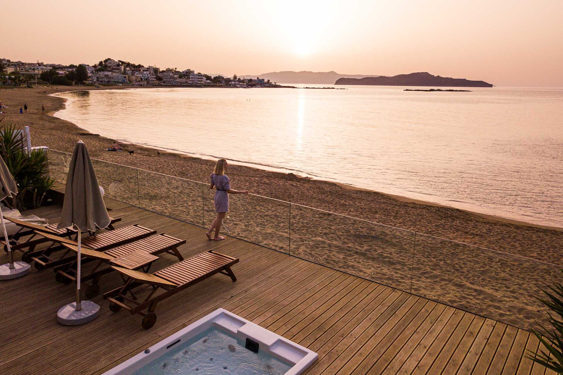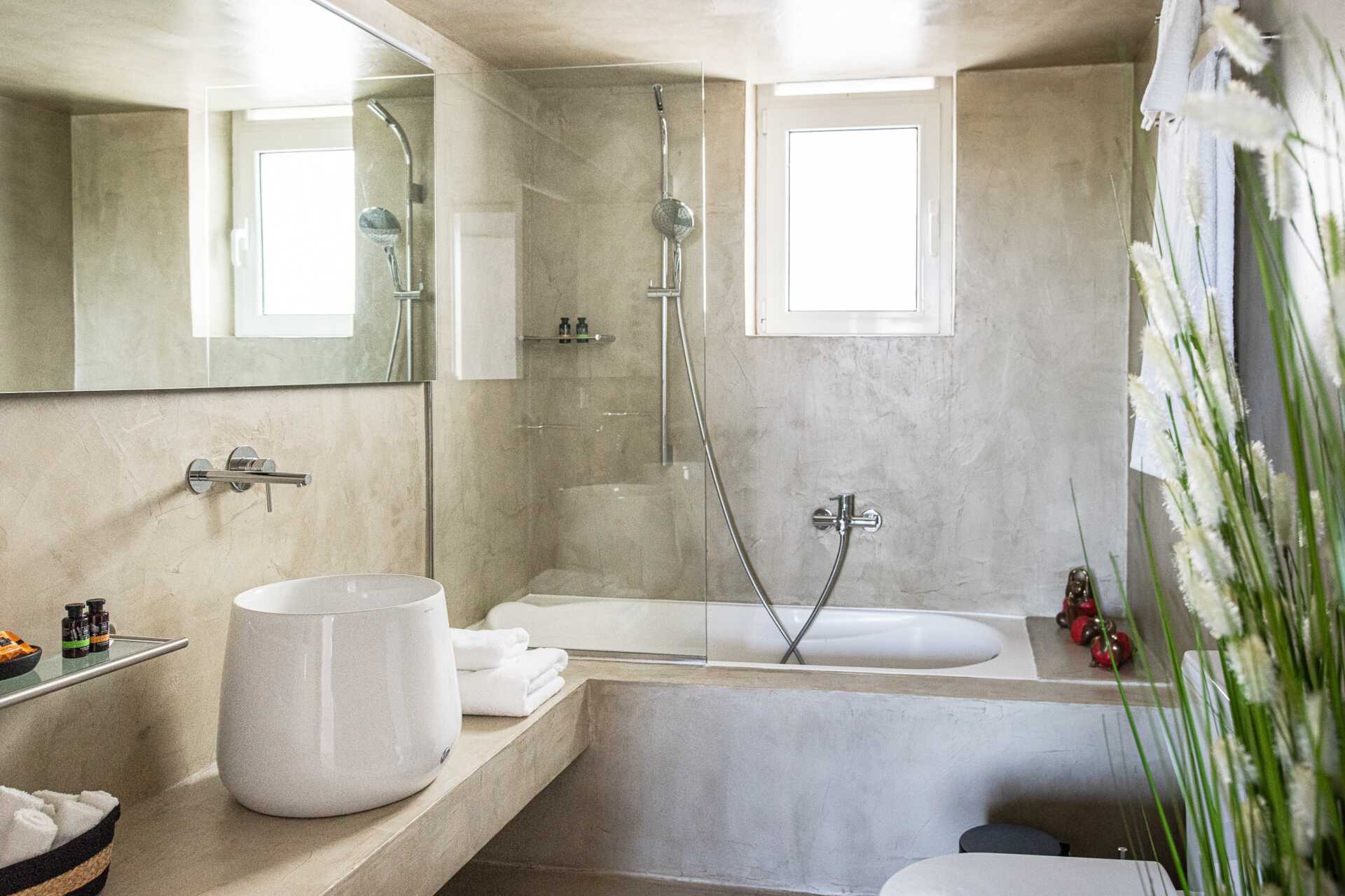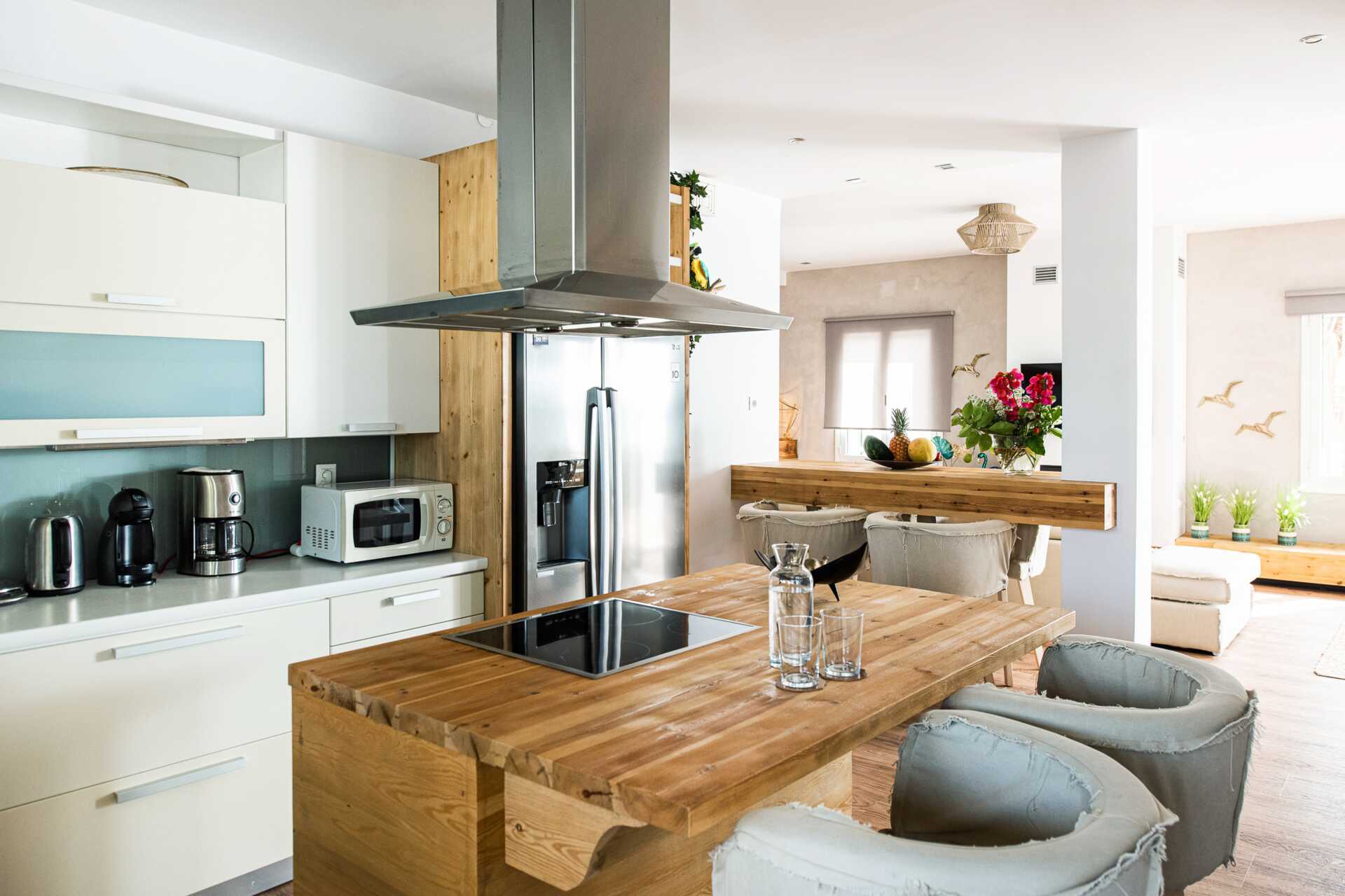 Neljän huoneen villa maaterassilla ja merinäköalalla. Terassilla on kaksi poreallasta, aurinkotuoleja ja -varjoja sekä ruokailutila, jossa on tilaa useammalle. Puutarhassa on ruokapöytä ja ulkosuihku. Kolme makuuhuonetta, neljä kylpyhuonetta ja yhdistetty keittiö/olohuone.