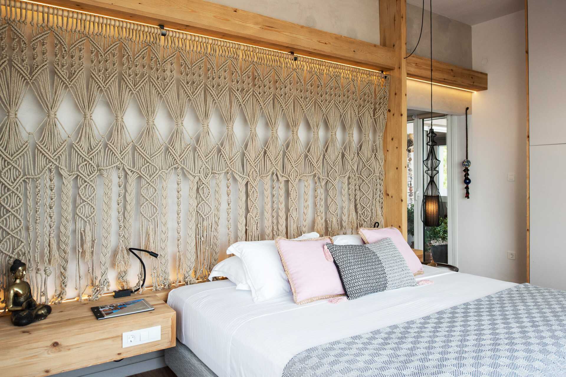 Suuressa makuuhuoneessa on kaunis näkymä ikkunasta, iso parivuode ja kylpyhuone, jossa kaksi pesuallasta, kylpyamme ja wc. Toisessa makuuhuoneessa kaksi erillistä vuodetta, kylpyhuone suihkulla ja wc, jossa on himmeät lasiovet. Kolmannessa makuuhuoneessa on parivuode, kylpyhuone suihkulla ja wc himmeällä lasiovella ja uloskäynti ulkotilaan. Avokeittiö ja olohuone ja olohuoneessa vuodesohvat ja takka. Täysin varusteltu keittiö, jossa ruokailutila, liesi, uuni, mikroaaltouuni, kahvinkeitin, Nespresso-kahvinkeitin, jääkaappi, pakastin ja jääpalakone.
