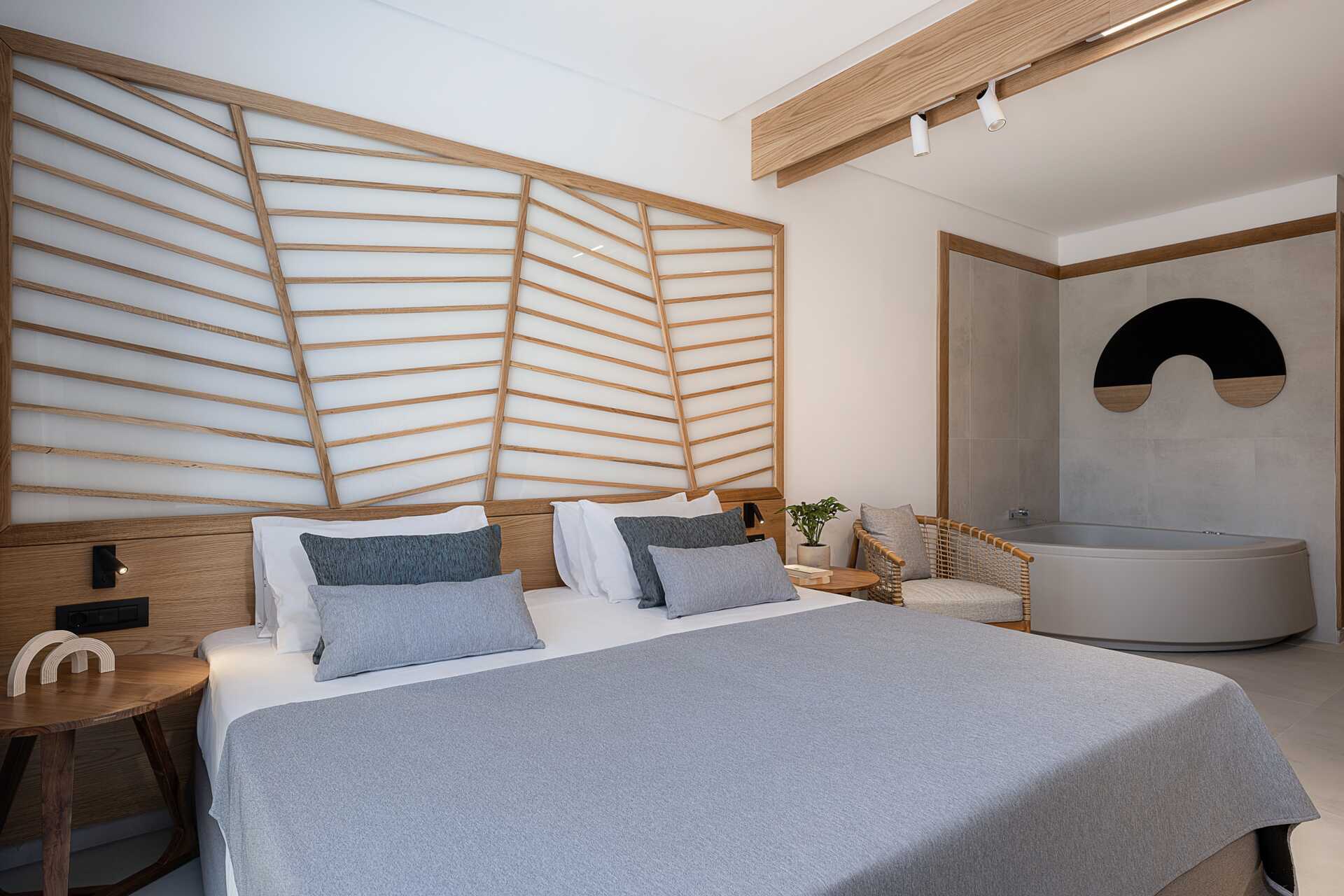 Deluxe-yksiö, jossa on suuri parveke tai terassi. Poreallas huoneessa. Yhdistetty makuuhuone ja minikeittiö. Kaksi yhden hengen sänkyä. Lisävuodemahdollisuus vuodesohvasta. Maksuton wifi. Ilmastointi ja tallelokero lisämaksusta. Minikeittiössä keittolevyt, jääkaappi, kahvinkeitin, vedenkeitin ja yksinkertainen keittiövarustus. Tv kansainvälisillä kanavilla. Suihku ja wc. Siivous 6 krt/viikko.