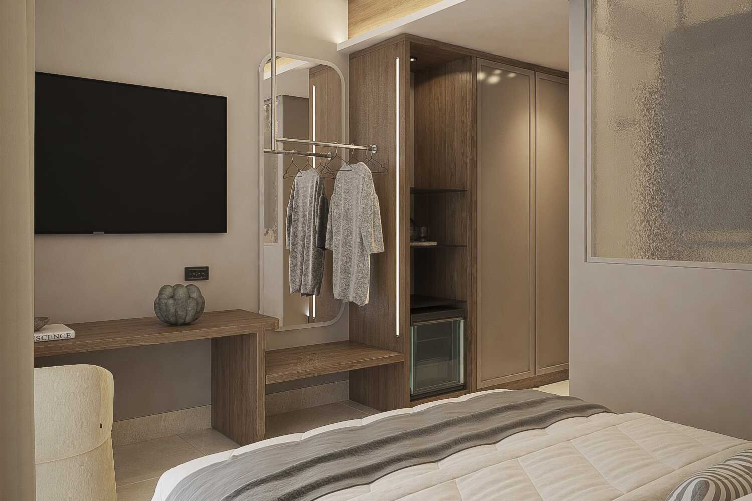 Kahden hengen huone parvekkeella ja allasnäkymällä. Parivuode. Joissakin huoneissa on mahdollista saada lisävuode kahdelle hengelle vuodesohvalla. Maksuton wifi, ilmastointi ja tallelokero. Jääkaappi. Tv kansainvälisillä kanavilla. Kylpytakit. Hiustenkuivain. Suihku ja wc. Siivous 7 krt/viikko.