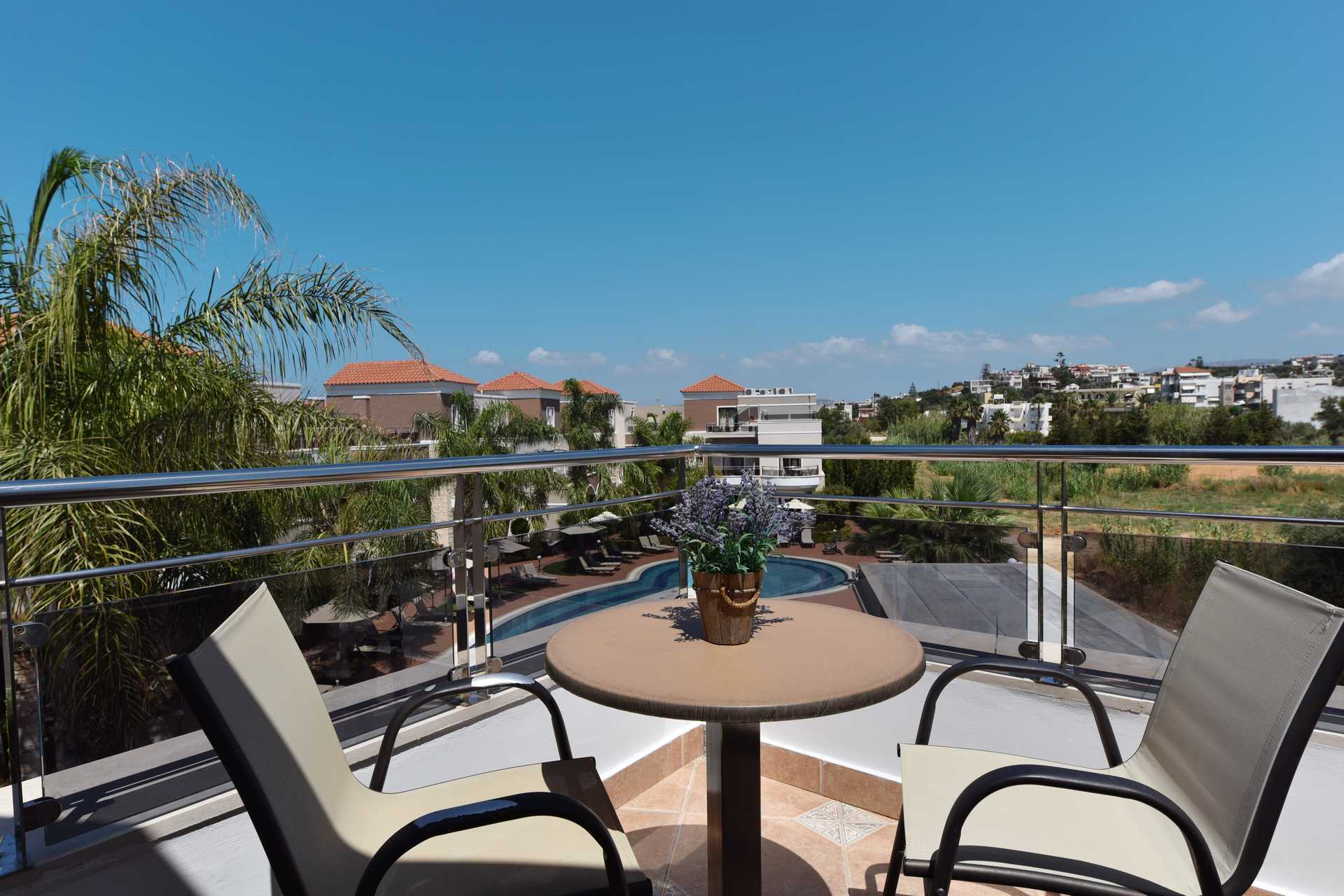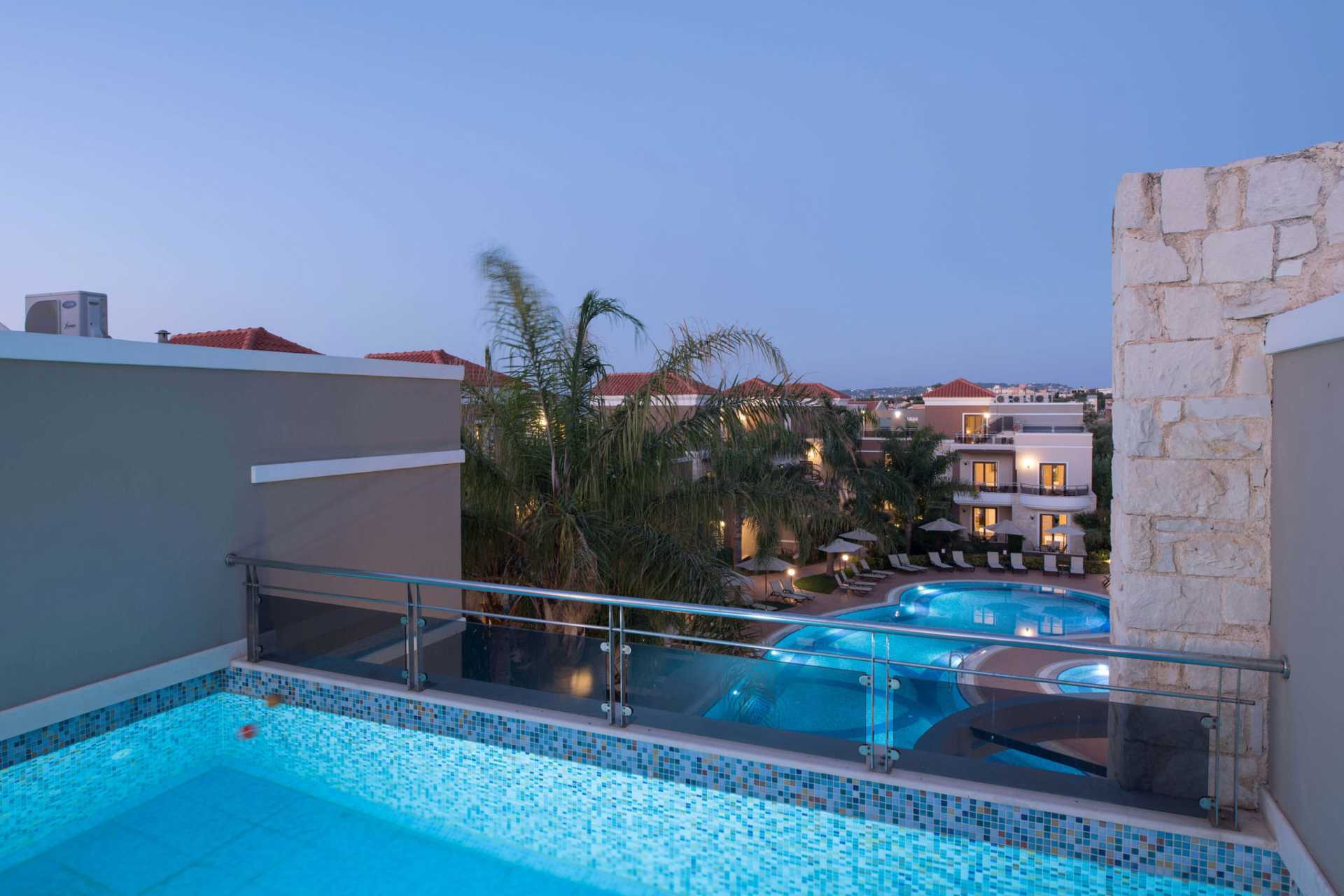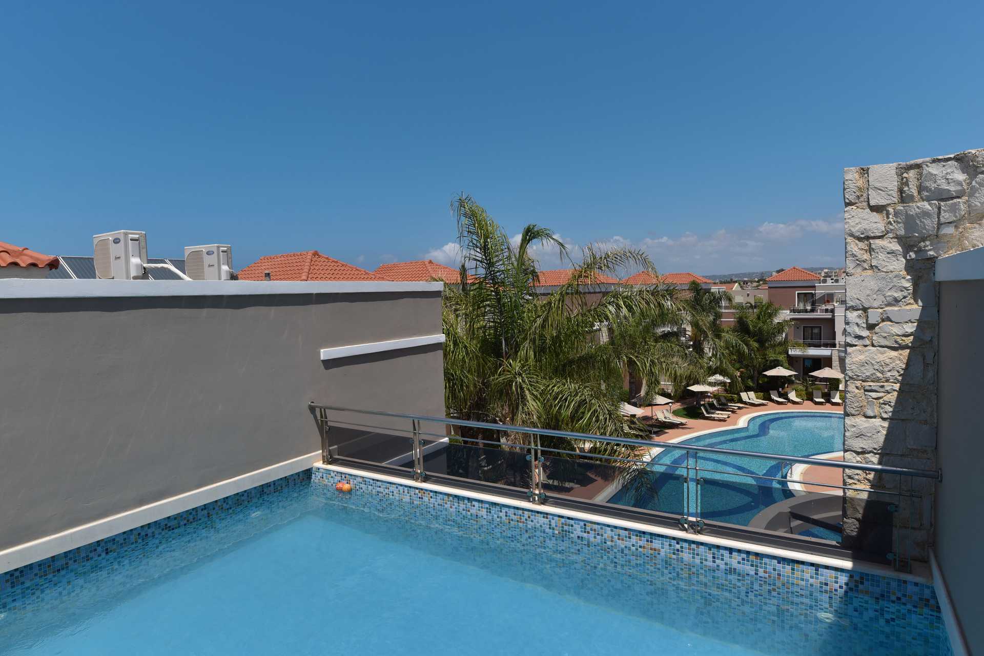 Kaksio, joissa on oma uima-allas, sijaitsee kolmannessa kerroksessa. Parveke on erikokoinen ja muotoinen, ja sieltä on näkymät uima-altaalle. Omalle uima-altaalle pääsee parvekkeelta portaita pitkin. Huoneistot ovat erikokoisia ja -muotoisia, ja ne koostuvat makuuhuoneesta ja olohuoneesta, jossa on minikeittiö. Kaksi yhden hengen sänkyä tai yksi parivuode. Lisävuodemahdollisuus vuodesohvasta. Minikeittiö, jossa jääkaappi, keittolevyt, mikroaaltouuni, vedenkeitin, kahvinkeitin, leivänpaahdin ja yksinkertaiset keittiövälineet. Maksuton wifi ja ilmastointi. Tallelokero lisämaksusta. Tv kansainvälisillä kanavilla. Hiustenkuivain. Kylpyhuoneessa suihku ja wc. Siivous 6 krt/viikko.
