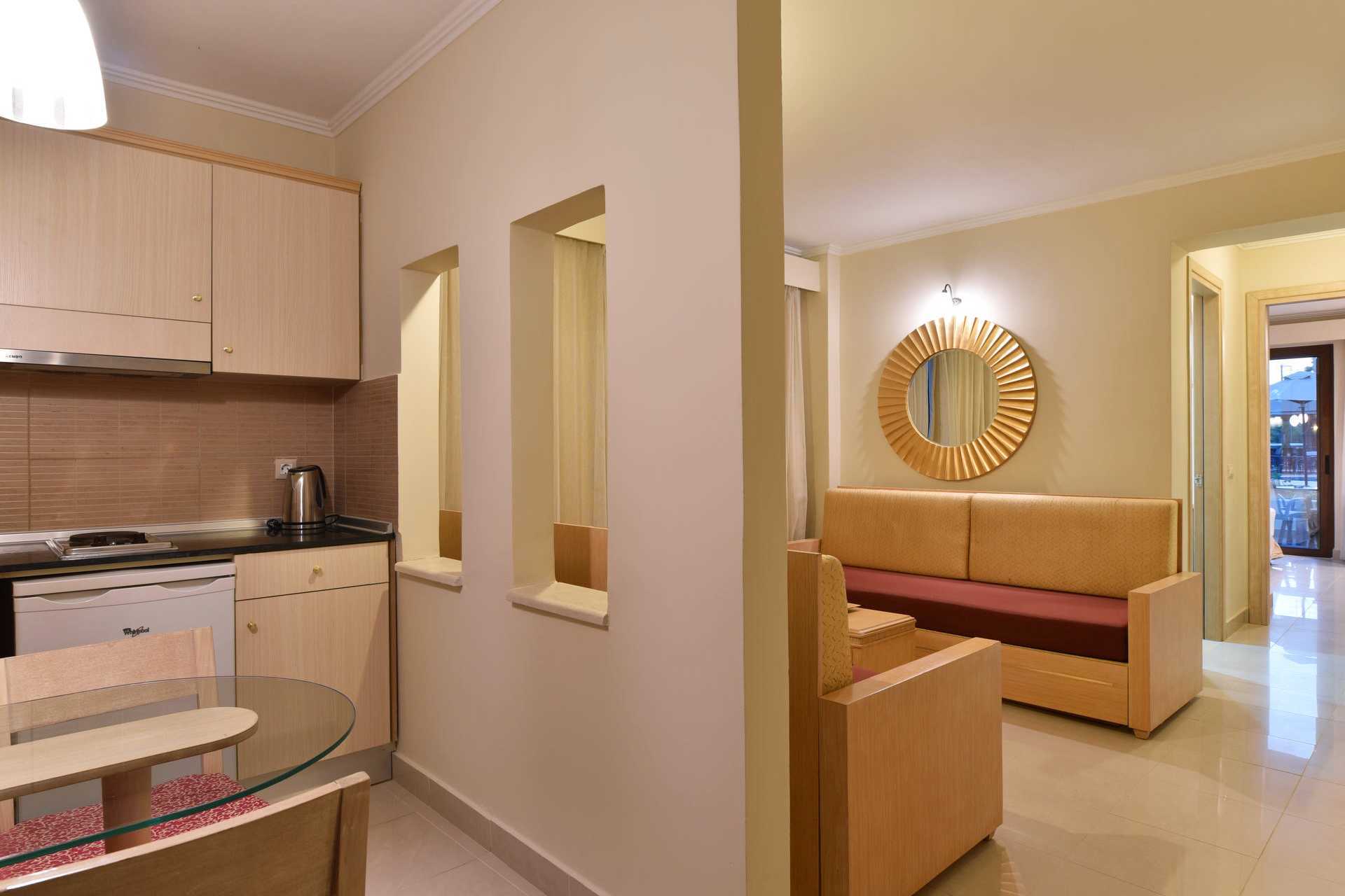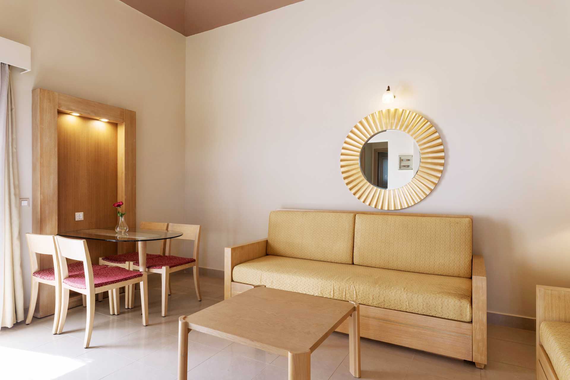 Kahden huoneen huoneistot parvekkeella tai maaparvekkeella, joiden muoto ja koko vaihtelevat, joistakin on näköala uima-altaalle. Huoneistot ovat erikokoisia ja -muotoisia. Makuuhuone ja yhdistetty olohuone sekä minikeittiö. Kaksi yhden hengen sänkyä tai yksi parivuode. Lisävuodemahdollisuus vuodesohvasta. 5 hengen huoneistoissa yksi lisävuoteista on sijoitettu makuuhuoneen sisäpuolelle. Minikeittiö, jossa jääkaappi, keittolevyt, mikroaaltouuni, vedenkeitin, kahvinkeitin, leivänpaahdin ja yksinkertaiset keittiövälineet. Maksuton wifi ja ilmastointi. Tallelokero lisämaksusta. Tv kansainvälisillä kanavilla. Hiustenkuivain. Kylpyhuoneessa suihku ja wc. Siivous 6 krt/viikko.