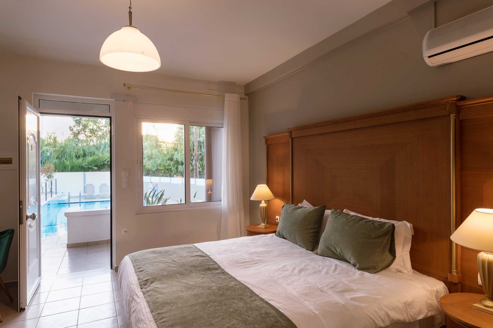 Kahden hengen huone parvekkeella, maaparvekkeella tai jaetulla ulkotilalla. Joiltakin parvekkeilta ja pohjaparvekkeilta on näkymät uima-altaalle. Parivuode tai kaksi yhden hengen sänkyä. Jääkaappi. Vedenkeitin. Maksuton ilmastointi ja wifi. Tallelokero lisämaksusta. Tv kansainvälisillä kanavilla. Hiustenkuivain. Suihku ja wc. Siivous 6 krt/viikko.