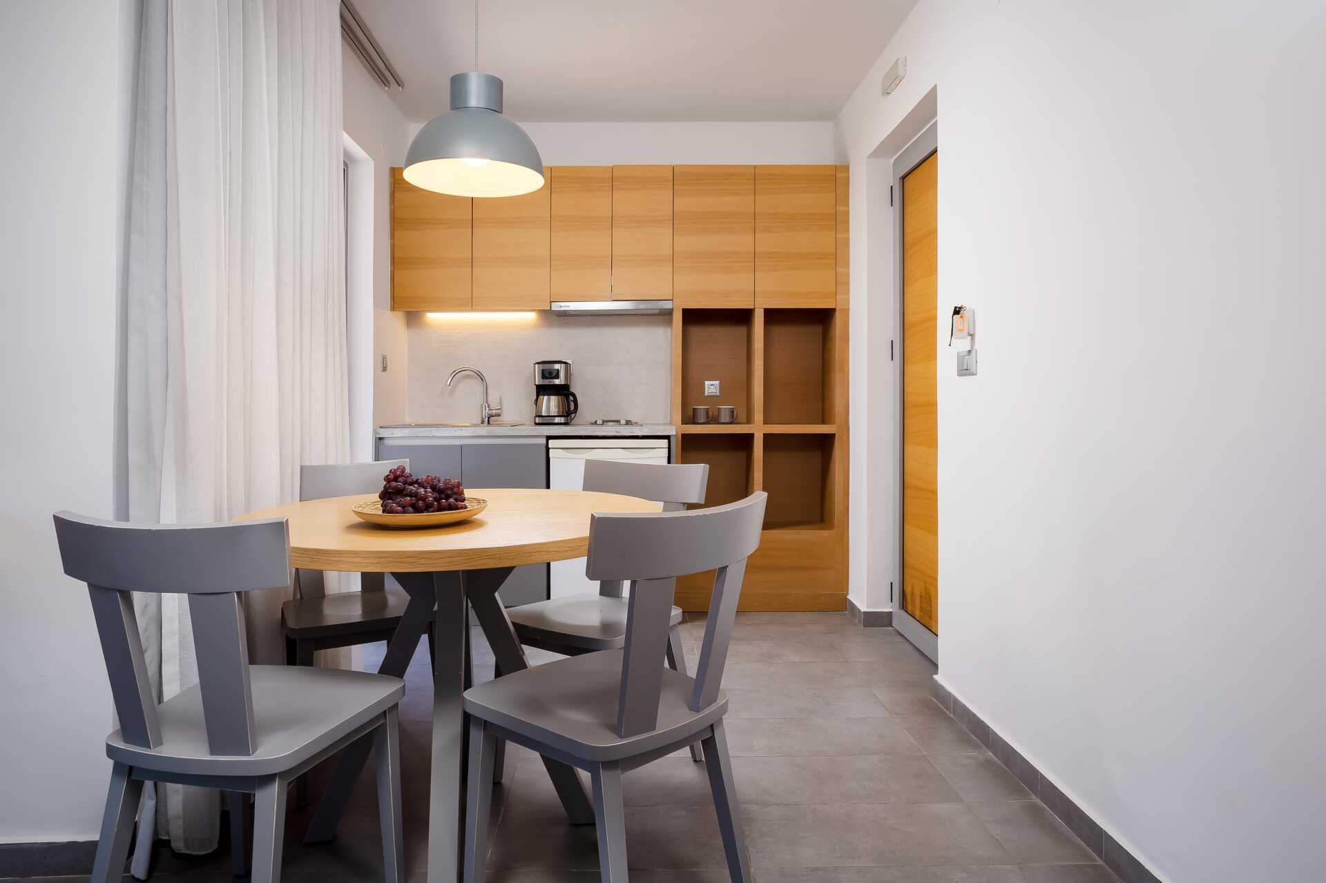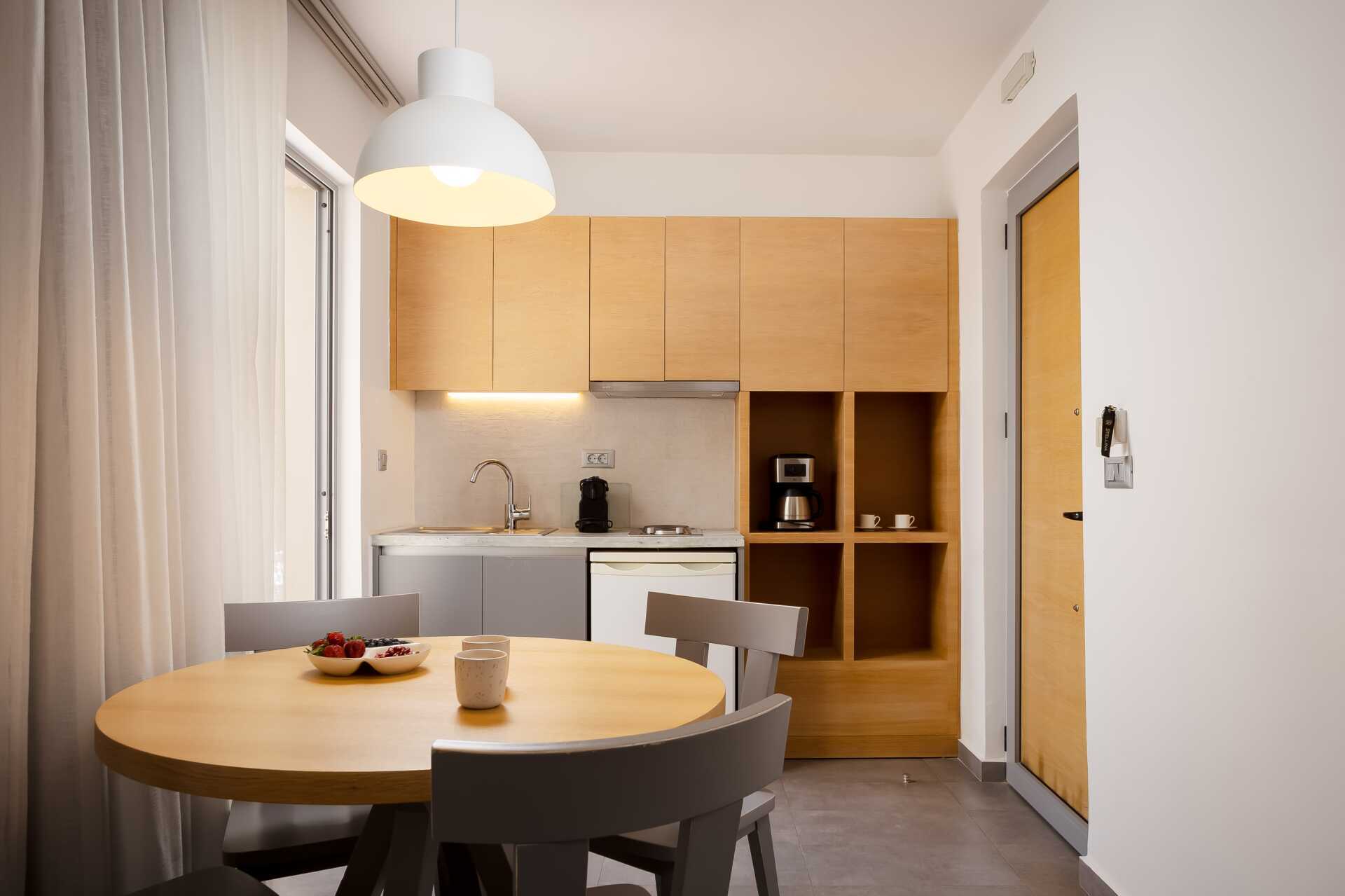 Yksiö jossa parveke, maaterassi (johon pääsee portaita pitkin), maaparveke tai jaettu ulkotila, joissakin asunnoissa on näköala uima-altaalle. Yksiöt sijaitsevat kaikissa hotellin osissa. Yhdistetty makuuhuone ja minikeittiö. Kaksi yhden hengen vuodetta. Lisävuodemahdollisuus vuodesohvasta. Minikeittiössä keittolevyt, jääkaappi, kahvinkeitin, vedenkeitin ja yksinkertainen keittiövarustus. Maksuton wifi, ilmastointi ja tallelokero. Tv kansainvälisillä kanavilla. Suihku ja wc. Hiustenkuivain. Siivous 6 krt/viikko. Vauvansänkyä käytettäessä asunnosta tulee ahdas.