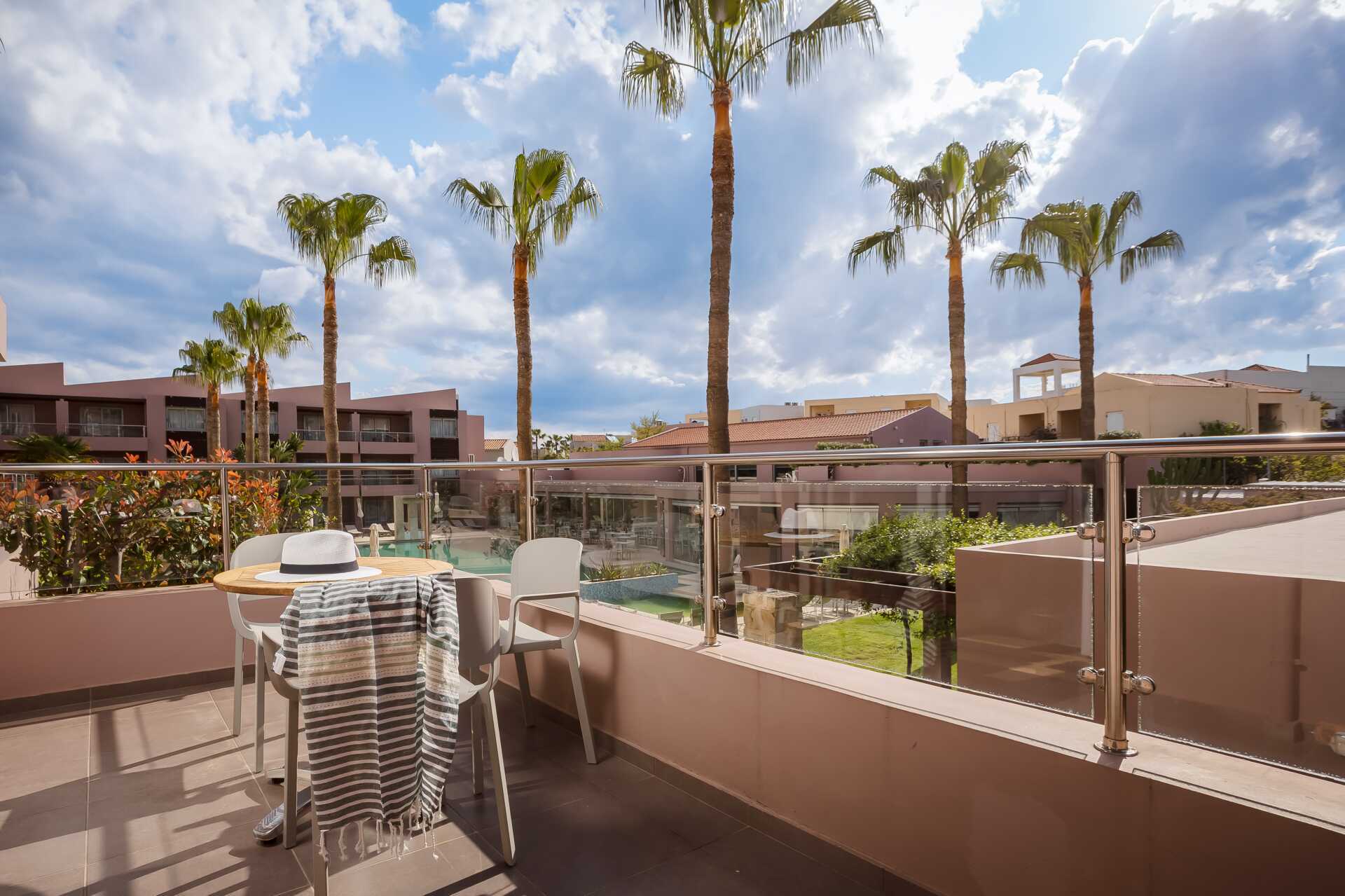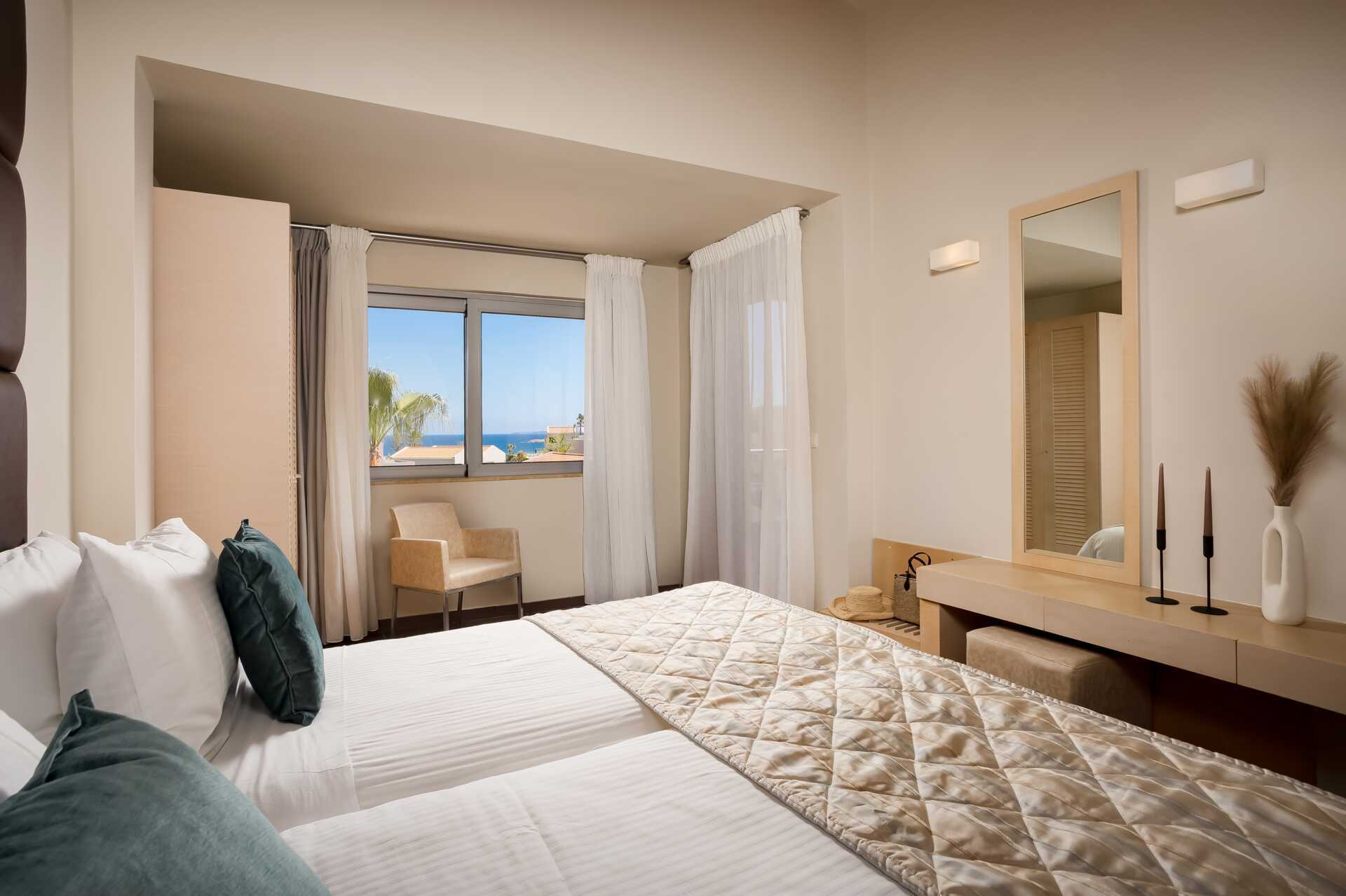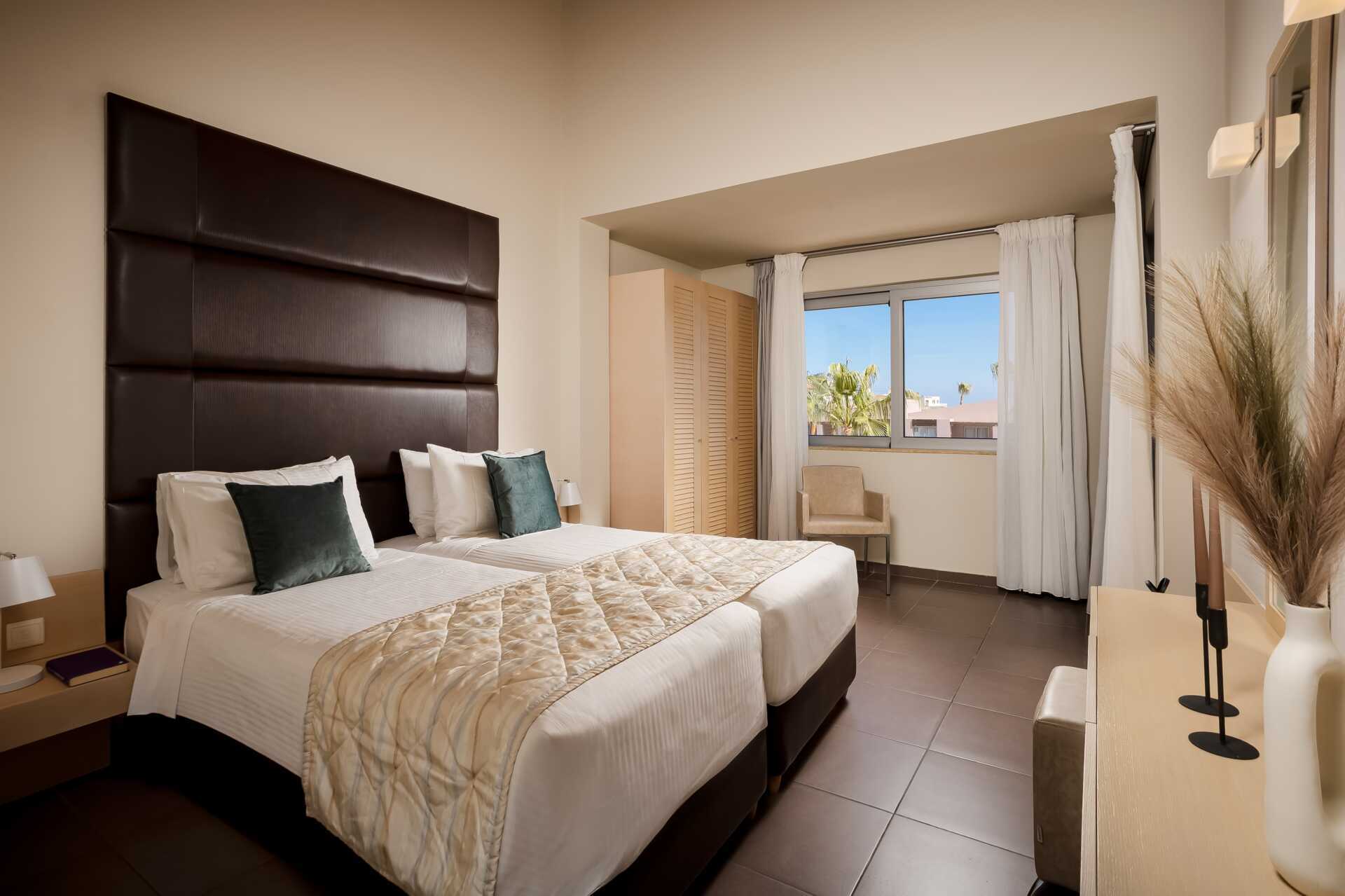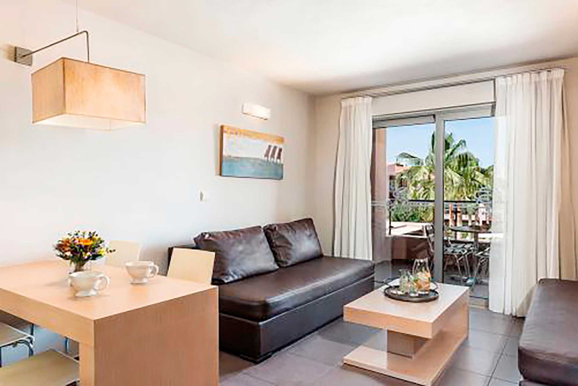 Kolmio parvekkeella allasnäköalalla tai suurella parvekkeella allasnäköalalla. Huoneistot sijaitsevat Village-osiossa. Kaksi makuuhuonetta ja yhdistetty olohuone sekä minikeittiö. Kaksi yhden hengen sänkyä molemmissa makuuhuoneissa. Minikeittiössä keittolevyt, jääkaappi, kahvinkeitin, vedenkeitin ja yksinkertainen keittiövarustus. Maksuton wifi, ilmastointi ja tallelokero. iImastointi on saatavilla jokaiseen huoneeseen. Tv kansainvälisillä kanavilla. Hiustenkuivain. Kylpyamme tai suihku ja wc. Siivous 6 krt/viikko.