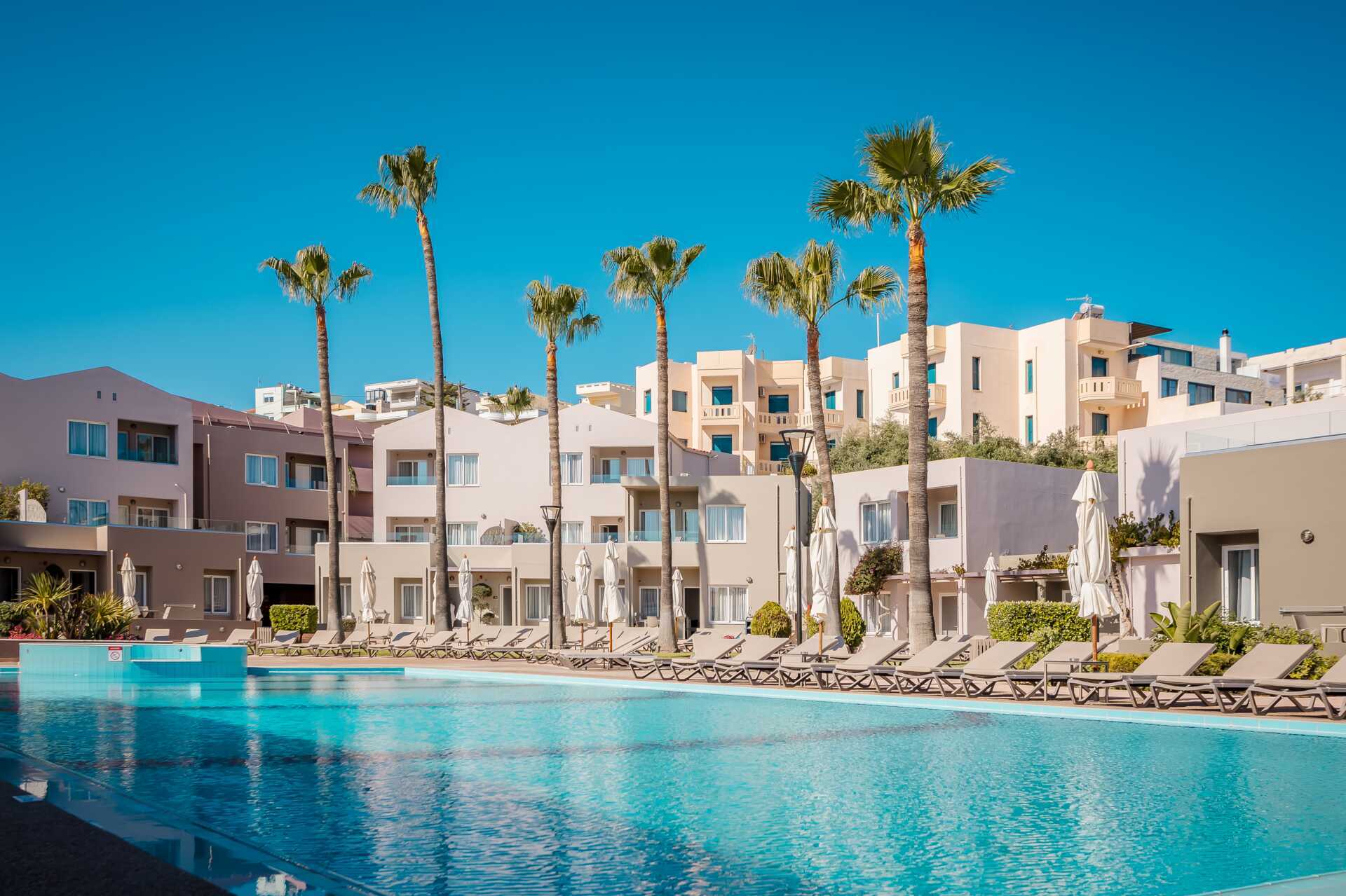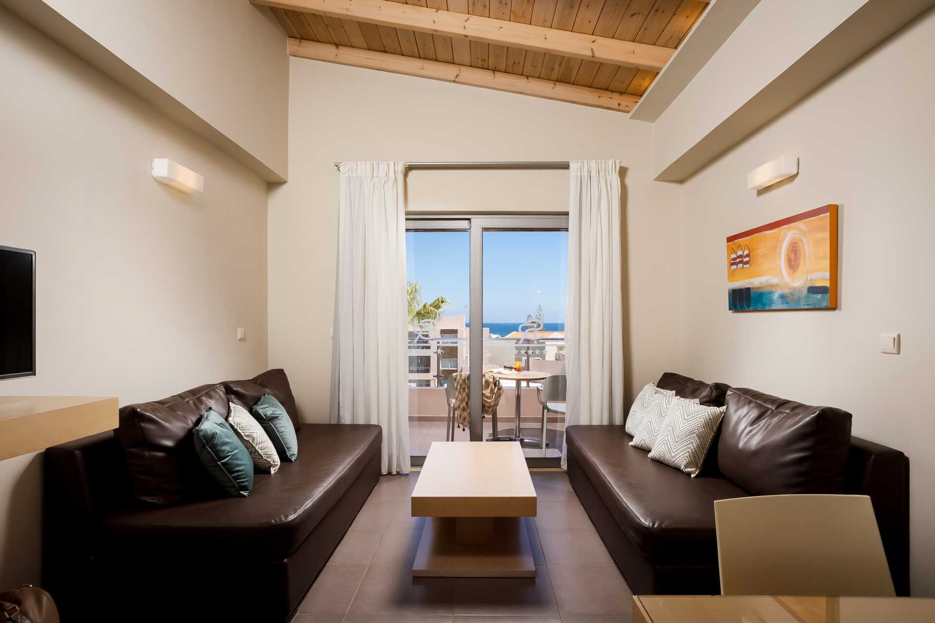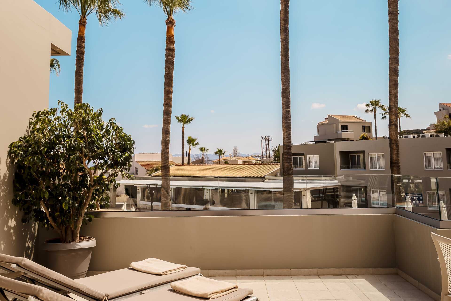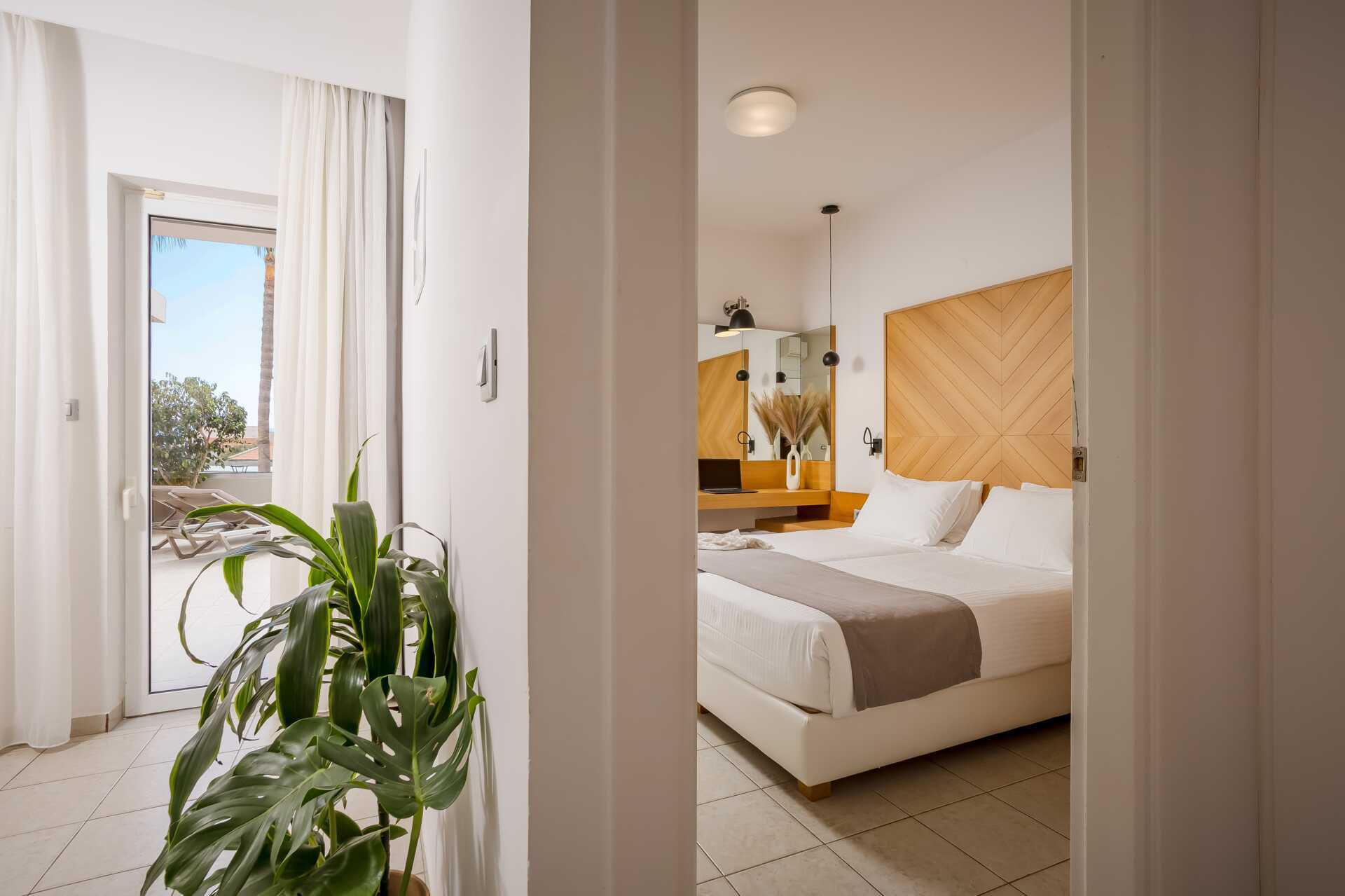 Kolmio parvekkeella allasnäköalalla tai suurella parvekkeella allasnäköalalla. Huoneistot sijaitsevat Village-osiossa. Kaksi makuuhuonetta ja yhdistetty olohuone sekä minikeittiö. Kaksi yhden hengen sänkyä molemmissa makuuhuoneissa. Minikeittiössä keittolevyt, jääkaappi, kahvinkeitin, vedenkeitin ja yksinkertainen keittiövarustus. Maksuton wifi, ilmastointi ja tallelokero. iImastointi on saatavilla jokaiseen huoneeseen. Tv kansainvälisillä kanavilla. Hiustenkuivain. Kylpyamme tai suihku ja wc. Siivous 6 krt/viikko.